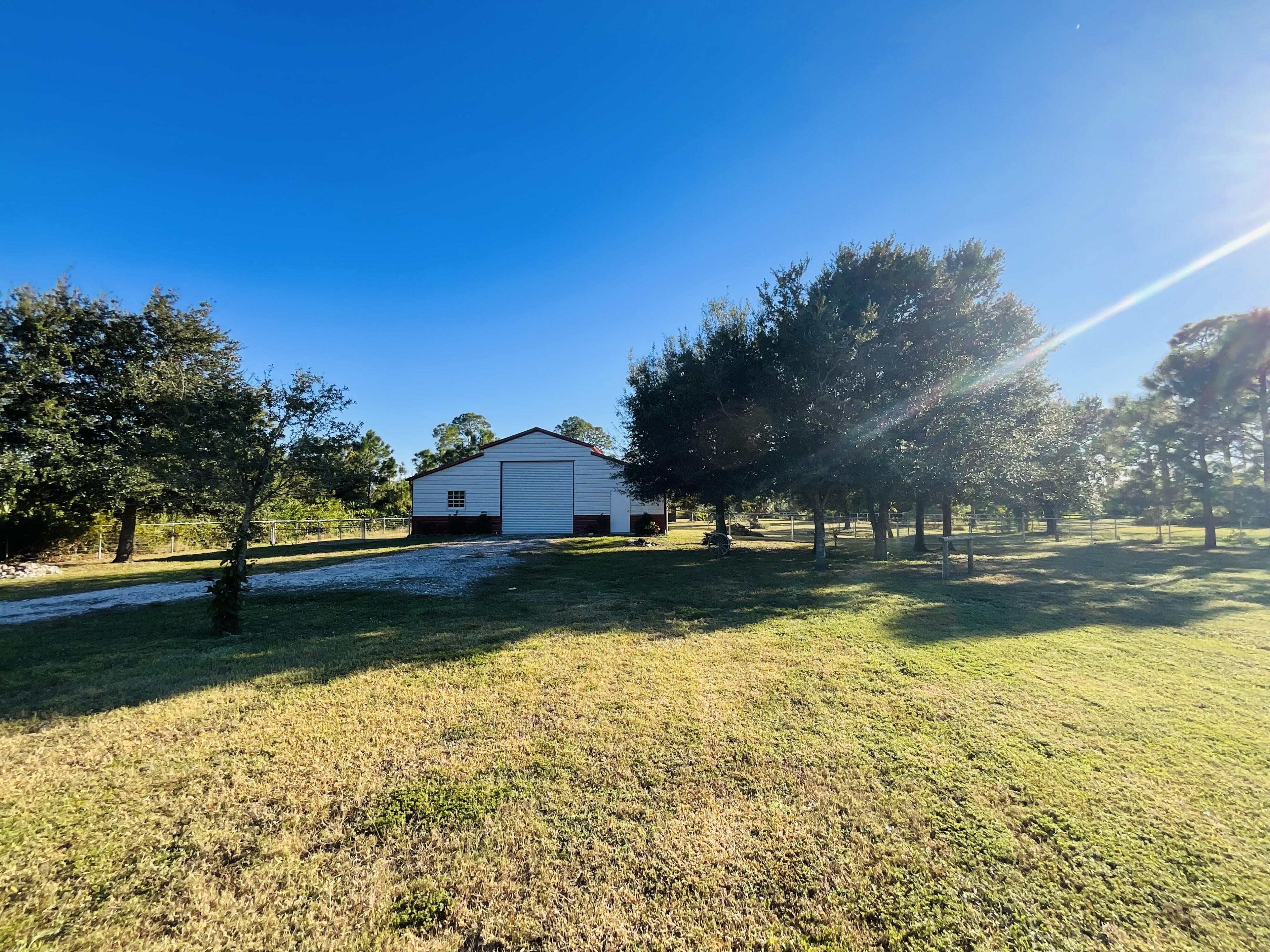 Welcome to an extraordinary 2018 custom estate where modern luxury, entrepreneurial potential, and the coveted Southwest Florida acreage lifestyle seamlessly converge. This impeccably maintained, like-new residence boasts 3 bedrooms plus a versatile den, 2 beautifully appointed bathrooms, attached 2-car garage, soaring ceilings, elegant tile flooring throughout, and gourmet kitchen featuring gleaming quartz countertops. The spacious primary suite pampers with his-and-hers walk-in closets. Complementing the home is a massive 42' x 40' metal building for a workshop, warehouse, or secure RV/boat storage—and a dedicated horse shelter (previously home to horses, goats, and chickens). The property features fully fenced and cross-fenced pastures with your own private gate, offering endless possibilities: create a mini farm, launch a home-based business, or simply enjoy room to breathe and expand. The home is enhanced by sophisticated landscape lighting that beautifully illuminates the grounds after sunset. Situated on a fully cleared, X-zoned 2.27-acre parcel with zero HOA restrictions, this rare gem delivers unmatched versatility and freedom.