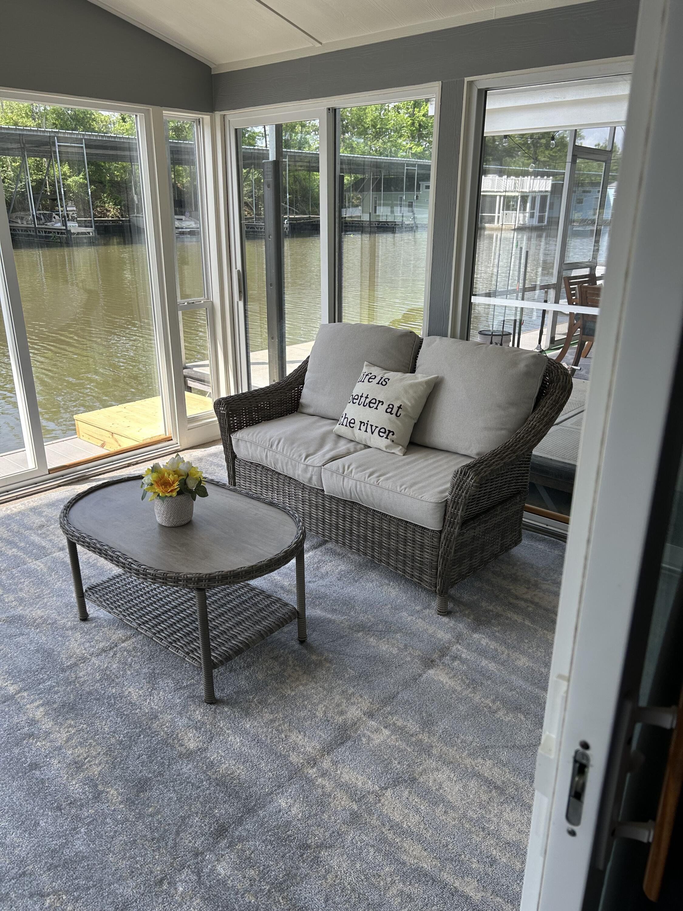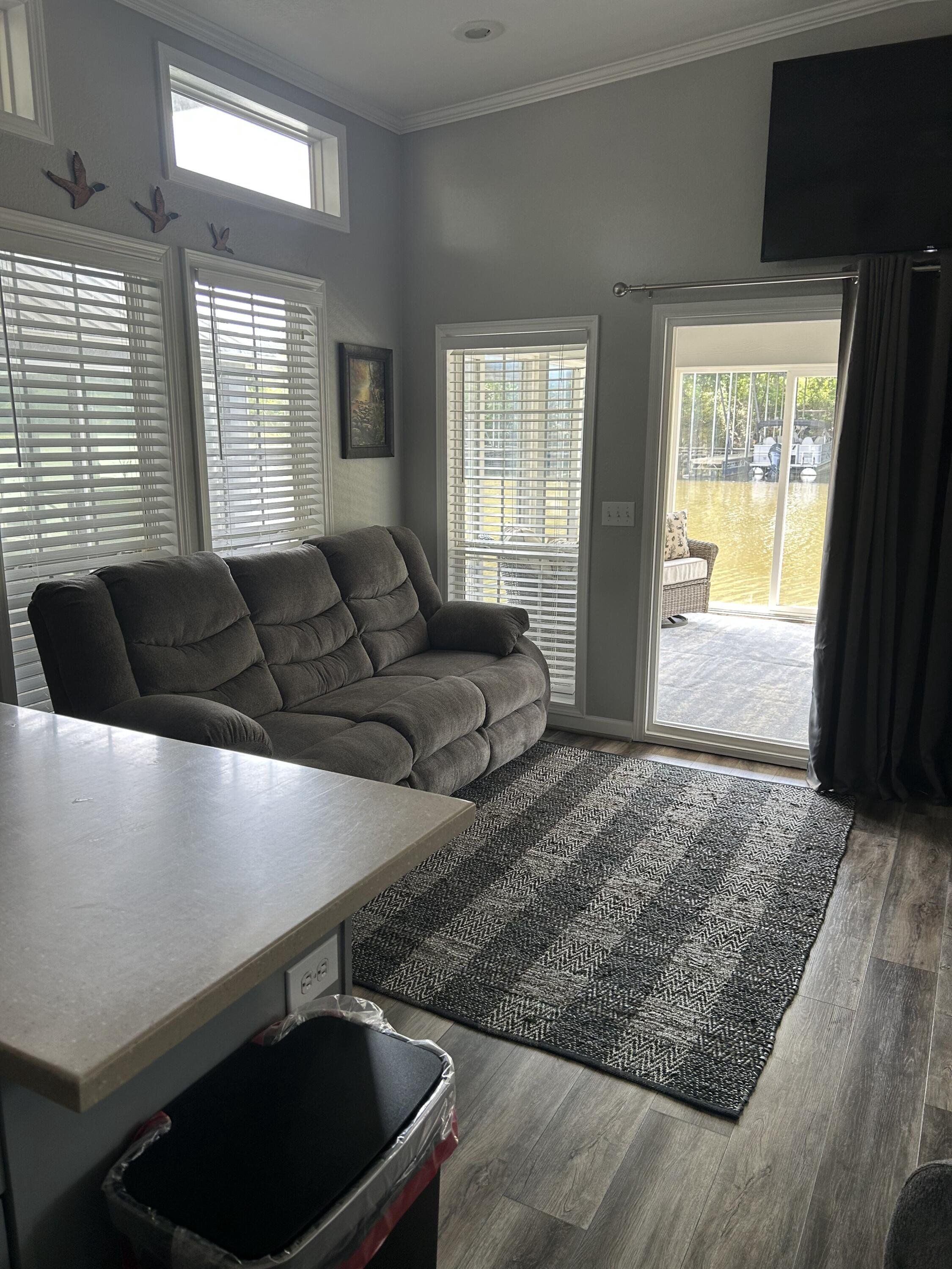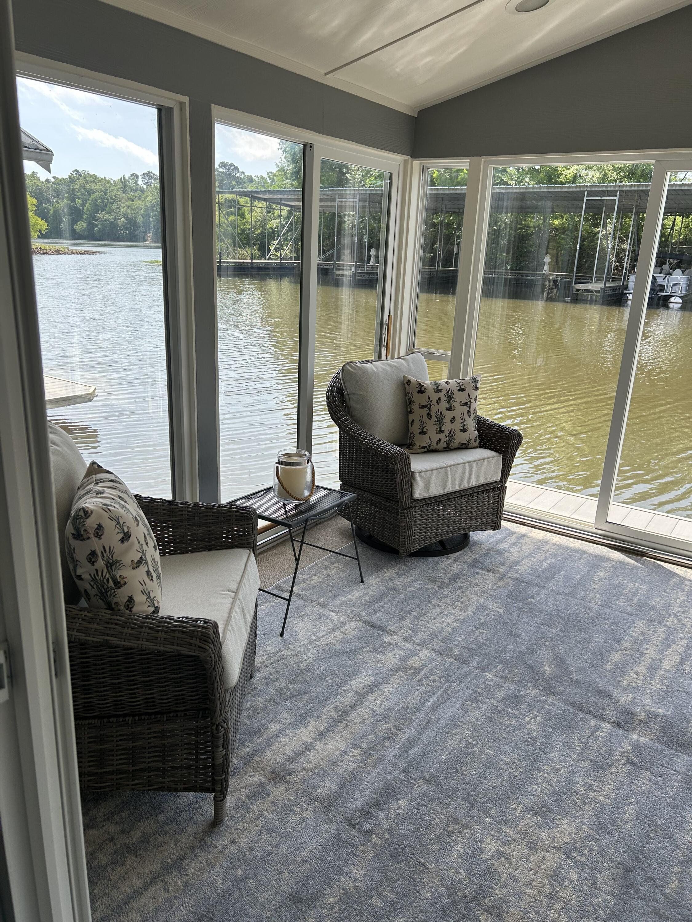 Waterfront living on the Flint River, this 55ft Houseboat has a cozy glassed in porch overlooking the Flint River, approximately 800 SF with two bedrooms, Jack and Jill bathroom, with two toilets and two sinks and a walk-in shower. It has a full size kitchen/living room area. It comes fully furnished with brand new furniture throughout, new blinds, laminate flooring throughout and decor. It has been freshly painted inside and out. This houseboat has great rental potential. The flint river location is at the Bainbridge Marina which make the perfect accommodations for boating, fishing, or just cruising the river then relaxing on the porch to watch the sunset. The marina has covered boat slips, store, restaurant on the premises, and fuel dock.