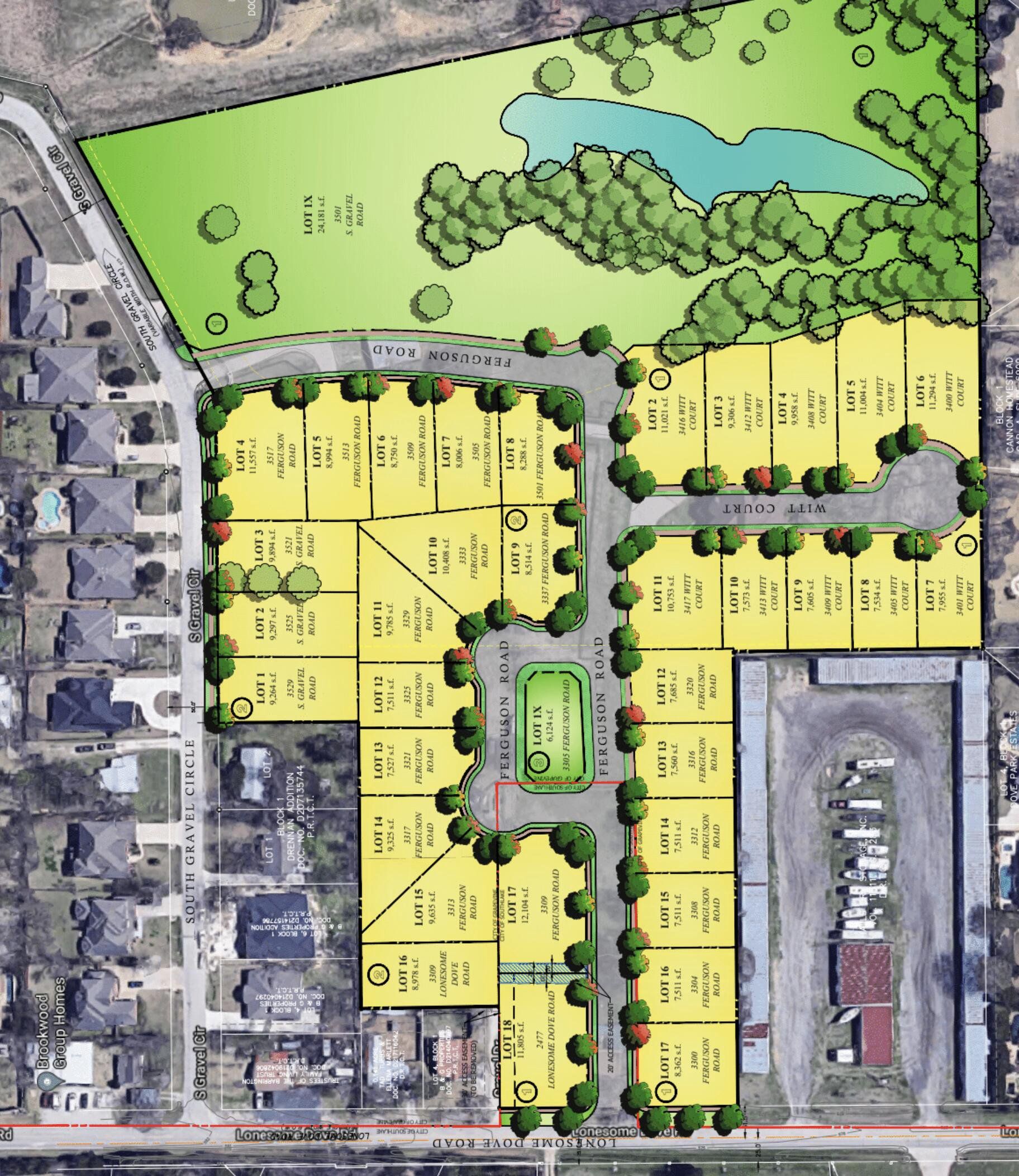 Welcome to 2501 Lonesome Dove Rd. If you're looking to build a new home on a lower maintenance lot within the Southlake Carroll School District, Ferguson Place could be just what you're looking for. Located oh so close to Lake Grapevine while still just a hop, skip and jump to all Southlake amenities, Ferguson Place is a community of about three dozen home sites just north of Dove Road and east of North Carroll Ave. 2501 Lonesome Dove Rd, Lot 16, consists of 8978 square feet for a new home site. Accessed by way of an easement from Ferguson Place, the property features well established trees and a new, 8 foot stained cedar fence. All inquiries welcome.