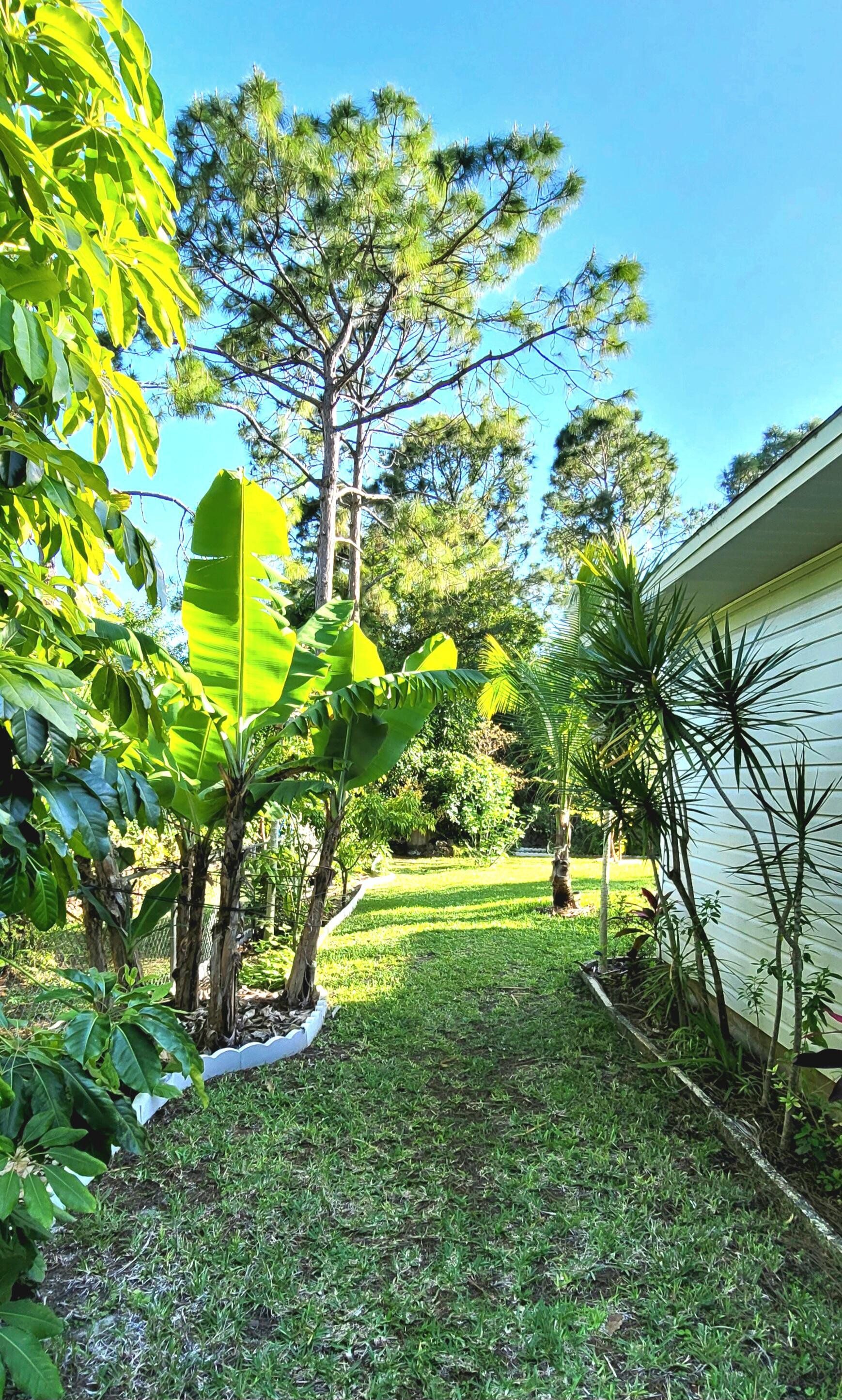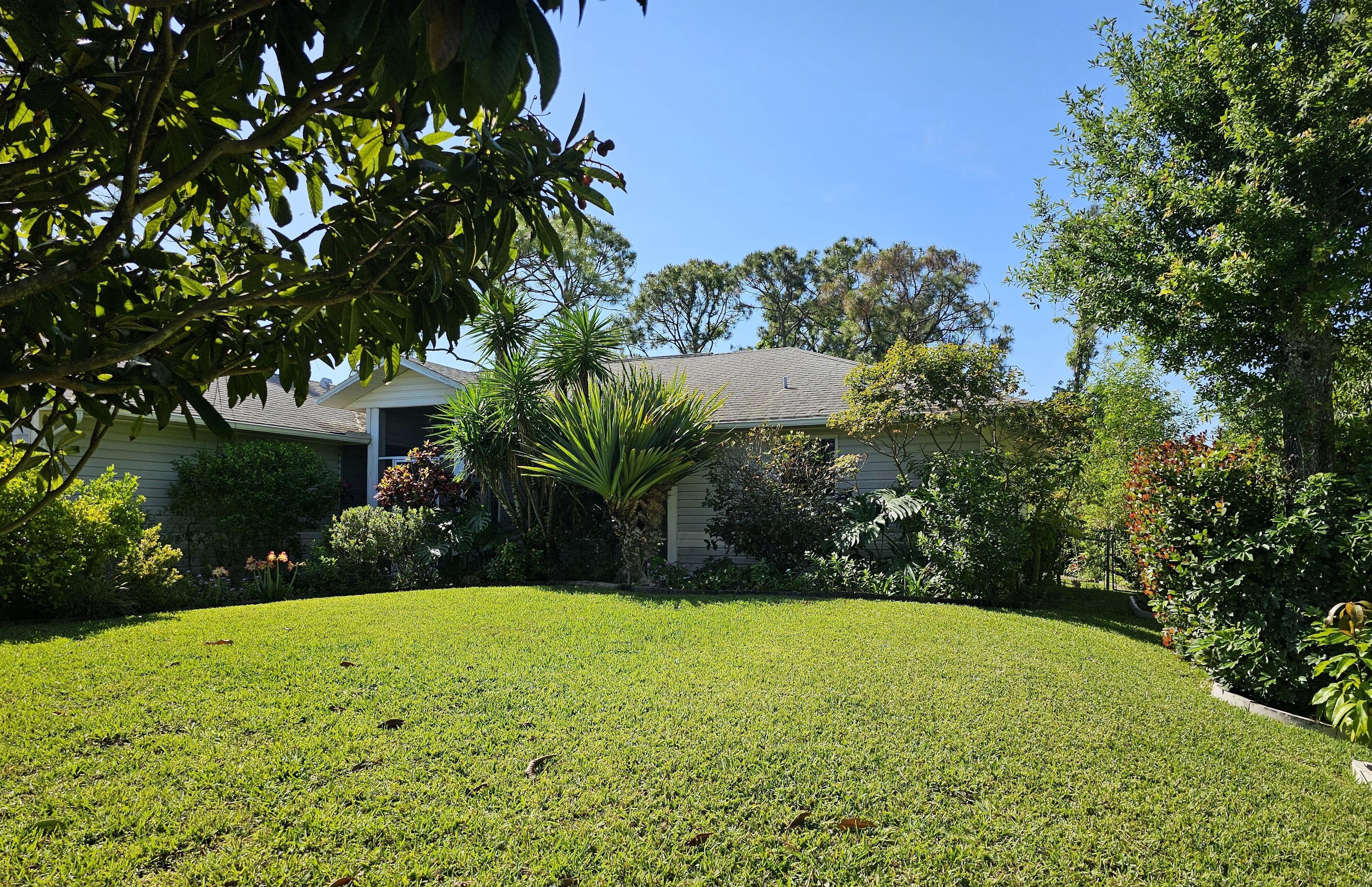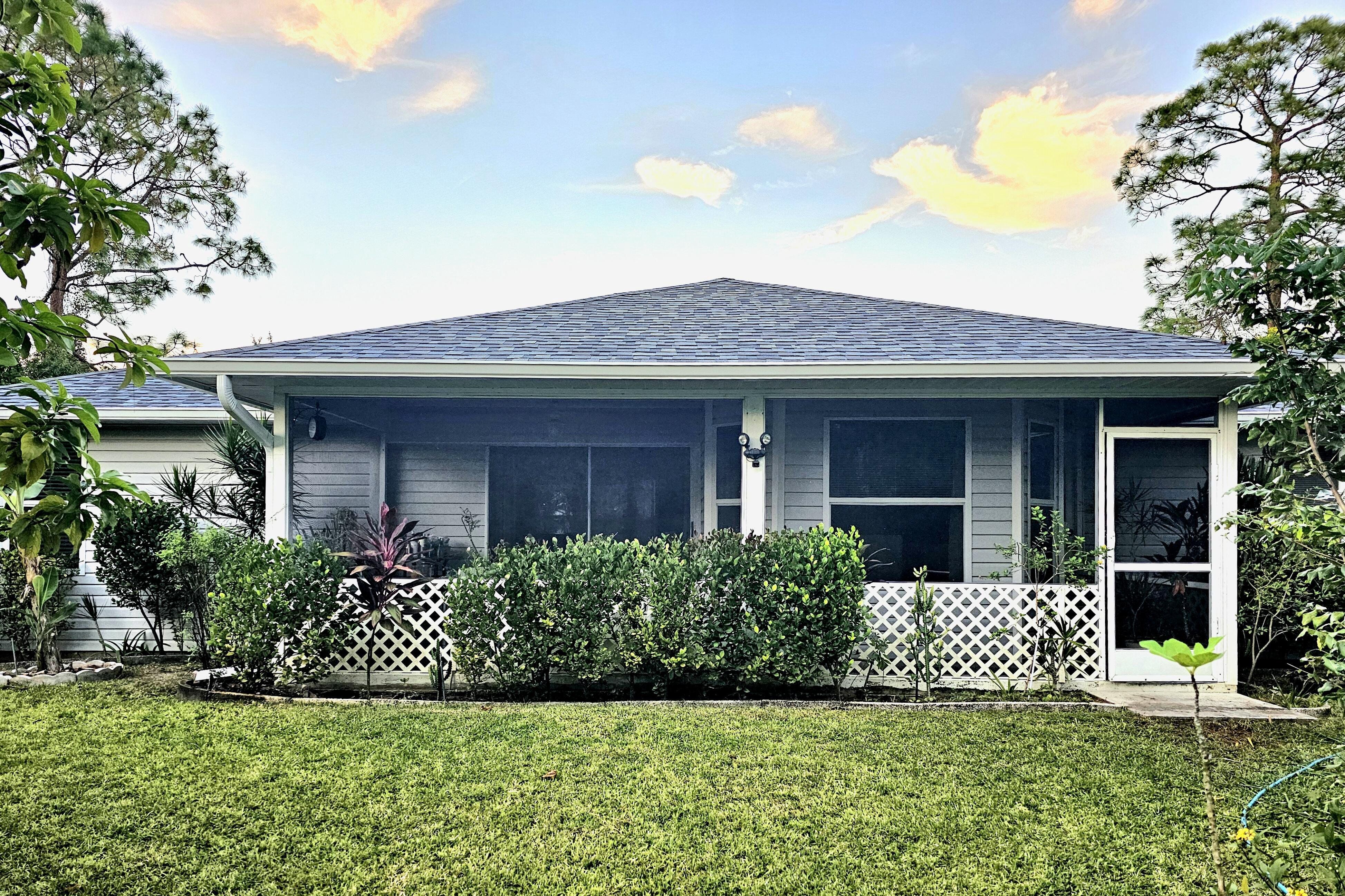 Welcome to this charming home located in Lehigh Acres, FL. Nestled in a quiet neighborhood, this property features a spacious interior with three bedrooms and two bathrooms, ceramic tile and wood-like vinyl floors, and ceiling fans in every room. The open floor plan allows for easy flow between the living, dining, and kitchen. Upgrades include granite countertops for the kitchen and porcelain tile for the master bathroom shower. Enjoy the Florida weather in the fully private, fenced backyard with assorted fruit trees, a sprinkler system and drip irrigation. An Owens-Corning Duration Designer shingle roof (with transferable warranty) and seamless gutters were installed November, 2024. Newer additions also include a Goodman HVAC system, well pump, 62 gallon hot water heater and whole-house water filtration system (which includes water softener, reverse osmosis and UV sterilization for unlimited clean drinking water), and a whole-house power surge protector. Conveniently located near local amenities, this nicely landscaped home offers a great opportunity for comfortable living. Note: The Furniture can be included in the sale at no additional cost.