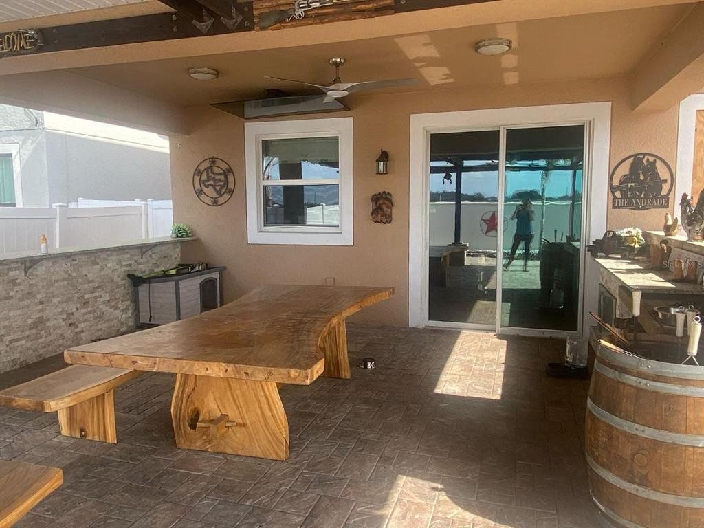 Welcome to this charming 4-bedroom, 3-bathroom home, just minutes from both Orlando and Disney World. This property offers direct access to all the best attractions in the area, making it a prime location for convenience and fun. The home features a beautiful, covered backyard patio with an outdoor grill, fireplace, and full fencing, perfect for family gatherings or relaxing evenings. Situated in one of Kissimmee's most desirable neighborhoods, it is near top-rated schools, making it the ideal family home. The community offers a scenic pool, fitness center, and fully secured entrances with officers to ensure peace and safety for all residents.