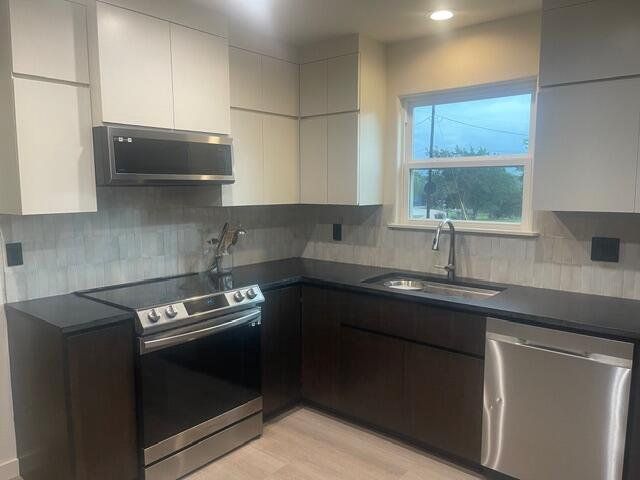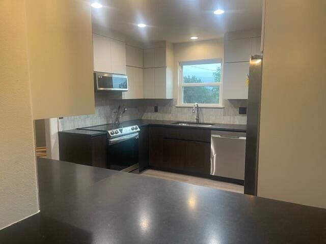 Nestled in the serene community of Spicewood, this charming property on Cove Dr. a tranquil retreat in a waterfront neighborhood on just under an acre. The home features an open floor with ample natural light, a spacious kitchen with modern appliances, and a cozy living area appropriate for relaxation. Appliances, HVAC split system, windows, well pump/holding tank and septic pump just 3 years old. Brand new custom kitchen and master bath cabinets. Master en suite with deep soaking tub, double vanity and separate commode room. All fresh paint and new flooring throughout MOVE IN ready. Oversized 3 detached car garage. Washer/Dryer included. Enjoy the convenience of nearby amenities and the beauty of the Texas Hill Country. A wonderful opportunity to own a piece of Spicewood charm. No HOA and NO Restrictions.