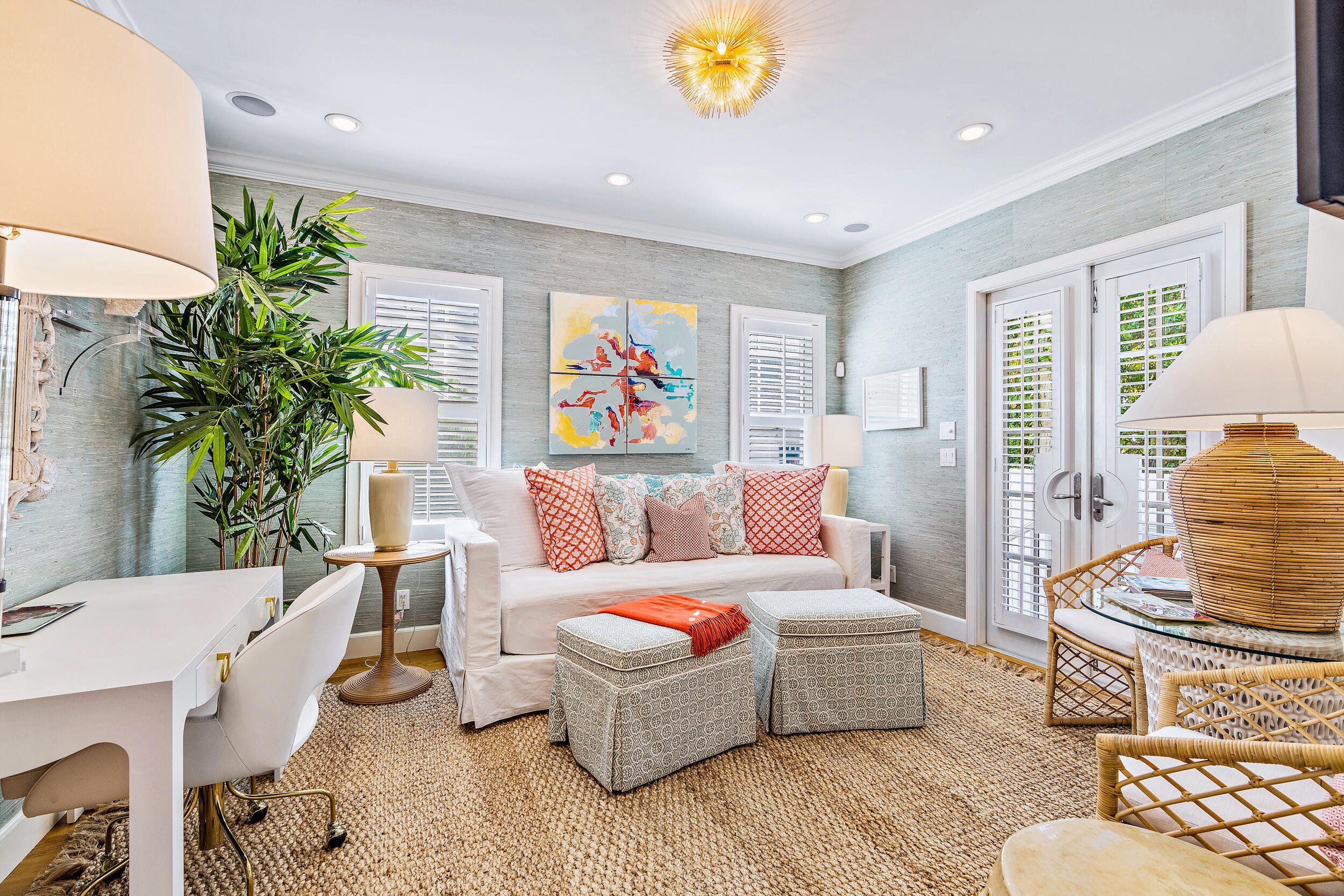 This 3 bedroom, 3 bath Palm Beach cottage is located two blocks from the Ocean and one block from the Intracoastal. Sublimely located near town, restaurants, The Royal Poinciana Plaza and all Palm Beach has to offer. Stylishly furnished with Serena & Lily. An idyllic rental, with a lovely front porch, an open floor plan that includes a living room, dining area, wet bar, washer/dryer, and a renovated kitchen. The second floor includes a primary suite with bath, two walk in closets, sitting room and a third bedroom with bath and walk-in closet. The main floor bedroom can also be used as a den/office. This island gem is completed by a lovely garden with lush tropical landscaping and a patio for relaxation. This is a pristine rental in the heart of Palm Beach