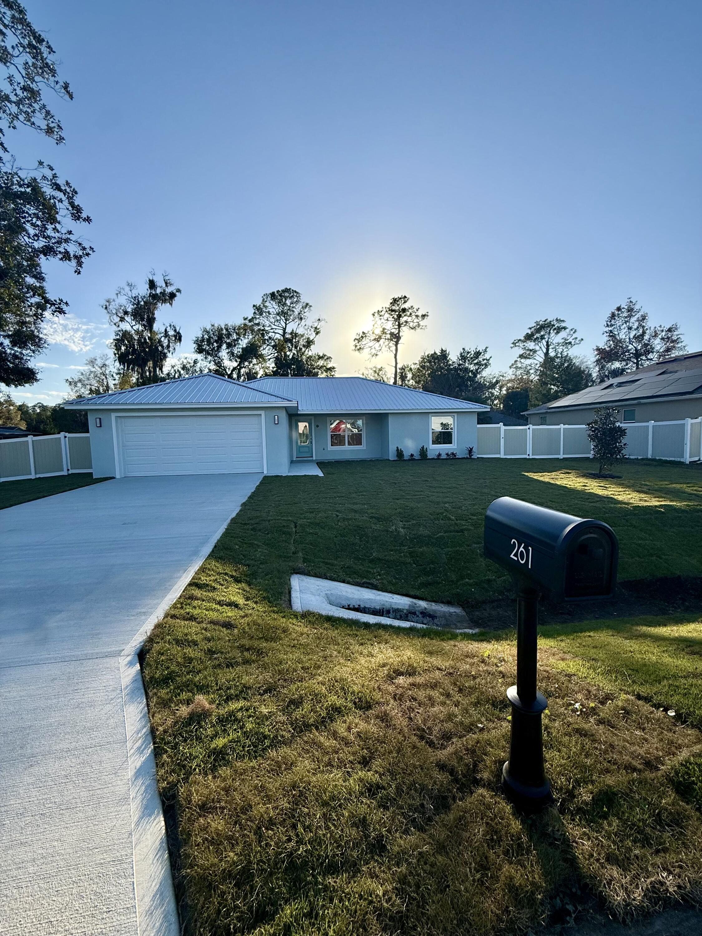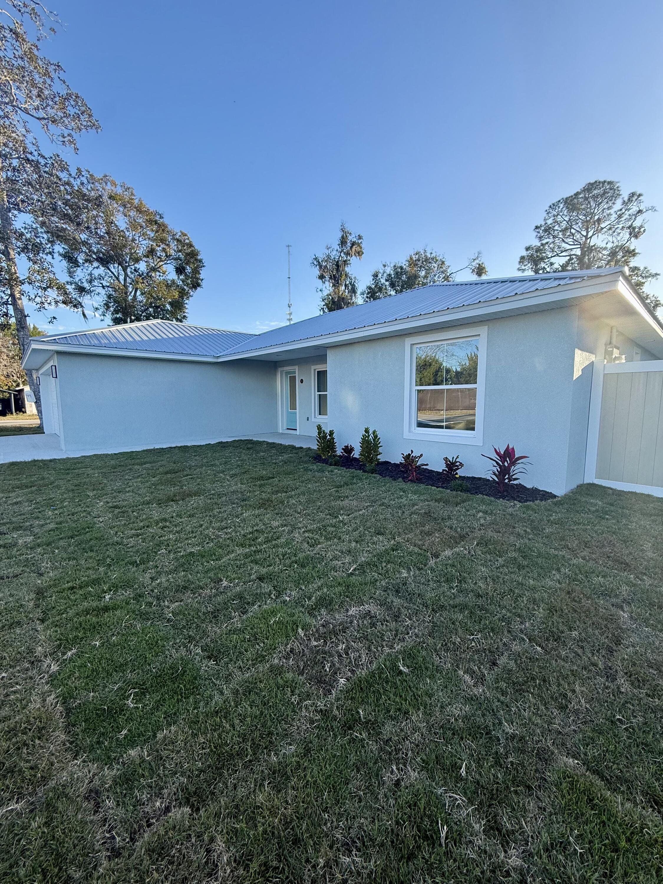 Brand new 3BR/2BA on a Corner Lot | Metal Roof | Covered Front & Rear Porches | Fully Fenced Back Yard. Be the first to live in this brand-new 3-bedroom, 2-bathroom home on a corner lot featuring mature oak and magnolia trees, covered front and rear porches, a fully fenced backyard, and a 2-car garage. This thoughtfully designed new build presents a open-concept layout, durable luxury vinyl plank flooring, and bright recessed lighting throughout. The Kitchen includes granite countertops, dark shaker cabinets, stainless steel appliances, and a large island for entertaining or everyday living. The primary suite features a large walk-in closet, a private en-suite bath with custom tile finishes, a large walk in shower, and a large double vanity with granite counter tops. while the secondary bathroom presents an oversized vanity with granite countertops, and a tub/shower combo with designer tile surround. Enjoy the privacy and character of established oak and magnolia trees paired with the convenience of brand-new construction, modern systems, and appliances— offering low maintenance and long-term peice of mind. Move-in ready and conveniently located in the heart of Bunnell, this home is just minutes from Flagler beach, scenic state parks, and miles of outdoor recreation. Enjoy a quiet community feel with convenient access to daytona Beach, St. Augsutine, and I-95. *Master shower has a glass panel installed, not shown in photos.*