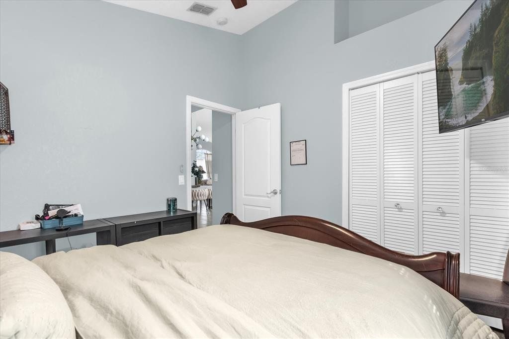 Interior Features: Ceiling Fan(S), Primary Bedroom Main Floor, Solid Surface Counters, Solid Wood Cabinets, Split Bedroom, Stone Counters, Vaulted Ceiling(S), Walk-In Closet(S)