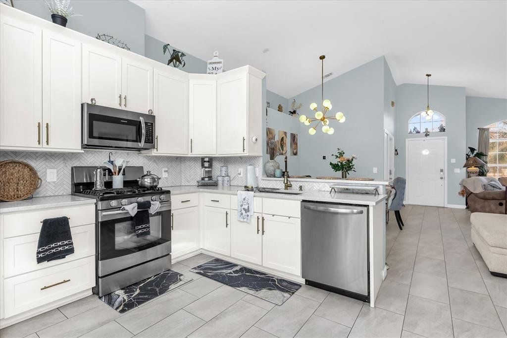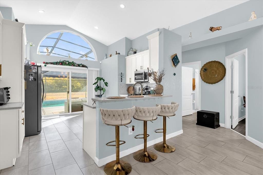 Your chance to own this fantastic one-story pool home backing onto a peaceful conservation area! This inviting home features soaring ceilings and has been beautifully updated with a brand-new kitchen, brand-new primary bathroom, and brand-new secondary bathroom. The gas stove is perfect for home chefs, and the open layout creates a bright, welcoming atmosphere. Recent upgrades include: Roof (2019) A/C (2019) Water heater (2022) Pool screen enclosure (only 3 years old) Located in a fantastic community offering resort-style amenities such as a pool, clubhouse, tennis courts, and basketball courts. Conveniently situated just off Highway 27, close to shopping, dining, and only minutes from Disney attractions. This home combines comfort, updates, and location—an opportunity you don’t want to miss!