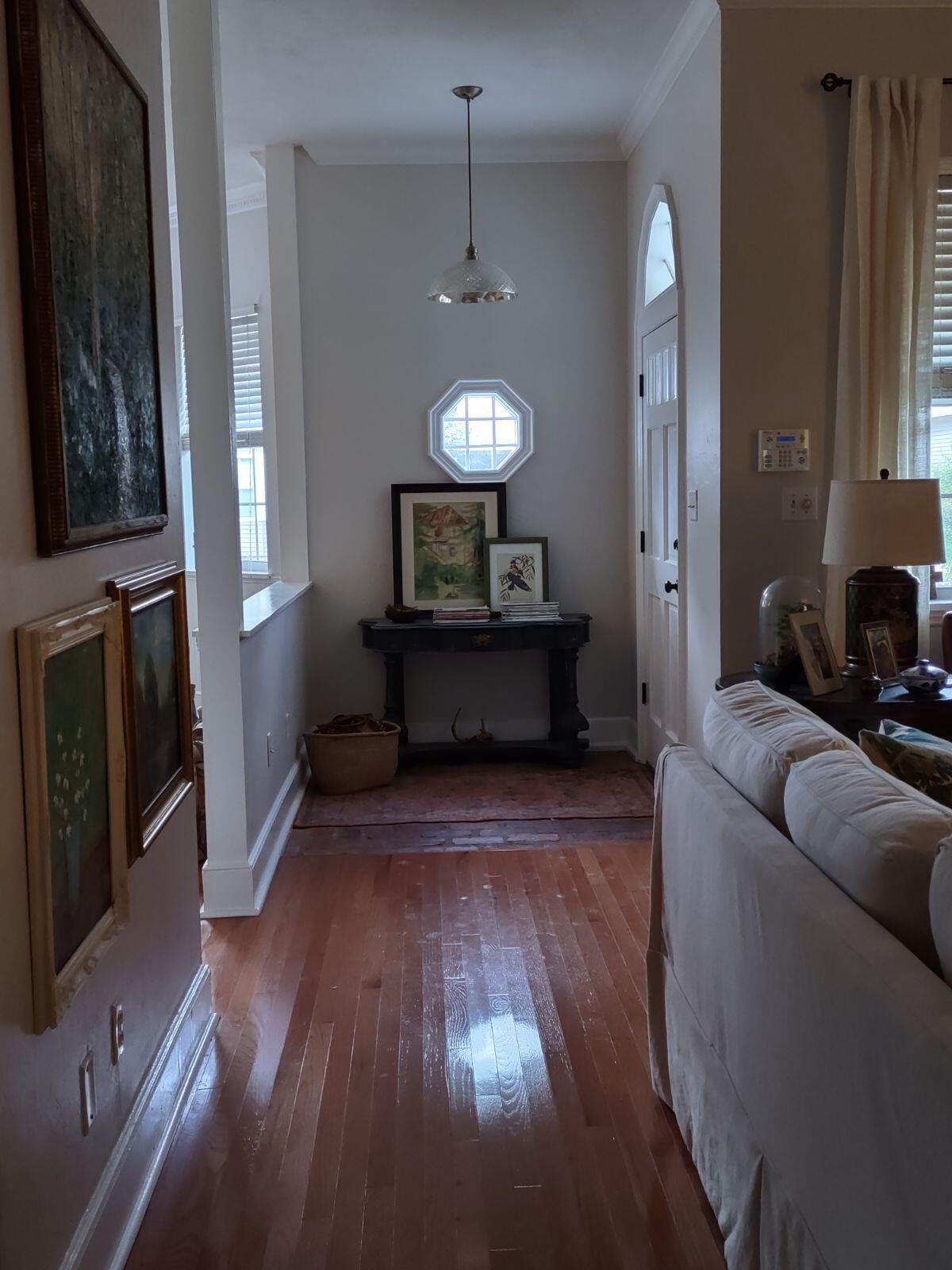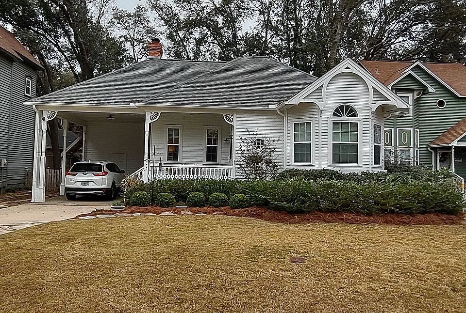 Great Location. Close to everything, but feels tucked away. Sip iced tea on the front porch or lounge in the expansive sun room which can function as a guest bedroom. Enjoy a roaring fire in the wood-burning fireplace. Home boasts 10 ft ceilings with solid wood floors and crown moulding. Roomy 2/2 with ample storage. Large primary bedroom. (Primary bath is undergoing a renovation). This street was designed with two "Overflow parking" areas for yourself, additional guests, or the occasional party.
