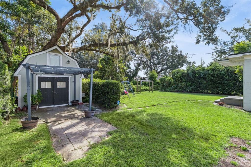 Discover the best of community and convenience at 275 Virginia Drive! This charming, mid-century gem created treasured memories for the same owners since 1955. A perfect blend of vintage character with some fresh updates, this classic 4-bedroom, 2.5 bath ranch has been meticulously cared for and is move-in-ready, but could also present an ideal canvas for a designer’s brush. Situated on a quiet street in the golf cart district of downtown Winter Garden, this home has the benefit of being closely located to the vibrant downtown area where top-rated dining, trendy shops, and the weekly farmer’s market await. For even more recreation, the West Orange Trail is one block away for jogging and biking, or take a quick golf cart ride to appreciate the serenity of Lake Apopka. Beyond a front entrance showcasing the original owner’s beveled-glass artistry, natural light from a large picture window enhances the vintage hardwood floors and neutral colors flowing throughout the living room and secondary bedrooms. An efficient kitchen features a cozy breakfast nook adjacent to the combined great room and dining area; an ample, open space for entertainment and holiday gatherings with loved ones. The separate, primary bedroom is generous, boasting a private entrance and a full, tiled bath. The roof, HVAC, and some plumbing fixtures were replaced within the last few years and in August 2025, a new and upgraded electrical system was installed. Outside, a handy sprinkler-system helps keep the sunny front yard lush while the backyard is surrounded by mature trees and shrubbery, making it a perfect spot for little ones and four-legged friends to roam freely without worry, as well as cookouts, or just outdoor relaxation in the warm Florida weather. Creative folks will spend countless hours in the custom workshop situated on its own concrete slab, and complete with attic storage and window A/C. This shed could easily be insulated and upgraded to create a comfortable space for a hobby area, man cave or anything else to suit your needs! This charming home is brimming with nostalgia and is ready and waiting to be your new forever home. Don’t miss your chance to own a piece of Winter Garden history, schedule a private showing TODAY!!!