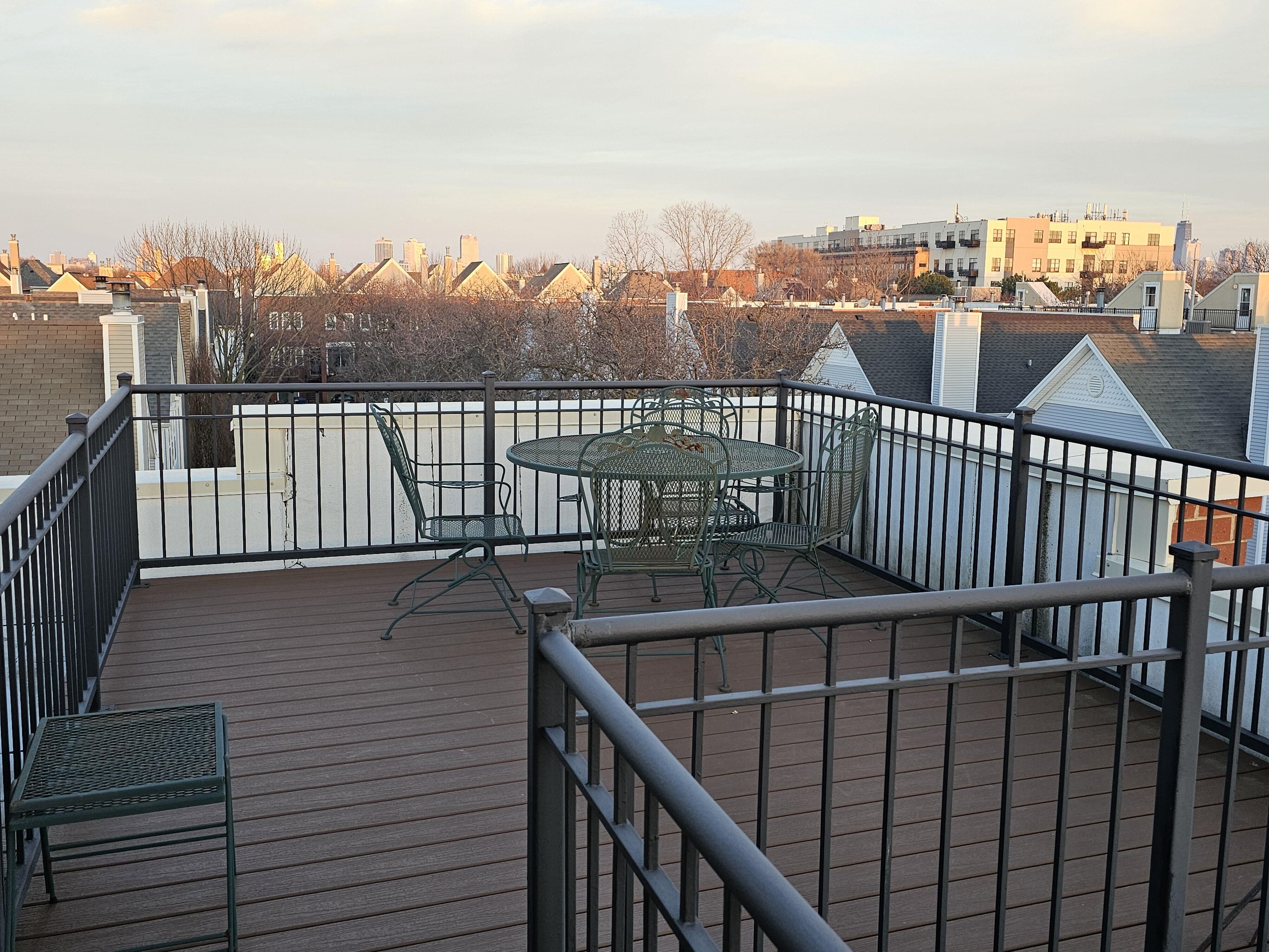 Rarely available 3 bedroom, 2 bath corner townhouse in the gated Landmark Village community in West Lakeview / Roscoe Village. This is the largest Floor Plan A in the development, distinguished by its first floor entry and three private outdoor spaces—a private patio, a large balcony and rooftop deck with skyline facing views. This three story, sun filled home enjoys southern, eastern, and western exposures, making it one of a few coveted corner units. It is set in a serene, tree lined, gated subdivision with a suburban feel. Layout