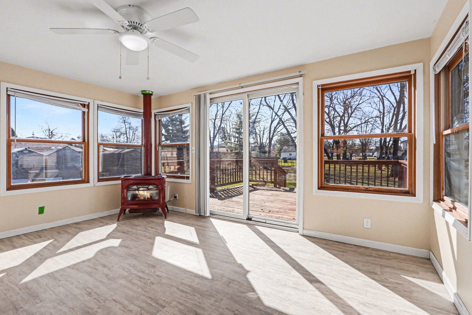 This 4-bedroom, 2-bathroom ranch on over half an acre is the perfect opportunity for a first-time buyer or a savvy DIYer looking to build instant sweat equity. You get the peace of mind of brand-new essentials combined with a price point that allows you to customize the rest. Split floorplan design with primary suite on one side and secondary bedrooms on the other. Right off the eat in kitchen is a cozy sun porch with gas heater leading onto a large deck overlooking the massive 0.61-acre lot. Plenty of room for an outbuilding, a garden, or the ultimate backyard setup! Updates include AC & Water Heater (2025), Roof (2022) Refrigerator & Microwave (2025), Luxury Vinyl Plank throughout (2024), Smart Garage Door Opener (2025) for the attached 2 car garage. This is a rare chance to own a large piece of land with updated systems at an affordable price. Schedule your tour today and see the potential for yourself! Sold as-is.
