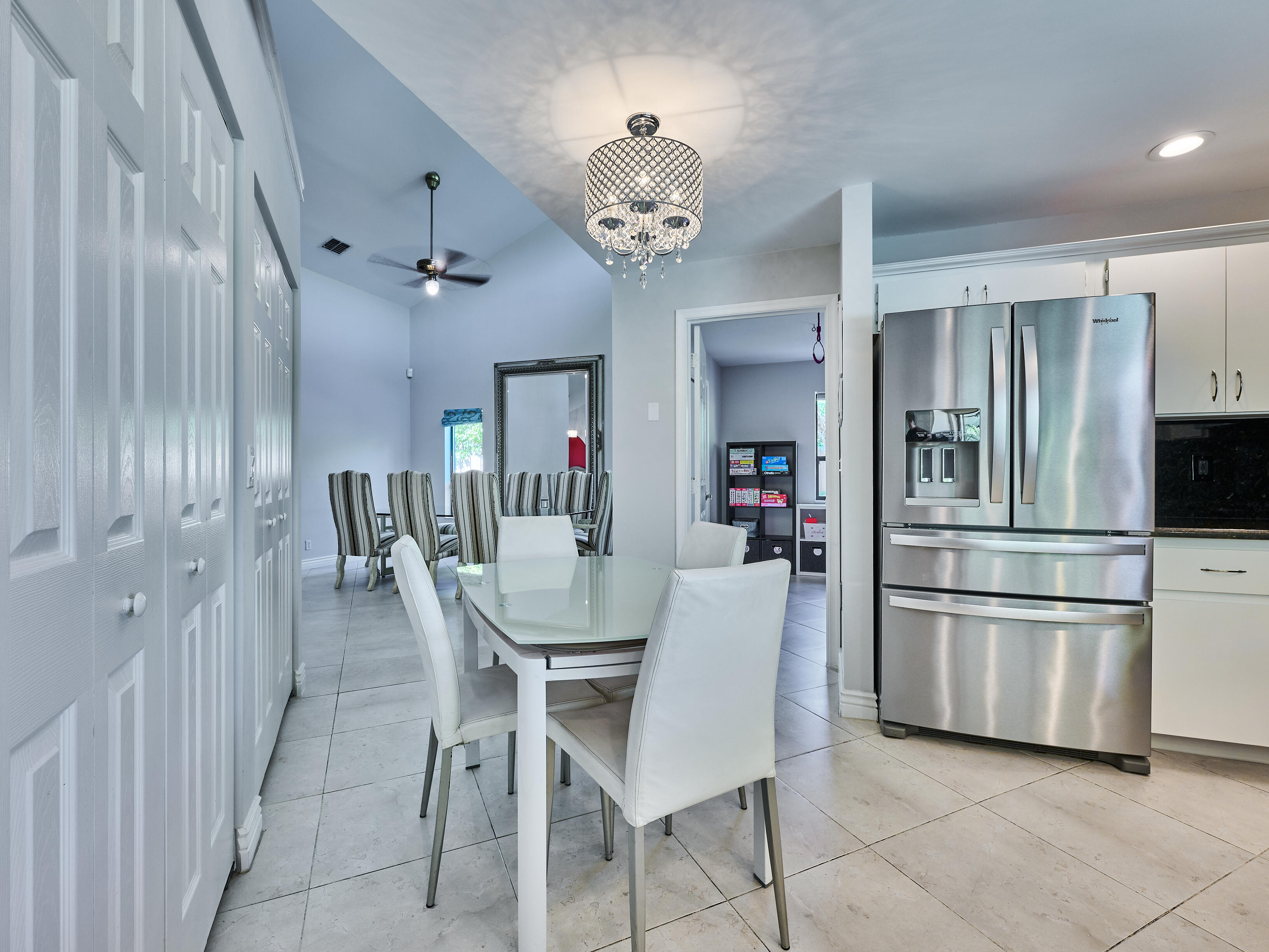 Great location, wonderful neighborhood, well-maintained! Close to everything you need. Beautiful impact doors open to a fantastic layout with vaulted ceilings, flowing rooms, and multiple bright, spacious living areas! Great house to entertain in. The kitchen contains a sizable custom-built pantry, beautiful black granite countertops, and wide sliding windows. Enjoy a pool view from the main room, accented by a slate fireplace and wood plank wall. 3 large bedrooms on one end of the house and 2 extra rooms on the other (perfect home office). The primary boasts vaulted ceilings, 2 closets (1 walk-in closet), sliding impact doors, impact skylight in vaulted bathroom, seated vanity, and walk-in shower with 2 separate temperature control systems! The large overhang on the patio lets you enjoy the fenced backyard and heated pool (or cooled) year-round. The garage is kept cool with its own AC, insulated impact garage door, and new insulation. Roof 2023 (12/2028 warranty); highest quality PGT low-e windows & doors throughout most of the house 2024; Rheem high-efficiency pool heater 12/2024; Maytag washing machine 2022 (warrantied); KitchenAid dishwasher 2025 (5 yr. warranty), Rheem 80 gallon water heater (lightweight commercial) 2022 with mixing valve/booster to extend hot water; complete AC w/UV light 2021; large Whirlpool fingerprint resistant stainless steel fridge 2022. Child safety pool fence. Central vacuum system. ADT alarm. New Kidde smoke & CO2 detectors 3/2026 w/ 10 yr. warranty. Nest learning thermostat. Comes with 58" Samsung TV in living room with Infinity surround sound & Marantz receiver. Fireplace currently set up as electric with heat. AC serviced 2/2026. Roof inspected and maintained 1/2026. Plenty of storage throughout the house, including the attic. The yards have great outdoor space, beautiful landscaping, and banana plants and avocado trees. One of the last lots developed, so it's elevated above its surroundings and graded well. Within incorporated Boca, so you are eligible for the annual beach pass. Centrally located - all grades of schools within 1.6 mi. Only a few minutes to the 95 or turnpike, Boca mall, Cinemark, and other entertainment. Owner has maintained a binder containing records including manuals, warranties, survey, house plans, and extras of important items.
