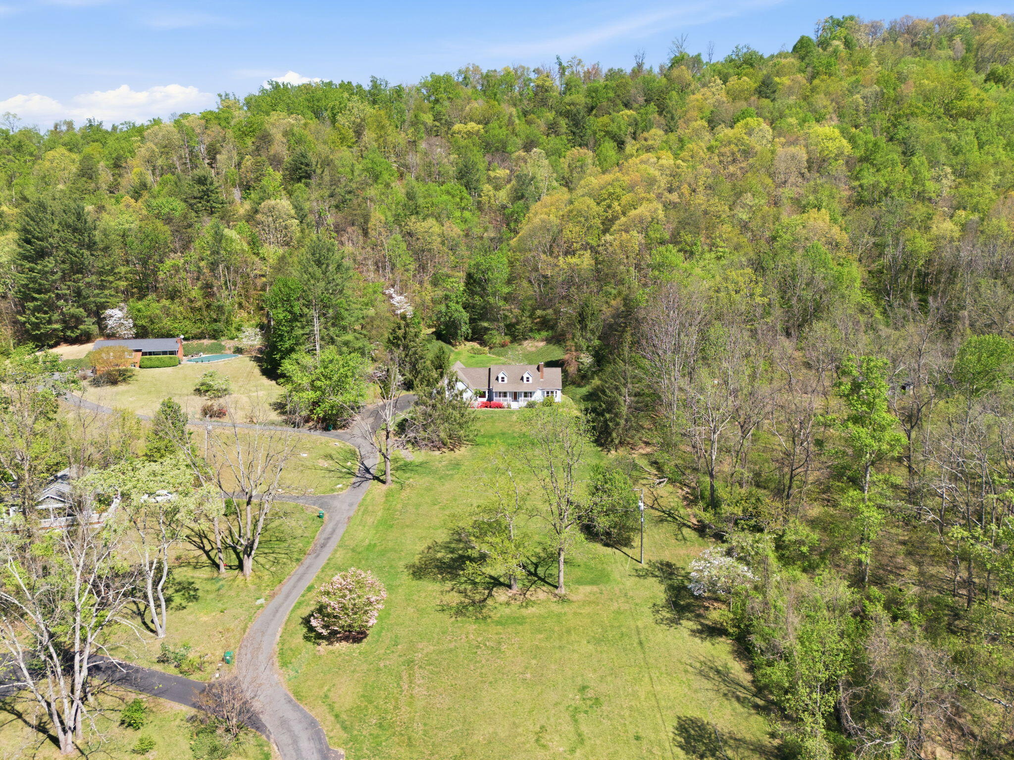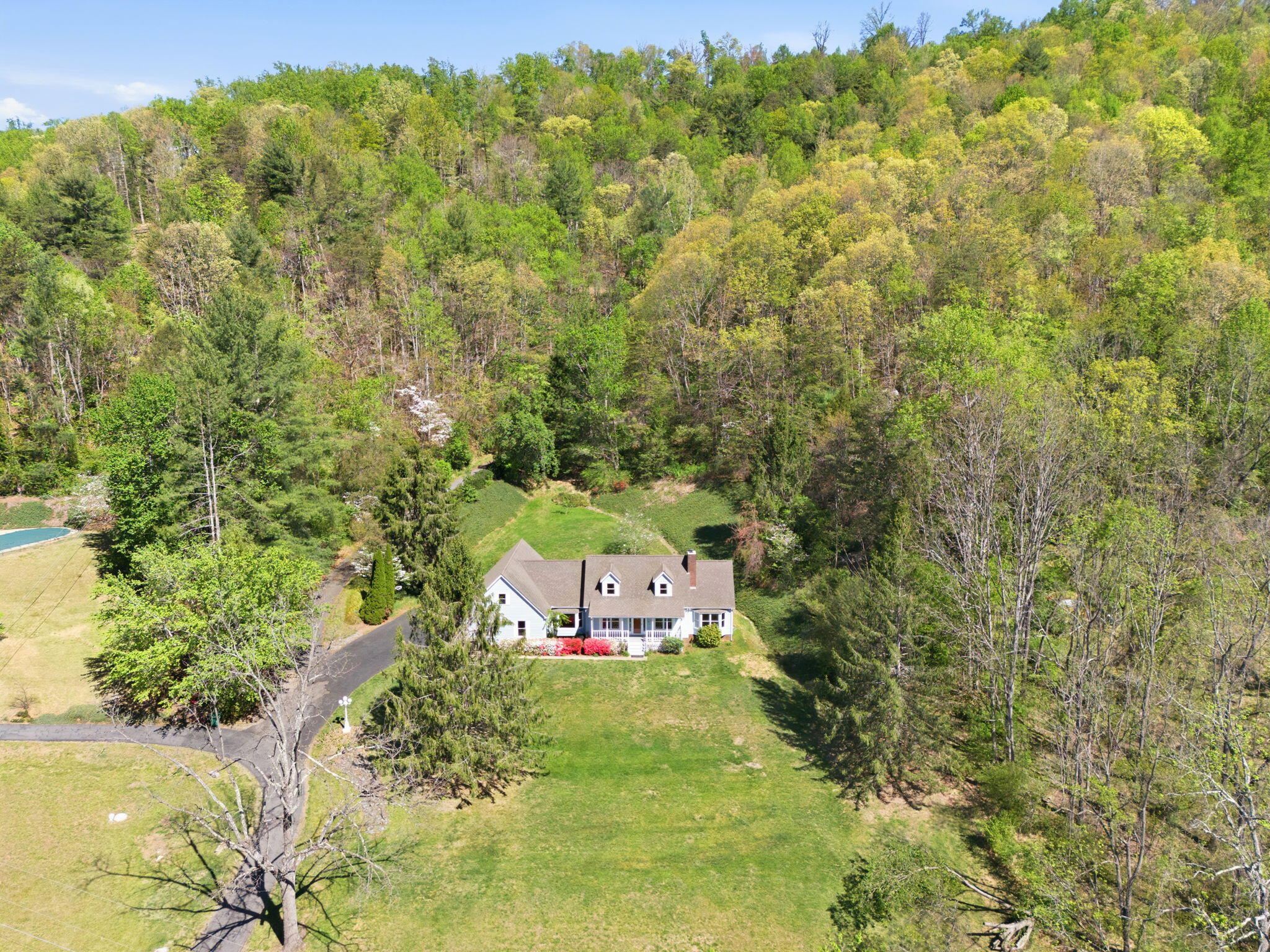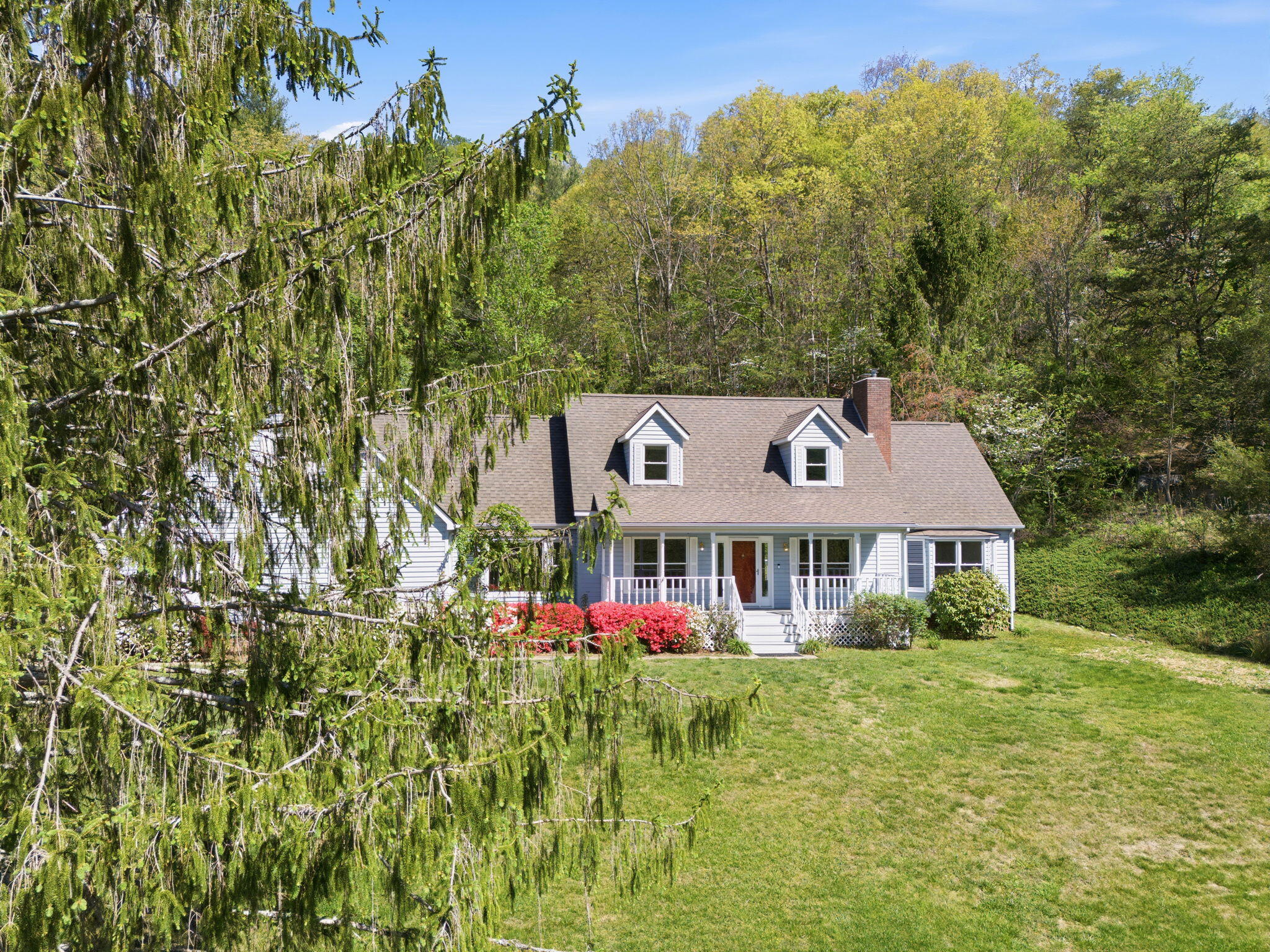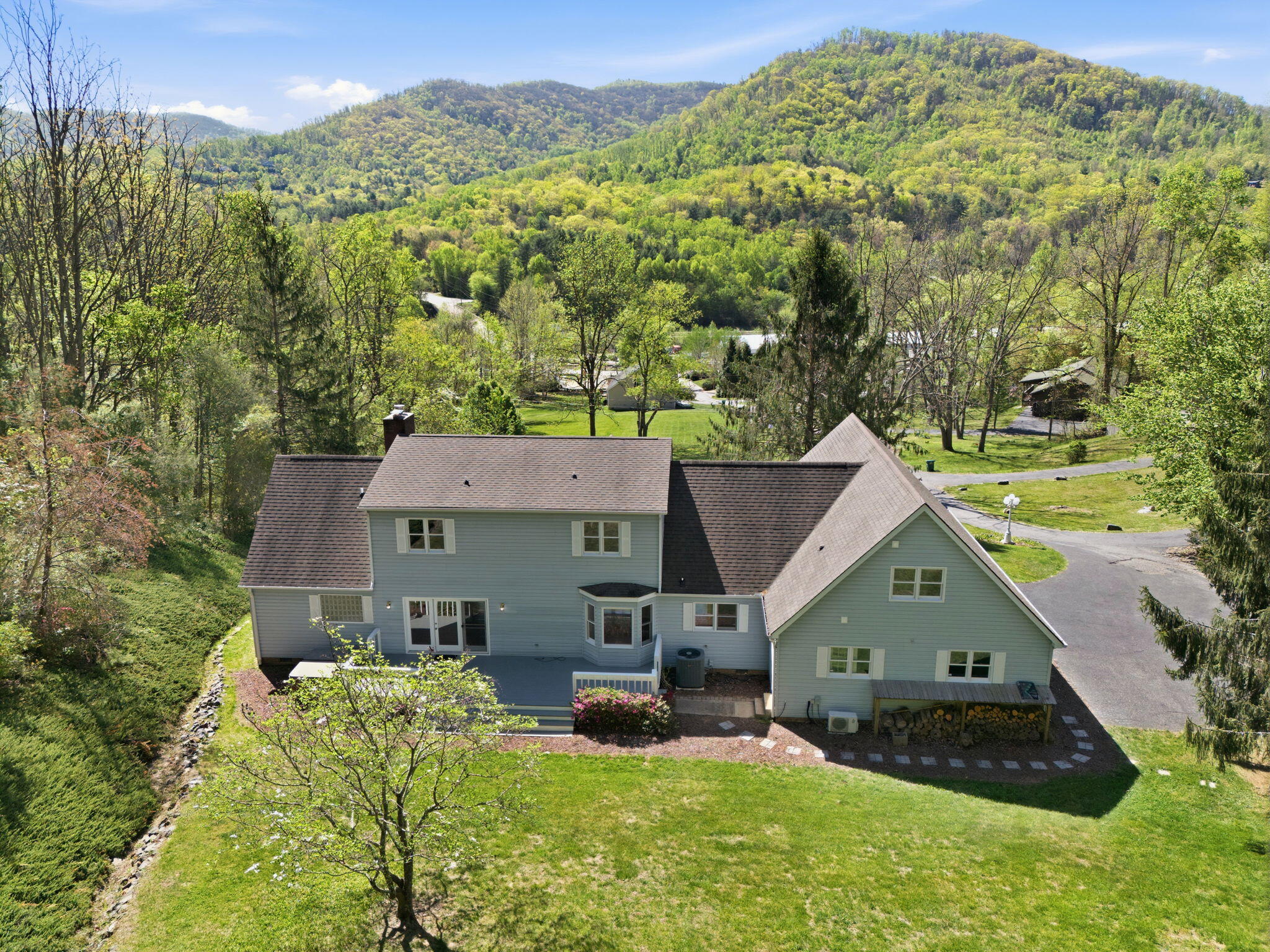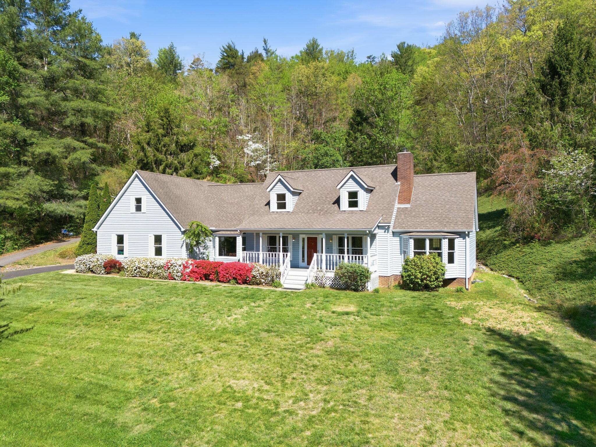 Beautiful 2,900+ sq ft home on phenomenal 9.52 acres nestled ten minutes from both downtown Asheville and charming Black Mountain! Gorgeous mountain and nature views from all rooms, the front porch, and back deck – or walk your private trail to soak in the peace. Spacious interior has large bedrooms, a master suite w/ walk-in and private bathroom, laundry room, dining room, kitchen nook, office or TV area, 2 car garage, garage hobbyshop, and joint or private entry 1 BR/BA in-law above attached garage. Many recent upgrades including carpet, paint, bathroom remodel added to the beauty of crown molding touches and rich hardwood floors. Cape Cod curb appeal, low street traffic, zip-line, seasonal stream/pond, and parking for all your garden parties, family complex, boats or RV’s. Home on city water, but land has separate well / utility access in place to expand (owner makes no warranty). Move-in and private viewing ready.