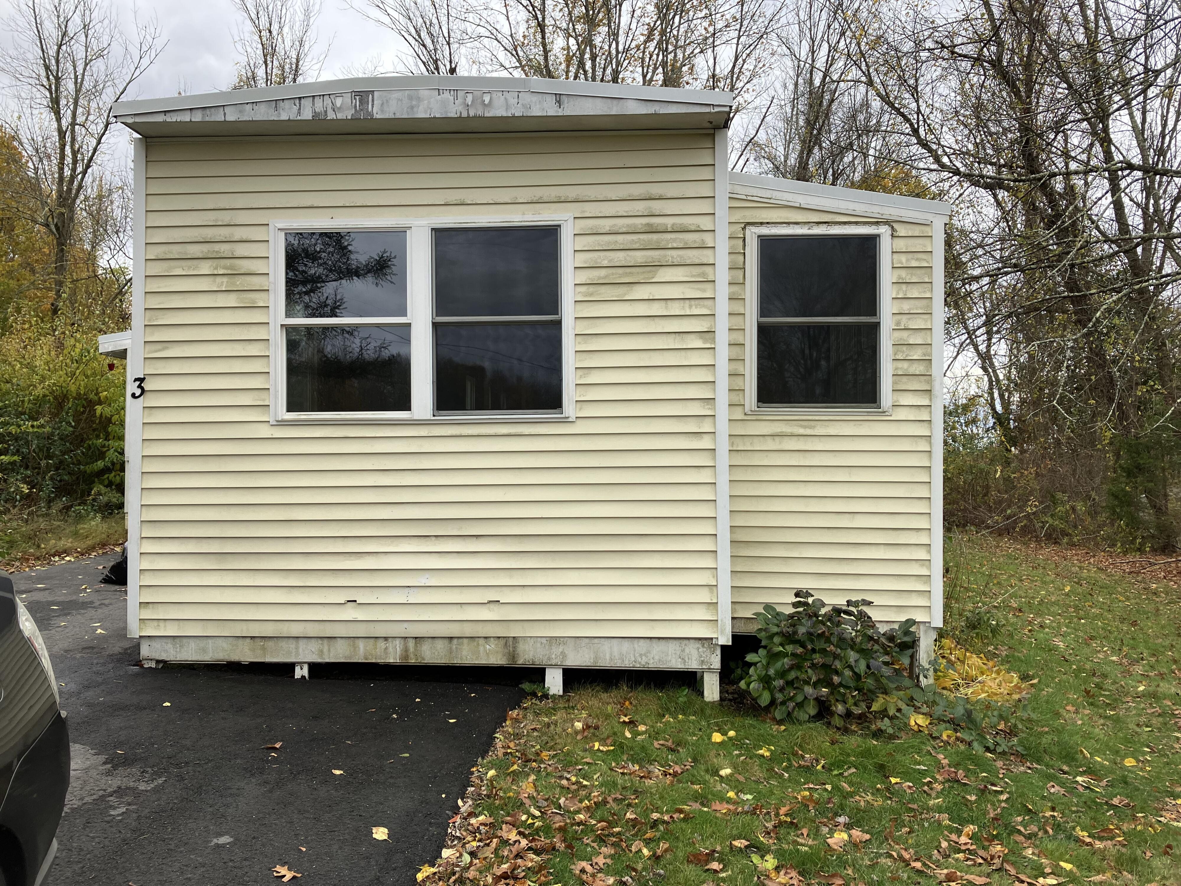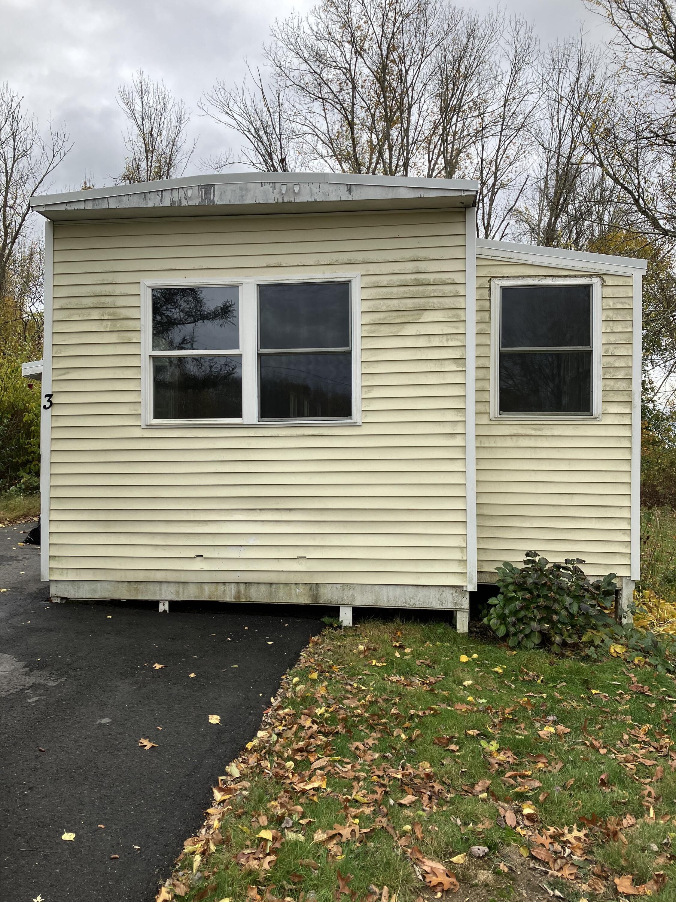 Halfway done renovating. Stills needs some things: Wiring Insulation Drywall Ceilings Kitchen Skirting installed. Very large lot, off street parking fits 3 cars. Must be approved by park. Very quite and peaceful area.