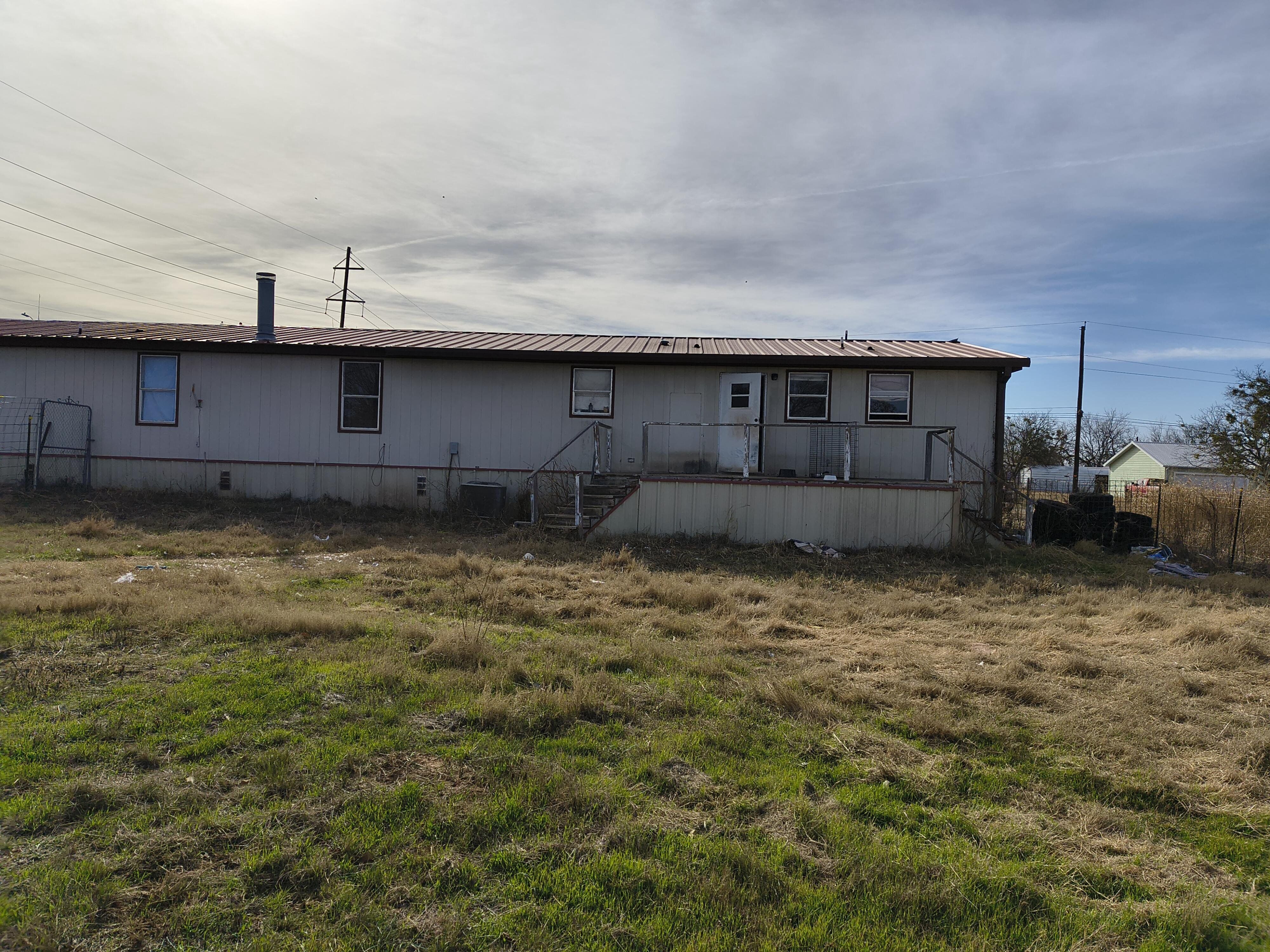 4BR/2BA mobile home offering approx. 2,446 sq ft on a 0.5-acre corner lot (four city lots). Features concrete siding, metal roof, crawl space, and a 10x12 metal storage building. Interior is mostly original with carpet and vinyl flooring, wood kitchen cabinets, laminate countertops, and a garden tub/shower. No known plumbing issues. Excellent opportunity for updates and value-add potential.