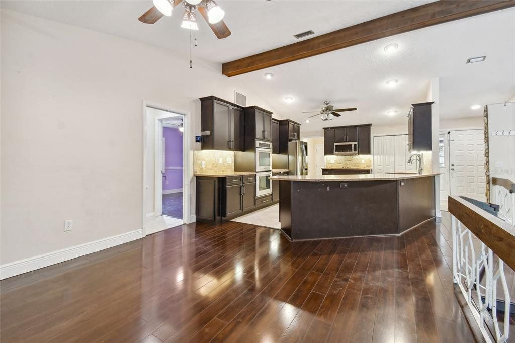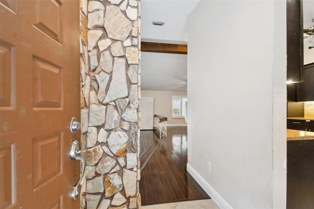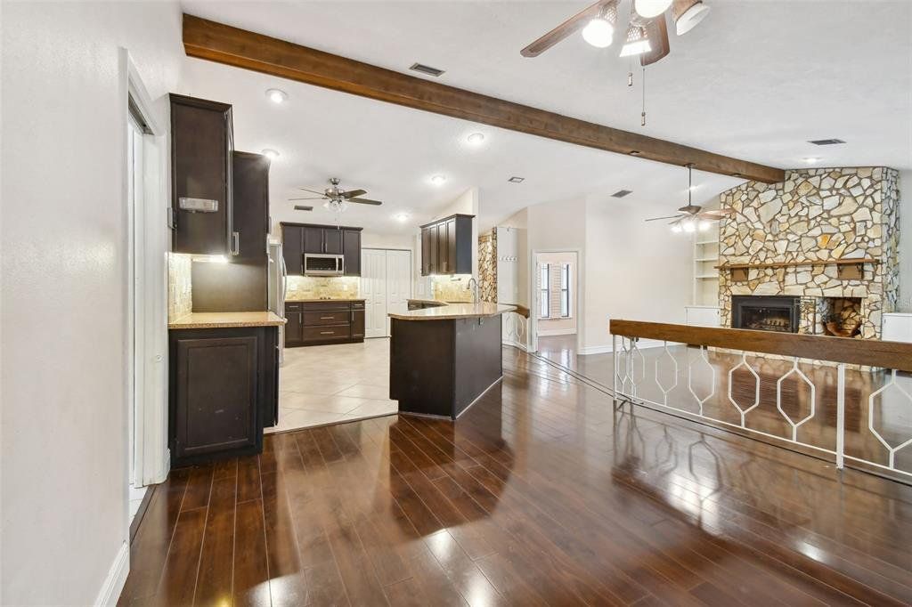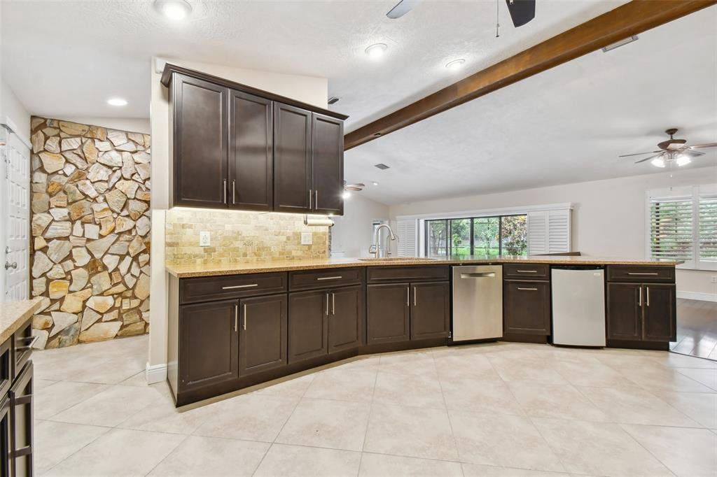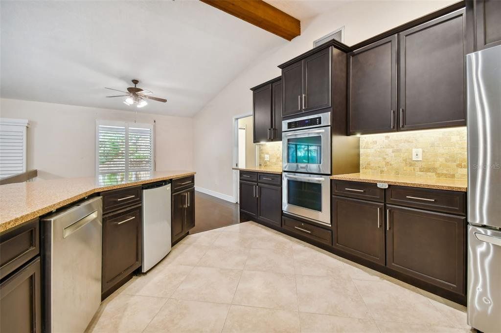 Surrounded by serene, mature landscaping and situated in a non-evacuation zone ~50 feet above sea level, you will find 3015 Tall Pine Drive in the ultra-desirable Rainbow Farms neighborhood. Overlooking a quiet conservation pond, you’ll enjoy a fun day splashing in the dual shallow ended pool with a soothing trickling waterfall over the rock wall. This four-bedroom, two-bath updated home is simply ideal in so many ways. The renovated kitchen boasts ample kosher-compatible Caesarstone quartz countertops, newer stainless LG and Kitchen Aid appliances including dual ovens, view friendly refrigerator, flat surface cooktop, excellent pantry storage, water softener and whole-house filtration system. The primary suite is perfectly positioned overlooking the pool and backyard through your personal sliders. Two beds and an additional bath are across the home with the fourth bedroom also split, ideal for guests or a second office. The expertly appointed home office with cathedral ceiling is behind a glass door just off the living room. Completed with an oversized two-car garage, plantation shutters, child-safety pool fence, pineapple plants and tropical landscaping, this home is perfect for a growing family. Hurricane shutters, hard wired cameras with DVR, a locking mailbox, block construction and a roof installed in 2017 provide security, privacy and peace of mind. Close to everything and excellently rated schools, this home truly checks all the boxes and is a must see! Schedule your private tour today.