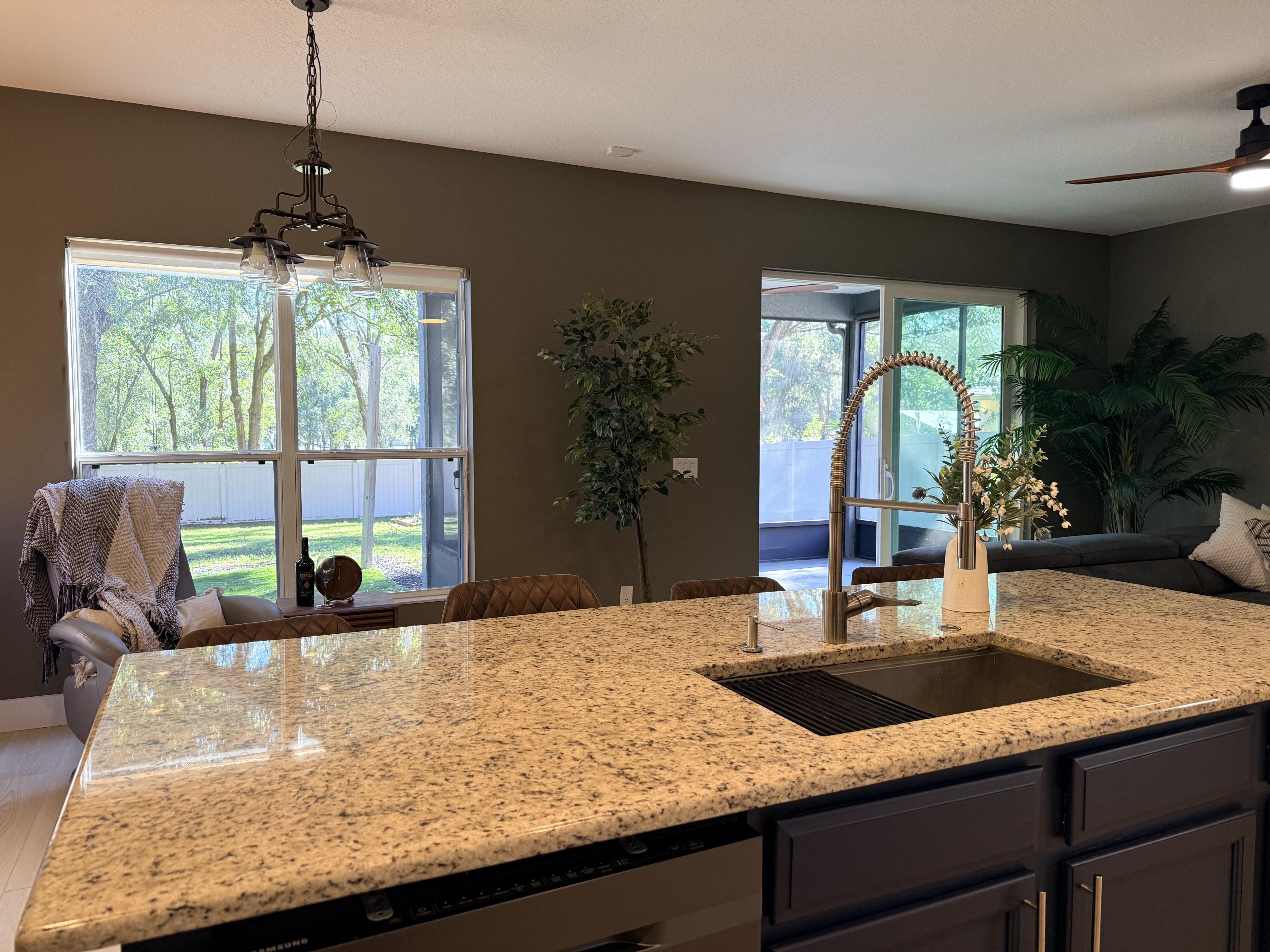 Experience elegance and comfort in this impeccably maintained four-bedroom, three-bath residence located in the heart of Sorrento, one of East Lake County’s most charming and desirable communities. This move-in-ready home combines tasteful sophistication with practical livability, offering a truly remarkable opportunity at its new, improved price. An Elegant First Impression Enter through a grand two-story foyer adorned with custom molding and rich wood stair treads. Throughout the home, luxury vinyl plank flooring provides both durability and beauty, uniting each space in seamless style. Every element reflects thoughtful design and enduring craftsmanship. Interior Highlights Owner’s Retreat: A sanctuary of comfort featuring a fireplace, deep soaking tub, waterfall shower, dual vanities, bidet, and a custom walk-in wardrobe of exceptional quality. Versatile Living Spaces: The layout includes a formal living room, an inviting family room, an open loft, and a first-floor guest or in-law suite with private bath and direct access to the backyard. Gourmet Kitchen: Designed for both daily use and gracious entertaining, this kitchen offers a large center island, Samsung appliances, and a butler’s pantry for added convenience. Refined Baths: Each bathroom evokes the tranquility of a European spa, with rainfall showers, premium finishes, and modern fixtures. Notable Enhancements This home has been updated with a number of high-value improvements, providing comfort and peace of mind for years to come: New roof (2020) and dual HVAC systems (2017