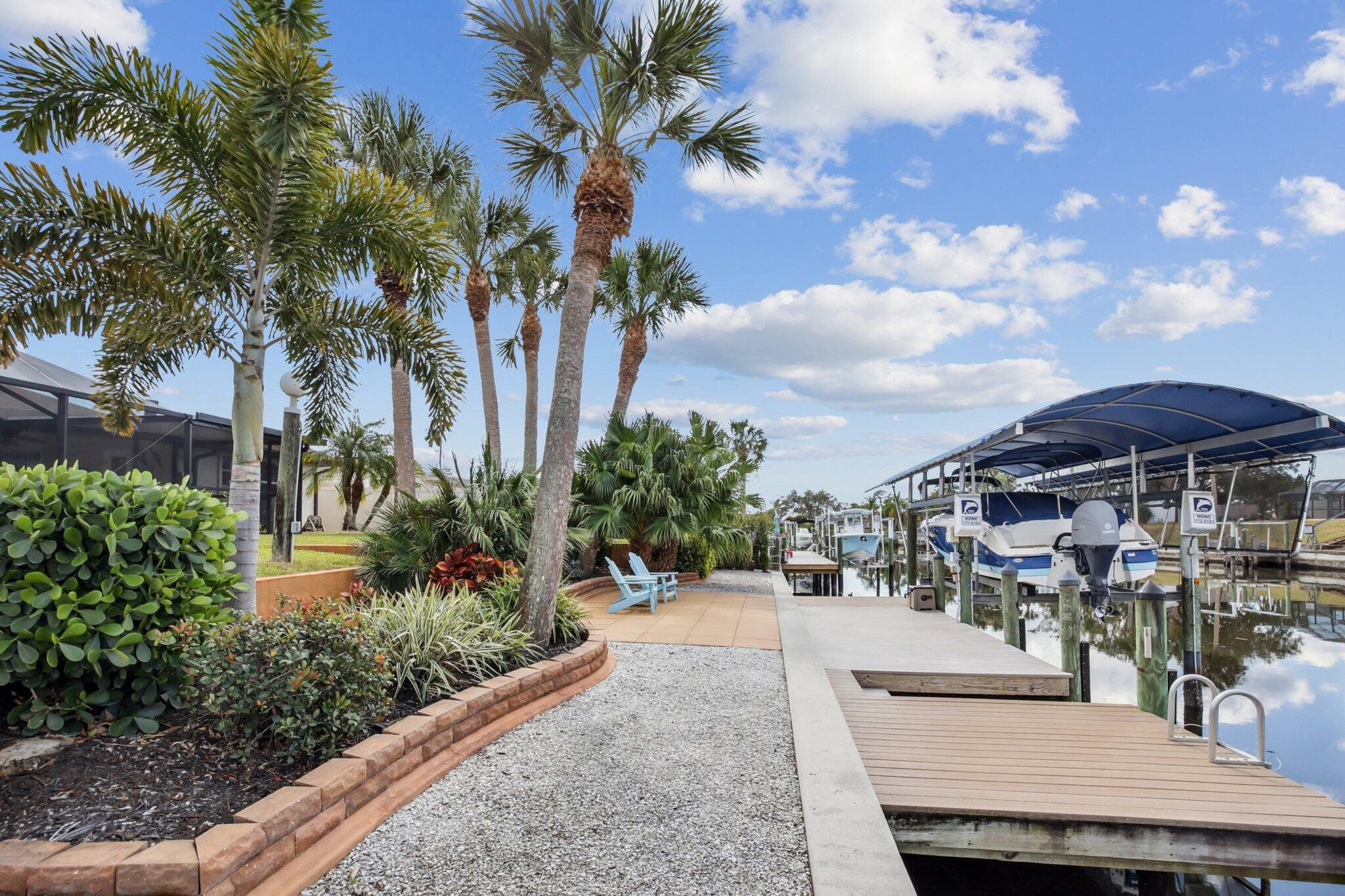 Waterfront paradise ready for a new owner. This three bedroom home creates a sense of home from the moment you walk through the front door. New wood plank laminate throughout, new windows, plantation shutters and crown molding are just a few of the upgrades. The kitchen is the heart of this home with cream wood cabinets, granite counters, black appliances and a pass-through window to the lanai. A brick propane gas fireplace is the focal point of the oversized family room that lets the outside in with sliders opening up to the pool area. Two guest bedrooms are tucked away to give your guests privacy and space. The master bedroom also overlooks the pool. A California walk-in-closet and bathroom make this suite complete. The screened lanai area is expansive with a heated pool that has been resurfaced. An additional patio is located adjacent to the boat dock making it the perfect place to watch the sunset. A10,000 pound boatlift with a lift cover will accommodate a variety of boat styles along with electric and water at the dock. A quick boat ride will have you out to open waters, a boater's true dream. A perfect location that is close to numerous beaches, shopping, restaurants, medical and golf. Come see what you have been missing.