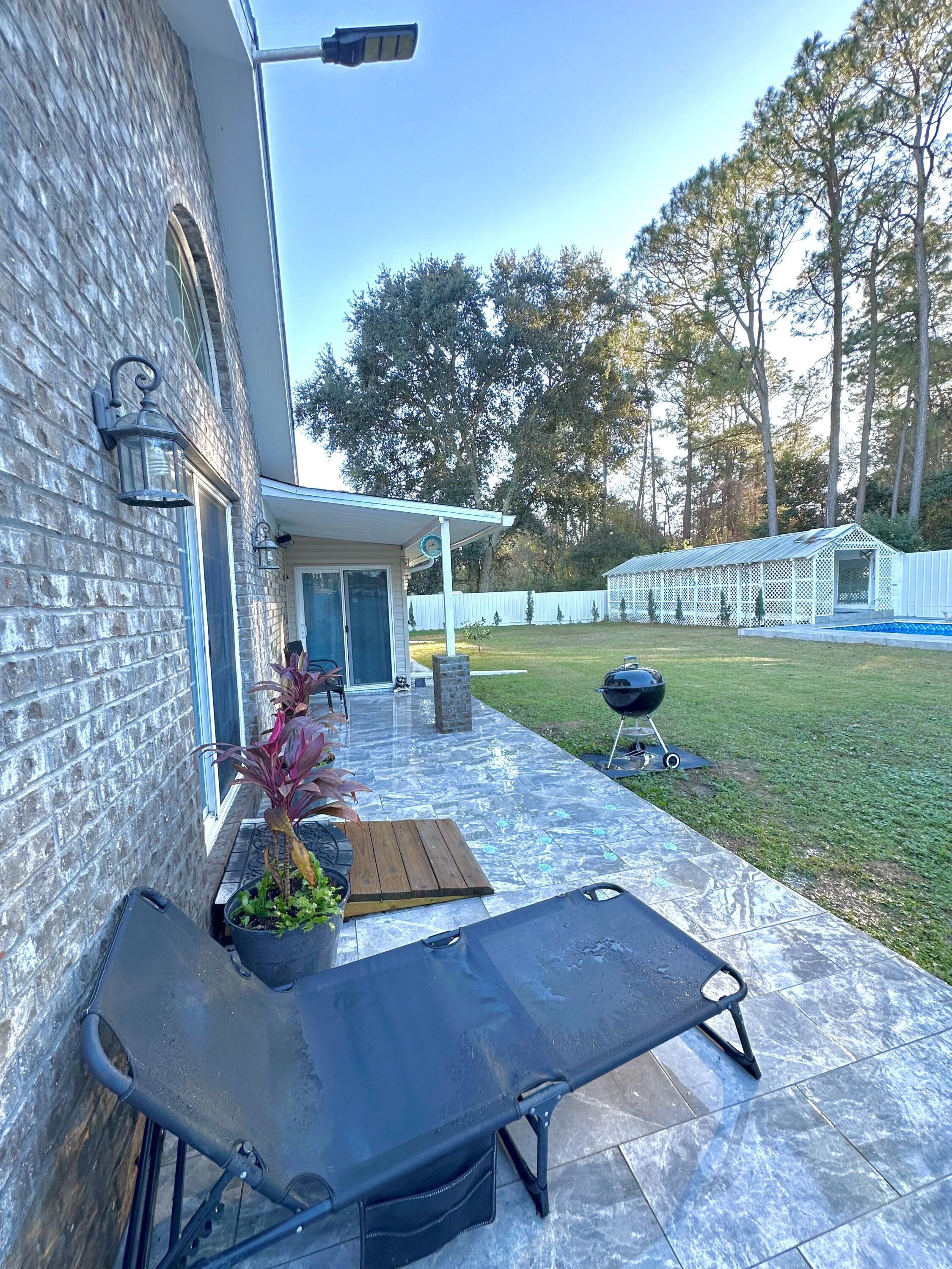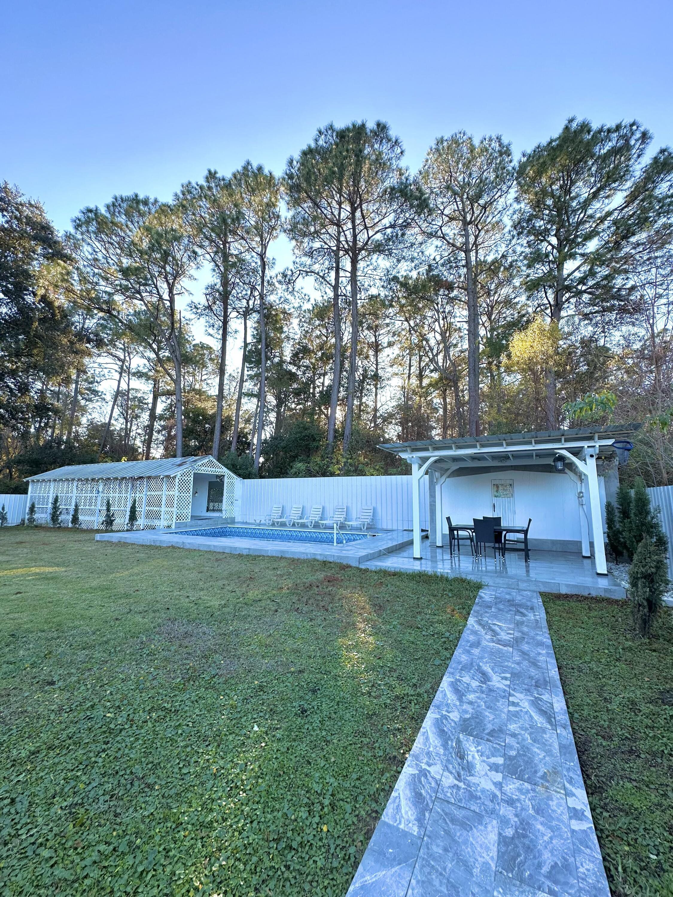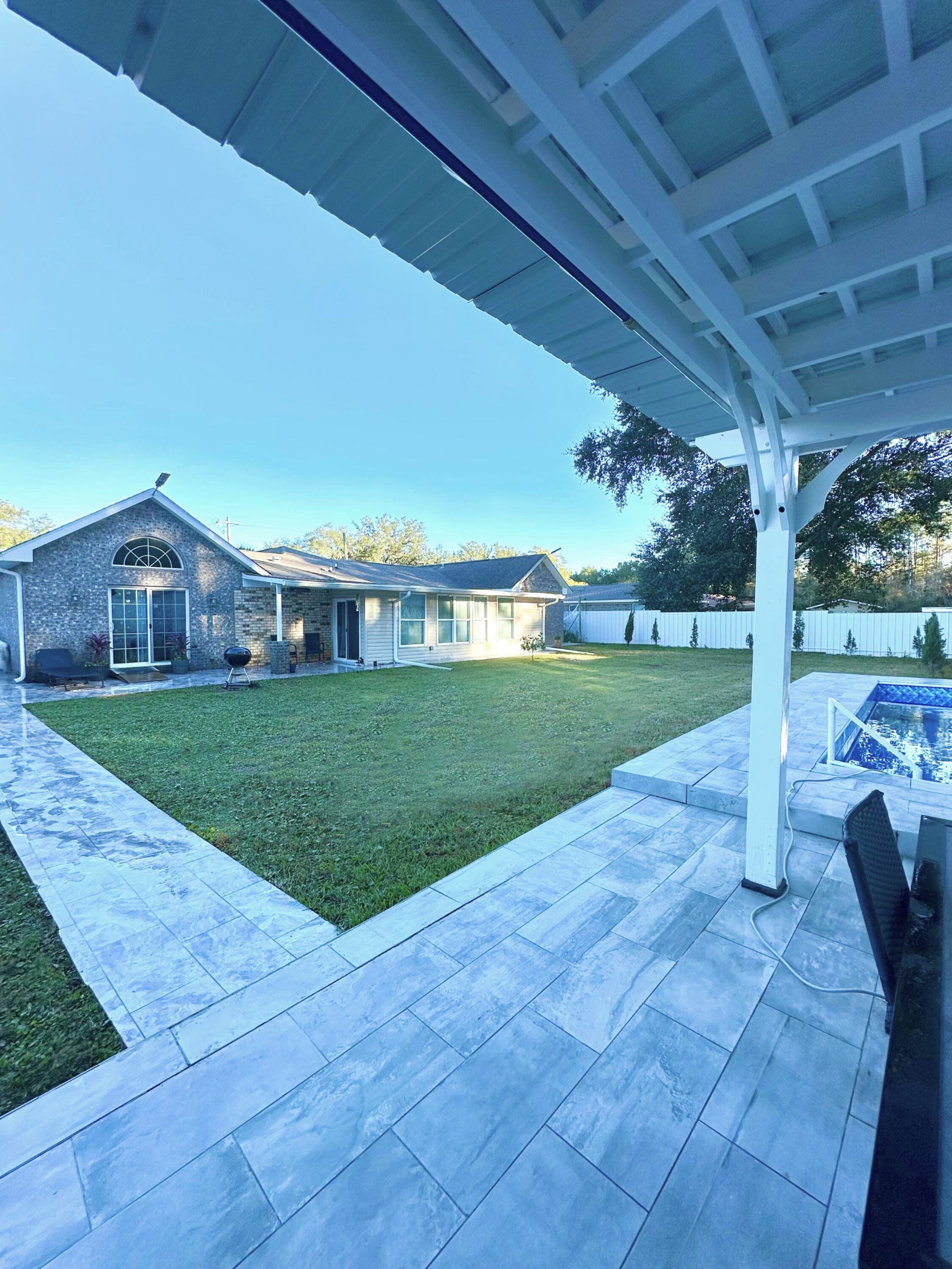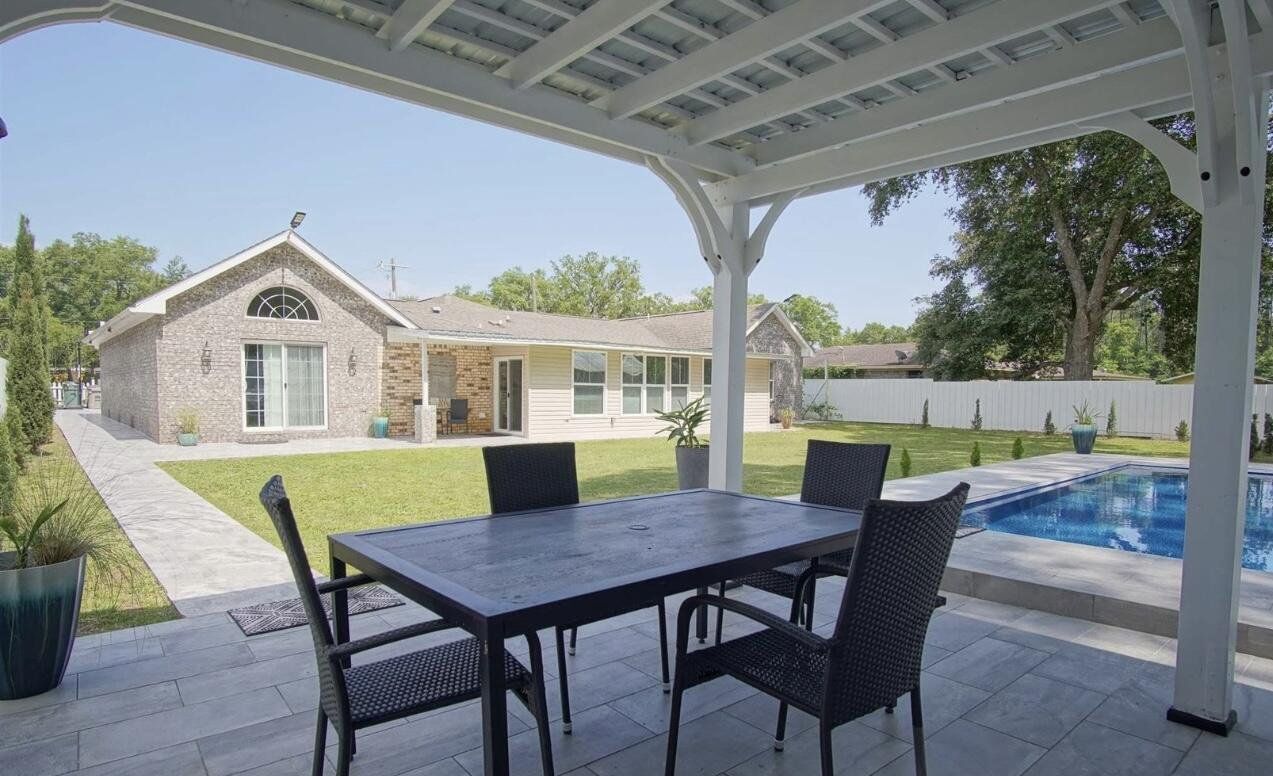 Live the Gulf Coast dream in this stunning 5-bed, 3-bath home with 3,262 sq. ft., den, and heated/cooled Florida sunroom—all backing to a serene bird preserve just 1 mile from Perdido Bay! Soaring vaulted ceilings, luxury tile floors, and a fully renovated quartz kitchen with stainless appliances set the stage. Entertain in style with a pergola dining area, 24x12 pool, and 60x20 party space with granite bar and sink. Relax in the private primary suite with jetted tub and walk-in closet. Newer roof, HVAC, and appliances, plus fenced yard with shed, lush landscaping, and mini vineyard. Gutted in 2019, and major remodeling done again in 2024 you don't want to miss this one! Available only due to relocation! This home in a quiet, no-through-traffic community near NAS is move-in ready and loaded with upgrades!