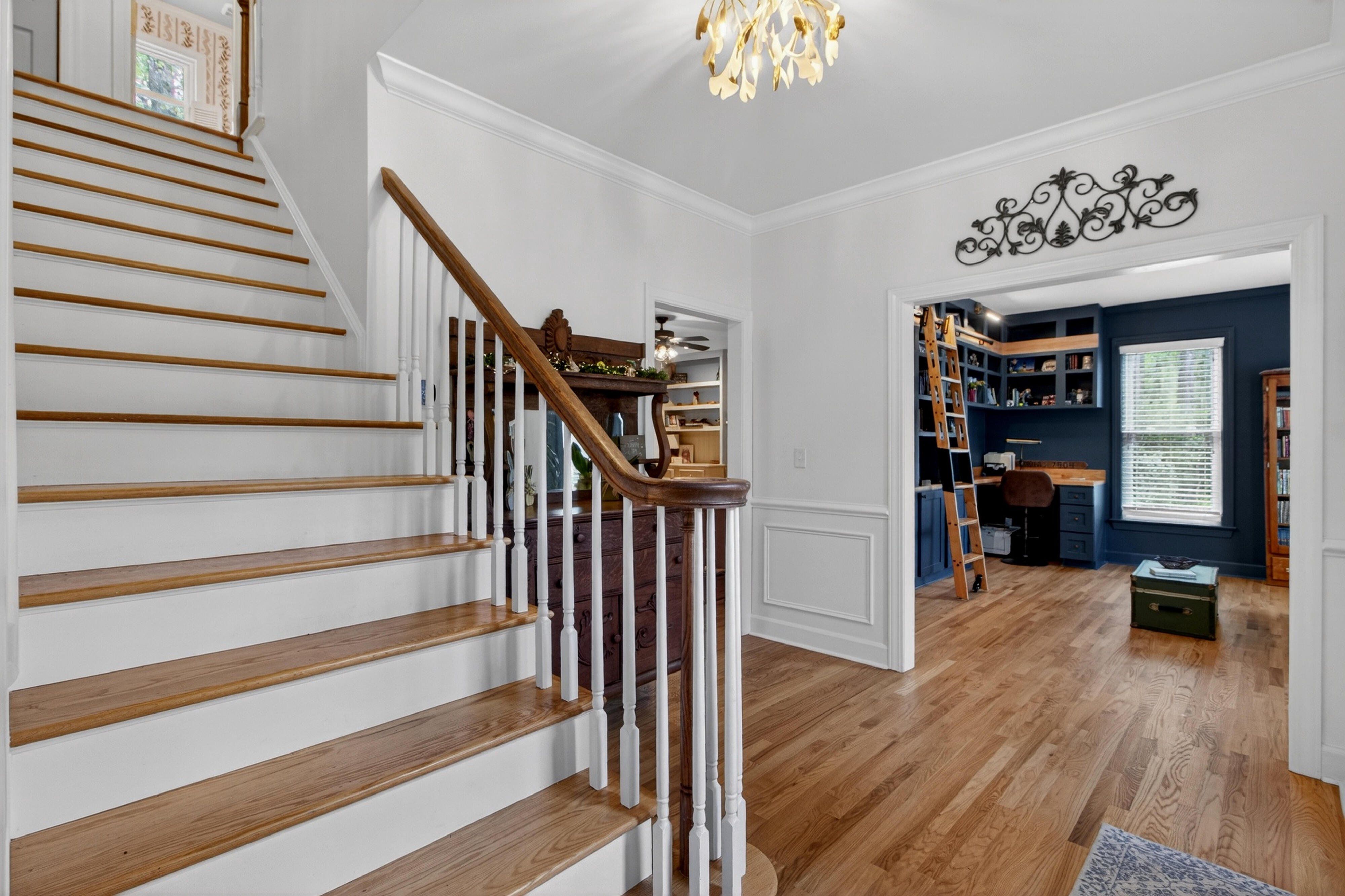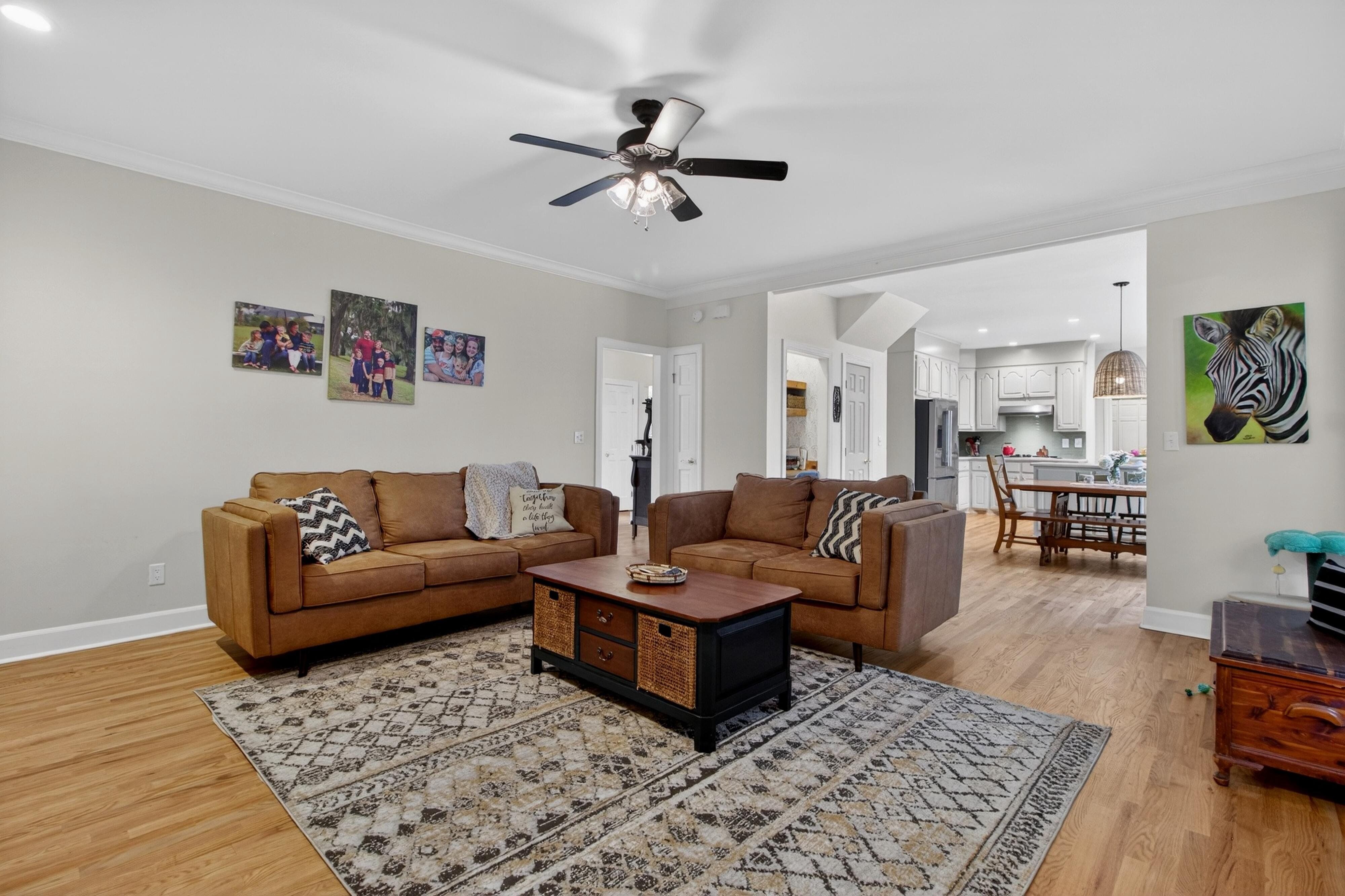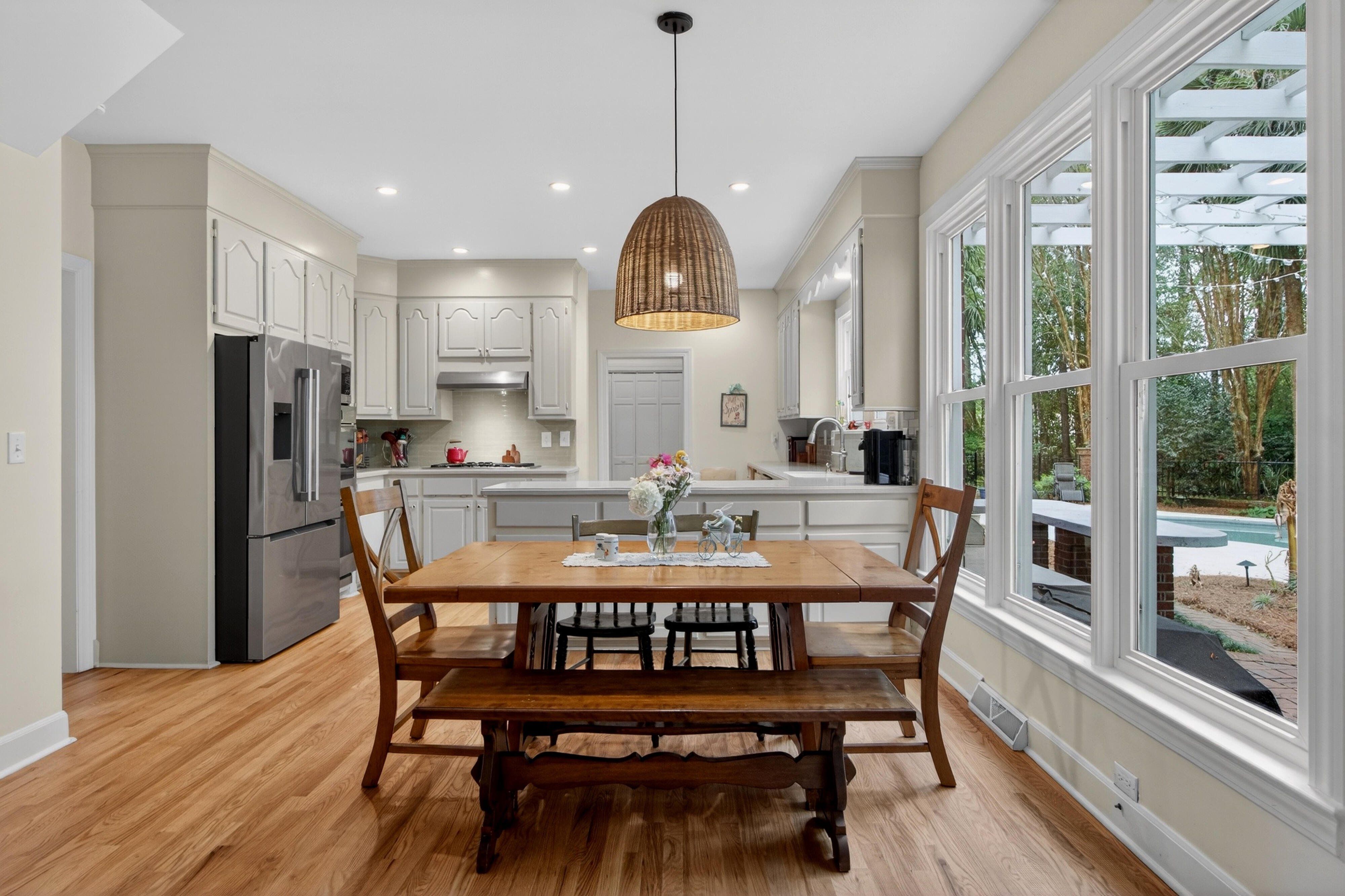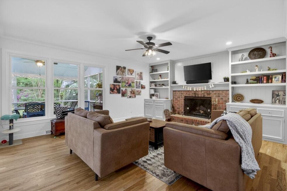Down the road from downtown Summerville lies the quiet, established neighborhood of the country's first Tea Farm, where sprawling yards & no HOA make this one of the most desirable communities in the Lowcountry. This 2-story brick colonial boasts 5 bedrooms, 2.5 baths & a brand new custom-built library. Enjoy your beautiful eat-in kitchen with double ovens & stainless appliances. Oversized windows look out over your private backyard oasis, with a newly-resurfaced saltwater pool surrounded by palms, myrtles, azaleas & fig trees, an outdoor kitchen, & screened-in porch. The primary suite has a tray ceiling, walk-in closet & jetted tub. 3 more spacious bedrooms complete the upper level. The FROG flexes as a 5th bedroom, playroom, etc. Hardwood floors & crown molding add elegance throughout.