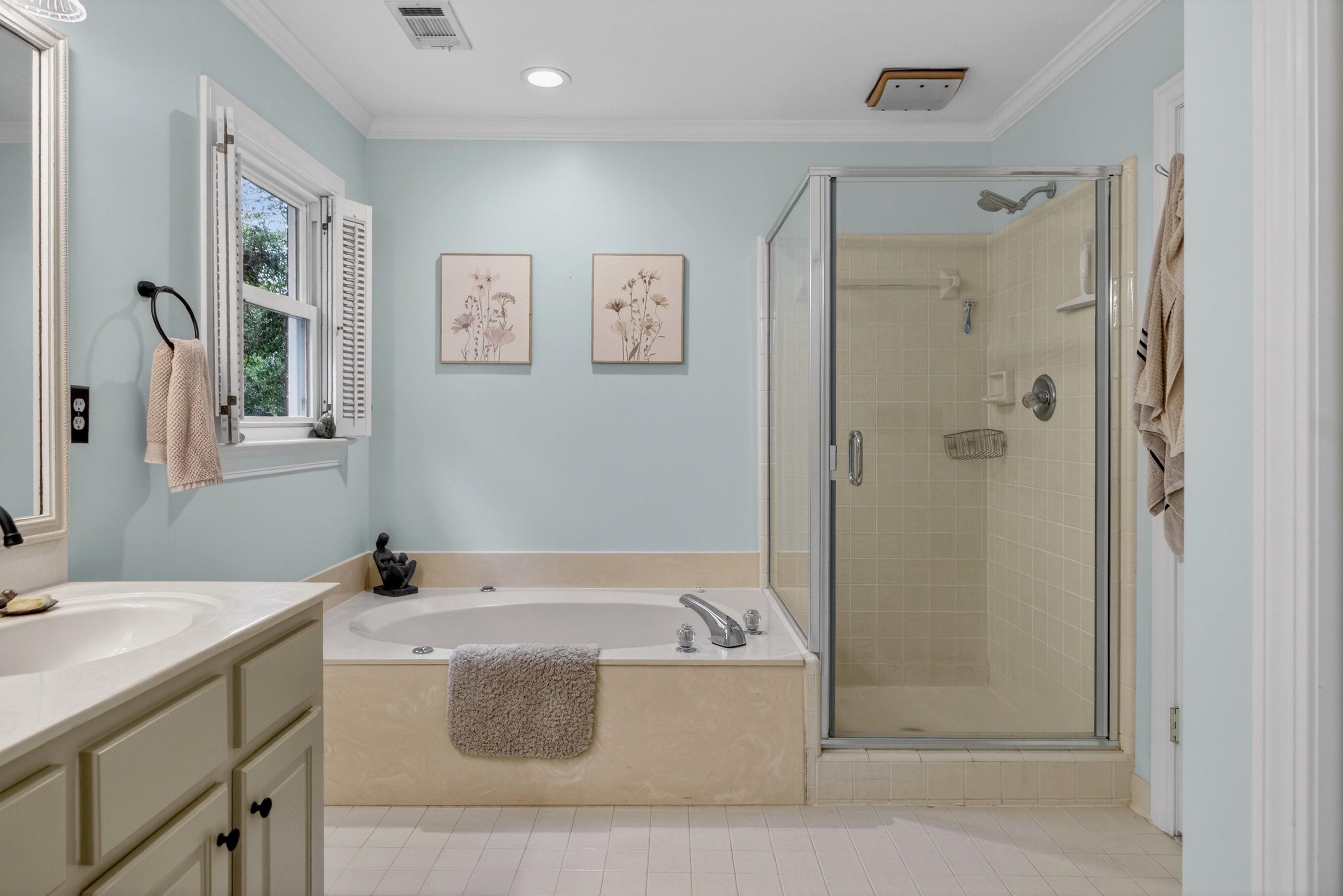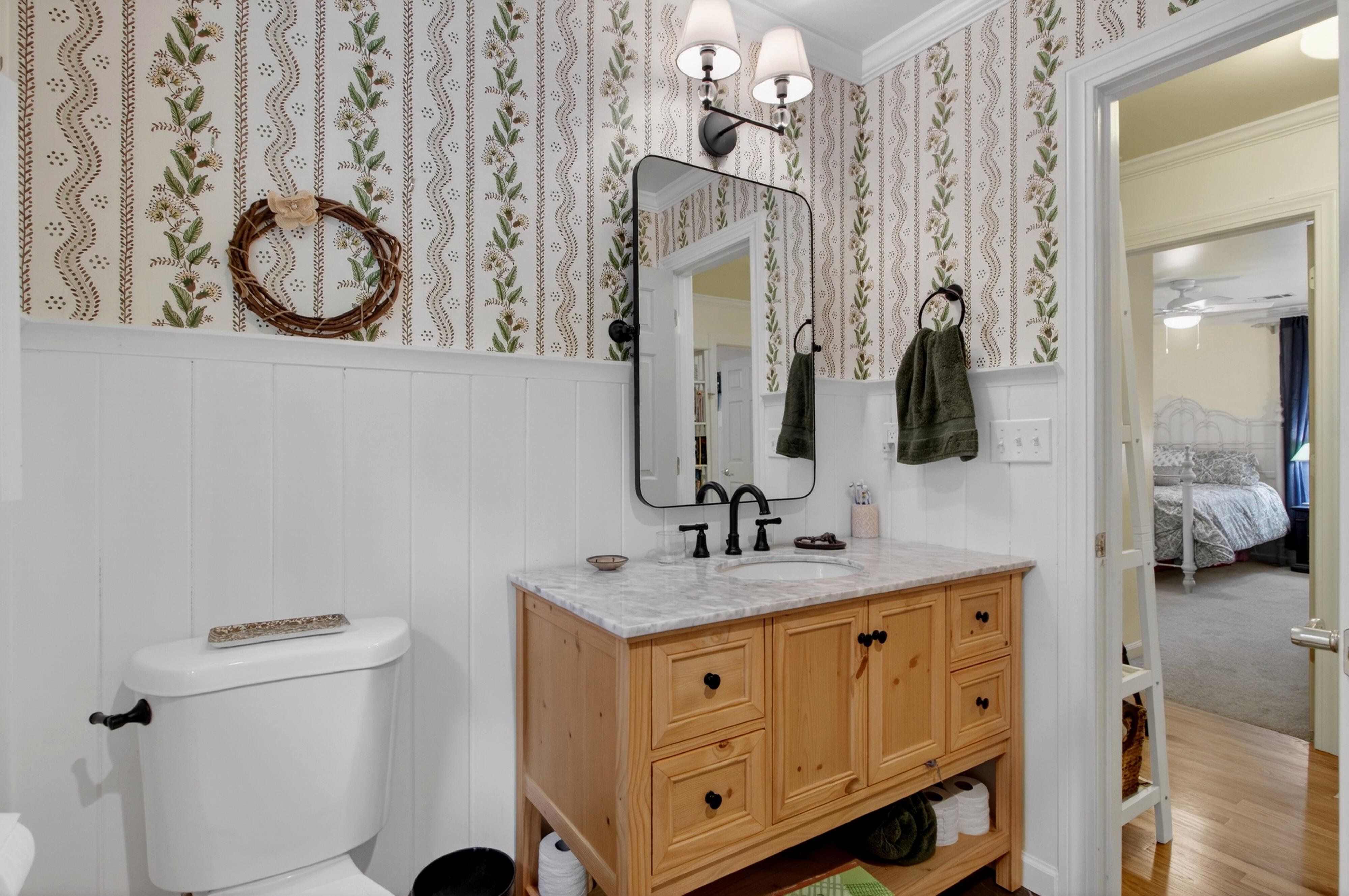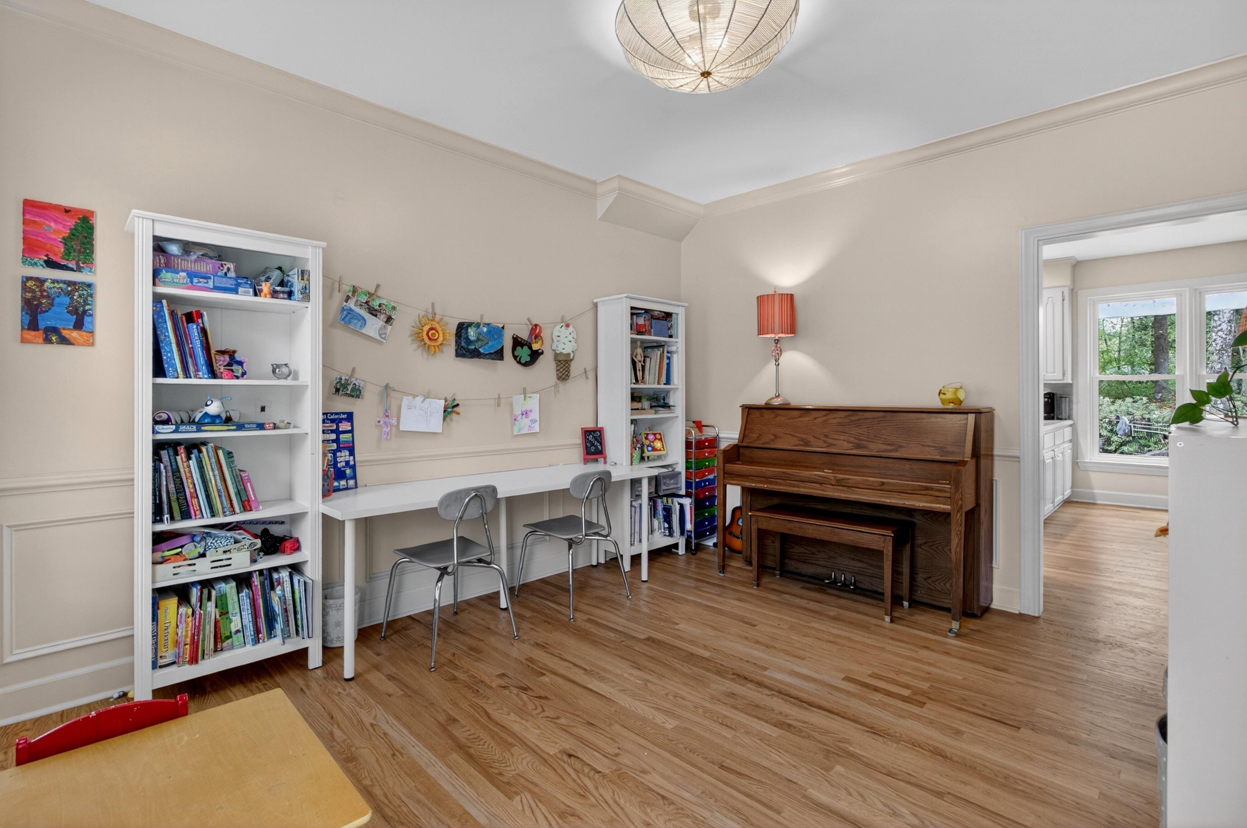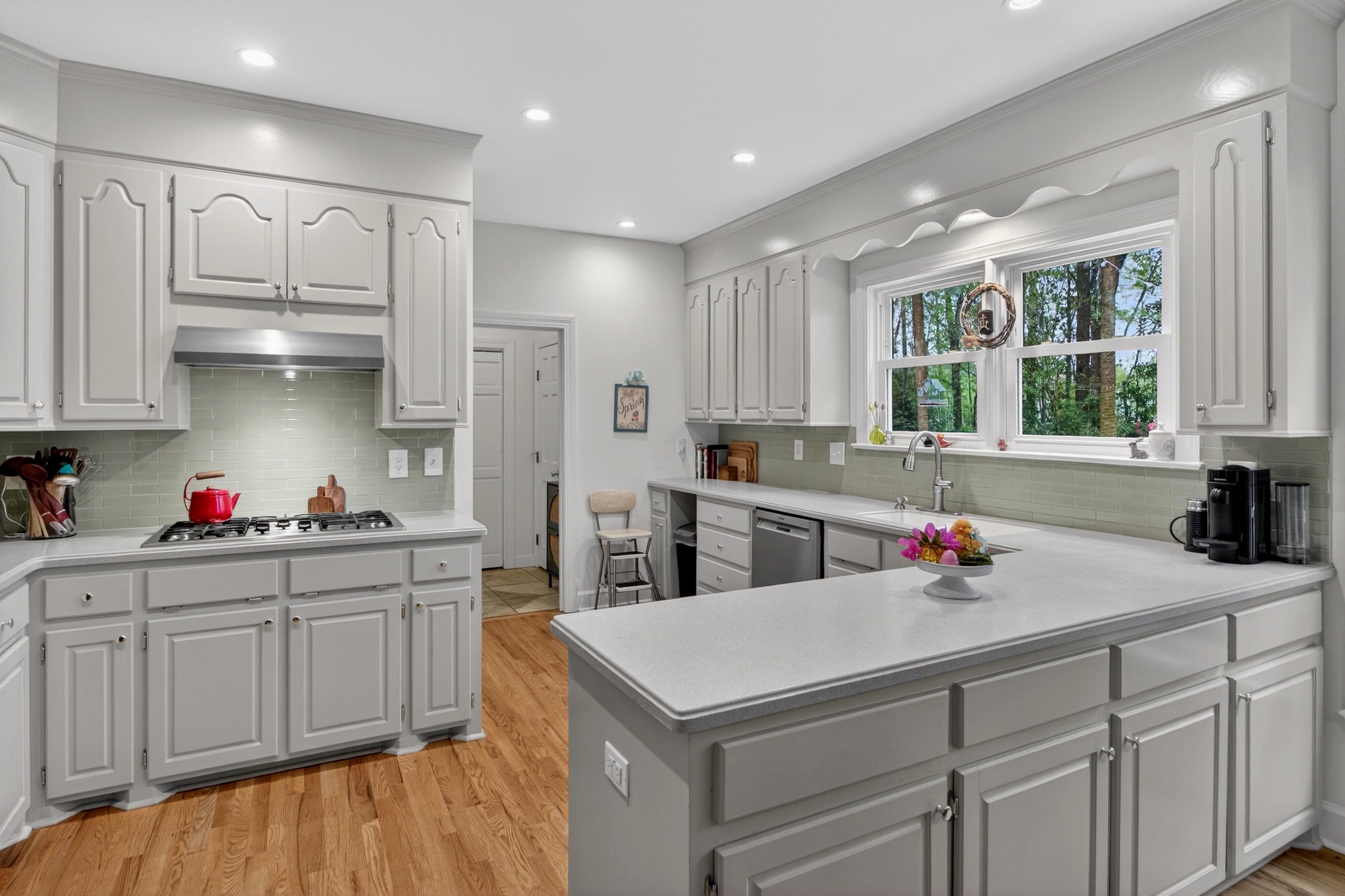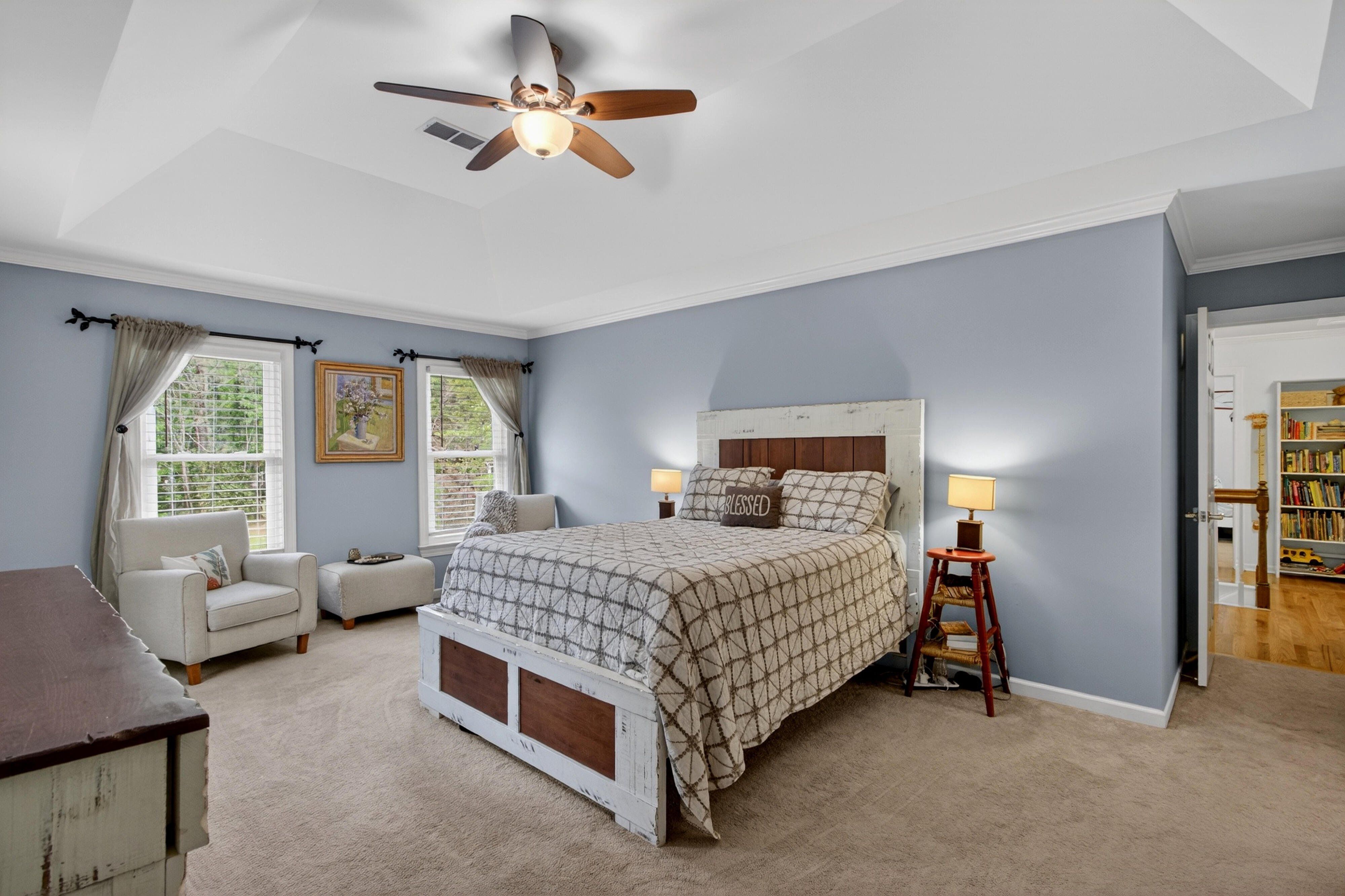 Down the road from downtown Summerville lies the quiet, established neighborhood of the country's first Tea Farm, where sprawling yards & no HOA make this one of the most desirable communities in the Lowcountry. This 2-story brick colonial boasts 5 bedrooms, 2.5 baths & a brand new custom-built library. Enjoy your beautiful eat-in kitchen with double ovens & stainless appliances. Oversized windows look out over your private backyard oasis, with a newly-resurfaced saltwater pool surrounded by palms, myrtles, azaleas & fig trees, an outdoor kitchen, & screened-in porch. The primary suite has a tray ceiling, walk-in closet & jetted tub. 3 more spacious bedrooms complete the upper level. The FROG flexes as a 5th bedroom, playroom, etc. Hardwood floors & crown molding add elegance throughout.