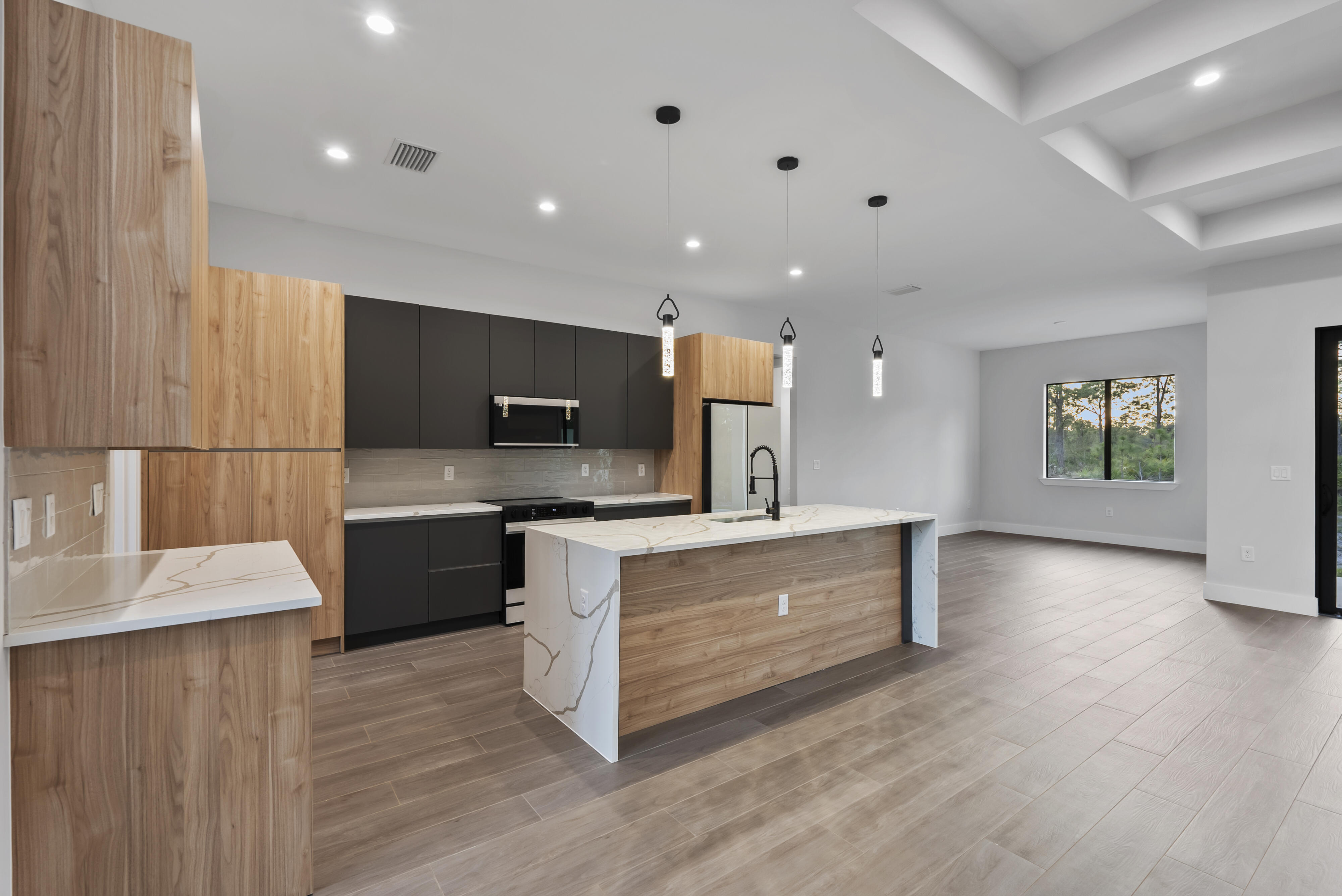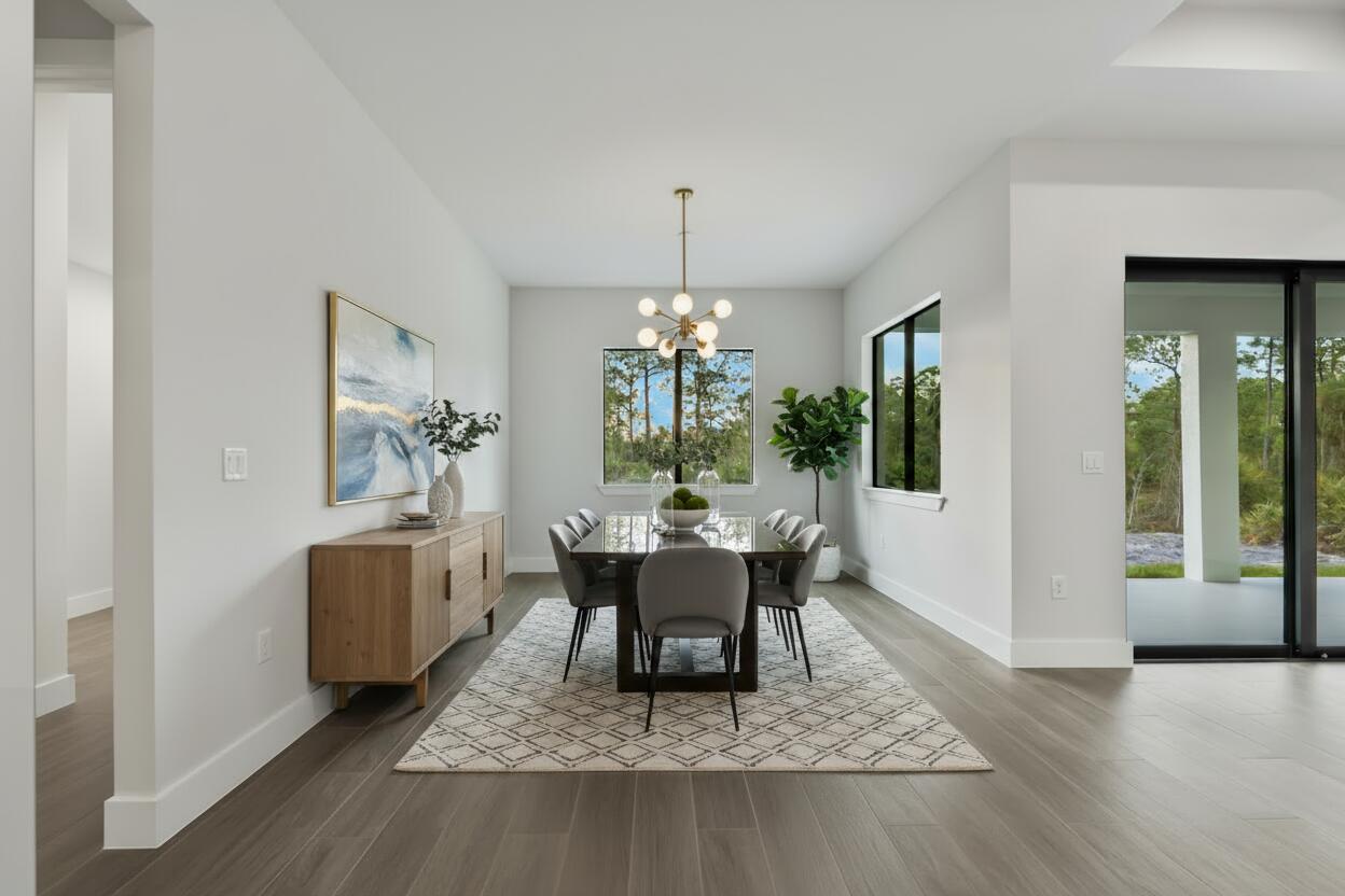 *** Move in Ready – 100% Upland Lot *** Welcome to this charming modern new residence, no restrictions, just peace of mind. This thoughtfully designed home with 3 spacious bedrooms, a private office, and 2 full bathrooms, combining comfort, elegance, and functionality. The open-concept floor plan is filled with abundant natural light, creating a warm and inviting atmosphere throughout the home. At the heart of the home is a custom-designed kitchen featuring premium appliances and a striking quartz waterfall island, seamlessly connected to the dining and living areas — great for entertaining and everyday living. The entire home is finished with upgraded tile flooring, delivering a sleek, modern look with easy maintenance. Step outside to your lanai, relax or host gatherings. This home also includes impact-resistant windows and doors, gutters, sprinkler system, 6-inch baseboards, upgraded tile selections, and countless additional upgrades — truly too many to list. This exceptional property blends style, durability, and modern design, making it a standout choice for today’s buyer. Photos are from a previously completed home by the same builder and similar finishes.