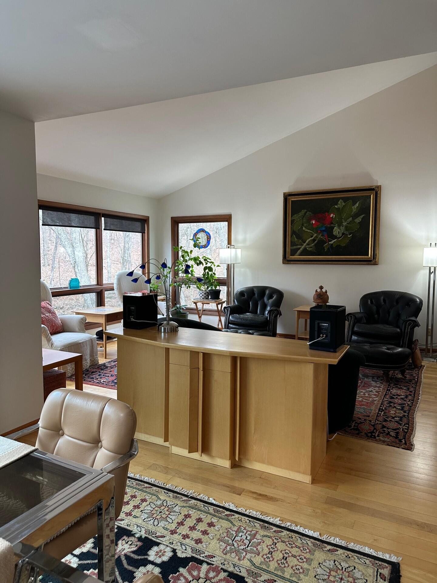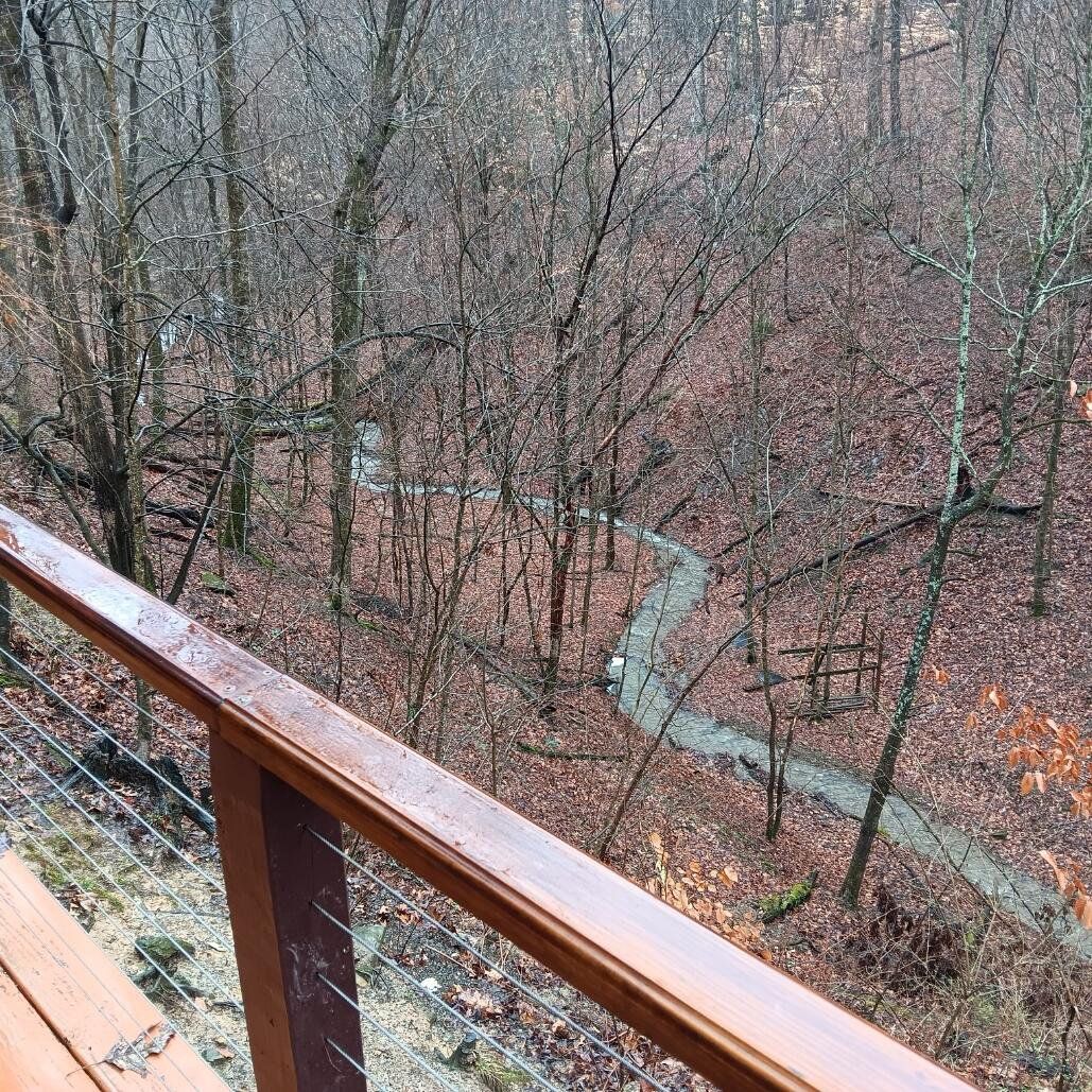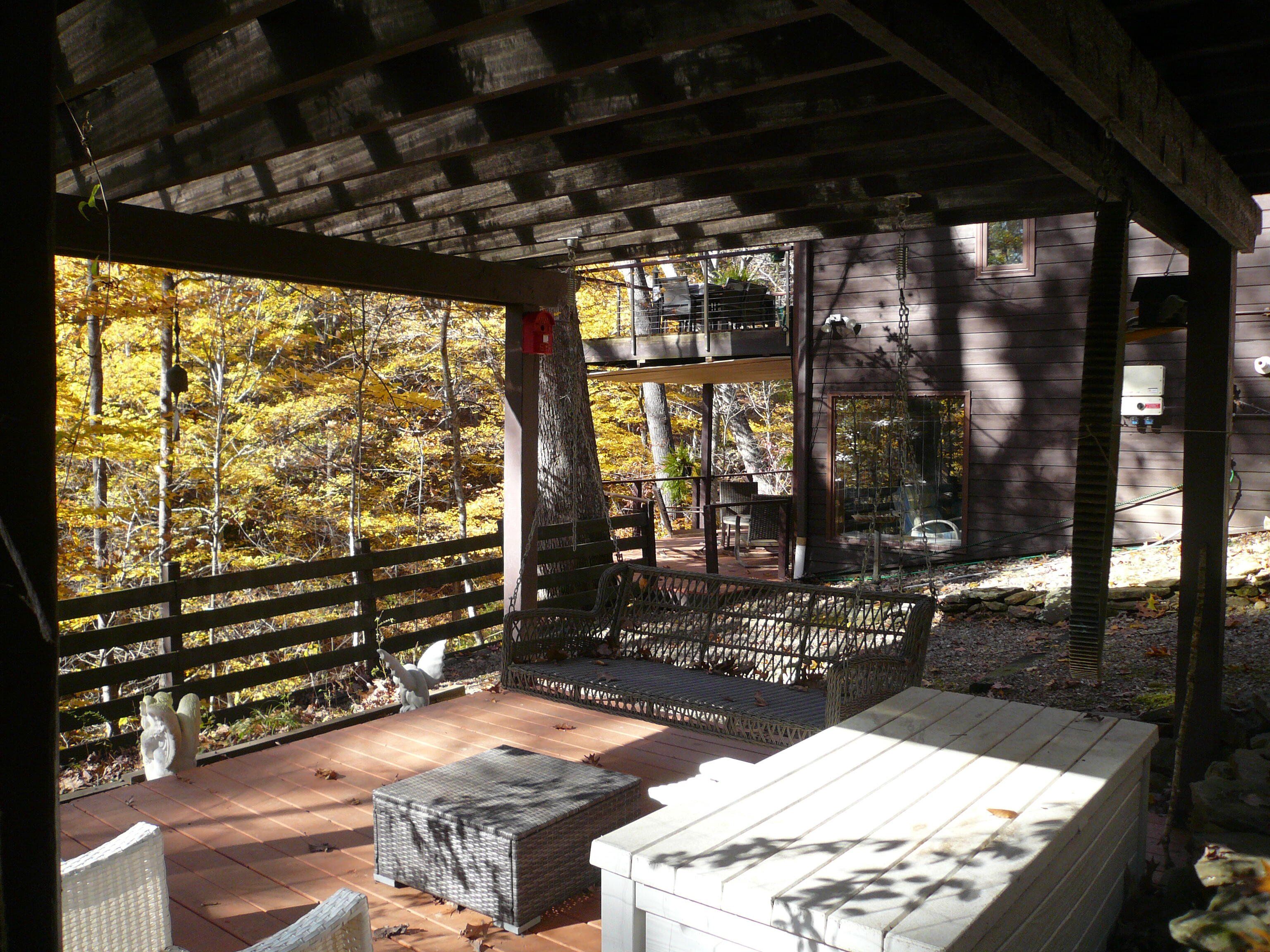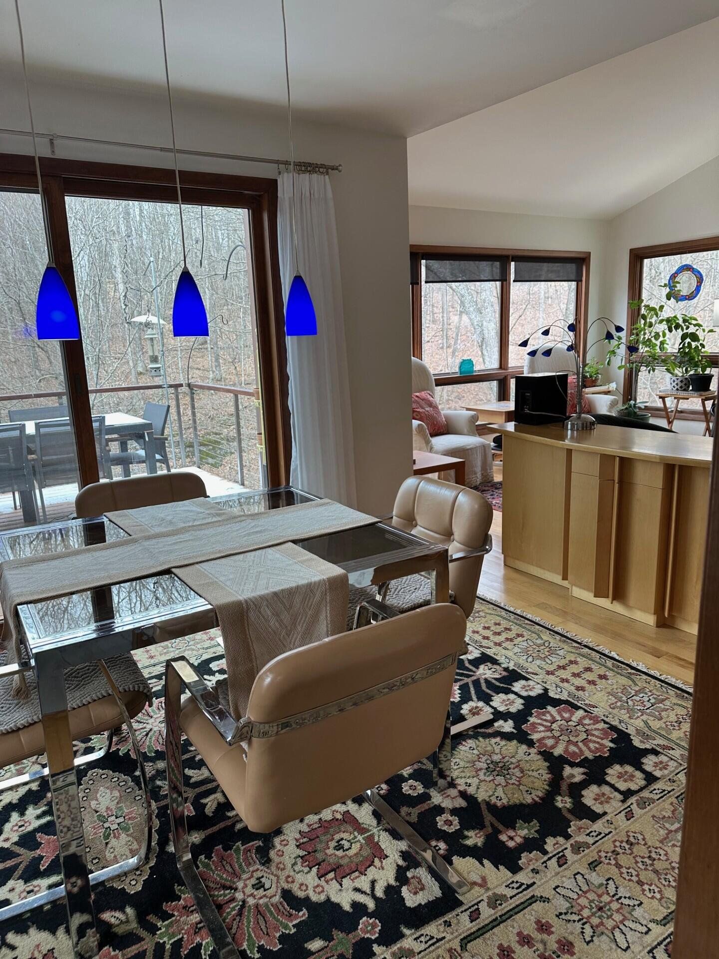This jewel-like Mid-Century Modern on serene and scenic 1.32 acre wooded wonderland is both quiet and dramatic, yet only 7 or 8 minutes from campus, College Mall, or I.U Hospital. Only 3 miles to University Elementary, Tri-North Middle School, or Bloomington H.S. North. Huge windows look into the woods and ravine with stream below, decks on 3 levels to enjoy leisurely dining or drinks, sweeping vaulted ceilings. Designed by prominent architect Duane Odle, built by John Ingram, the home is rated highly energy efficient by Duke Energy, featuring tankless water heater, new ultra-high efficiency dual-fuel furnace and 19SEER heat pump, solar roof panels, Generac whole-house generator. All new high-end kitchen and laundry appliances. Hardwood flooring and tile throughout. Newer roof and a pylon foundation anchored to bedrock. Low Monroe County taxes. The inventory of unique and personal, architect-designed homes is small and prized--make it yours!