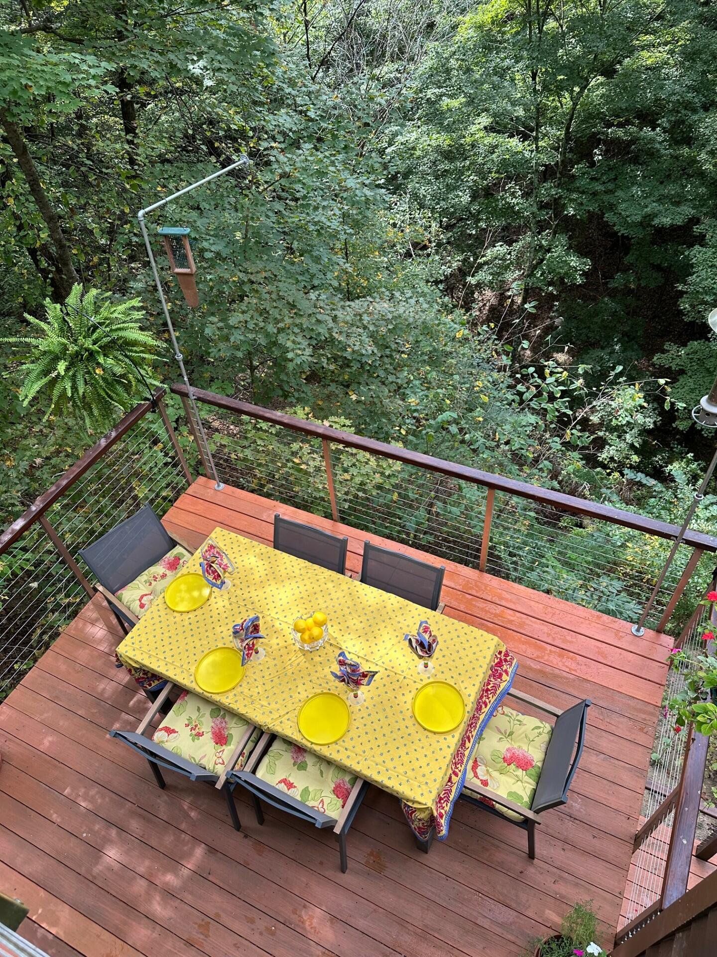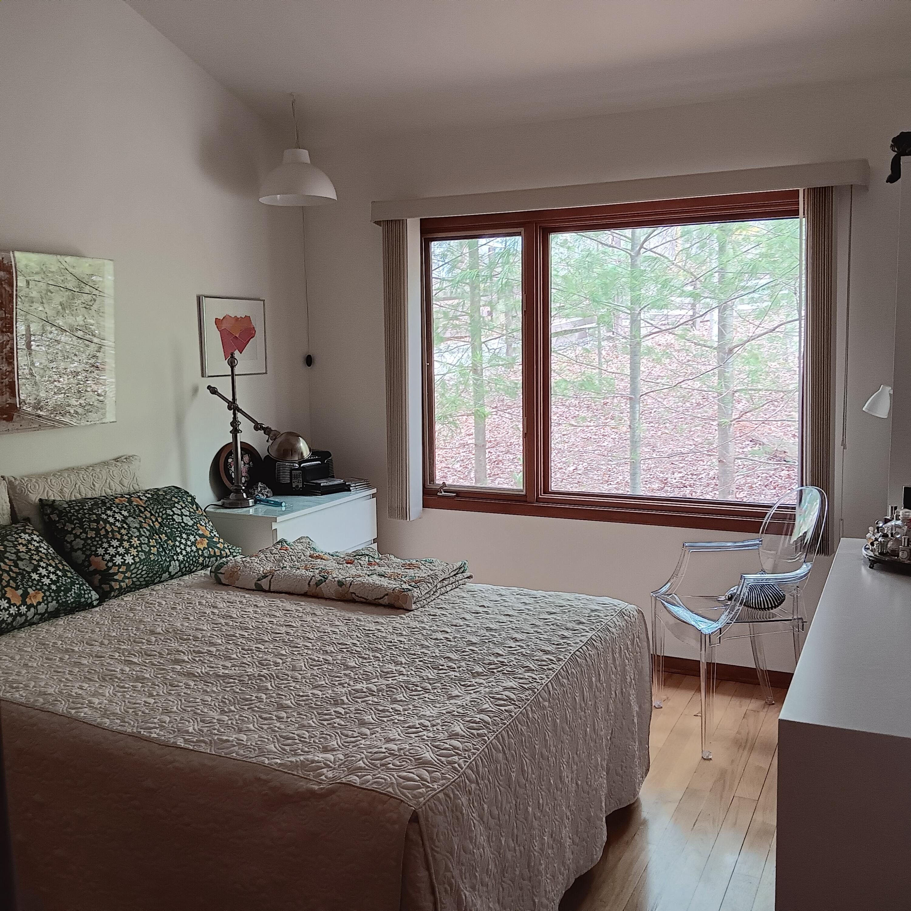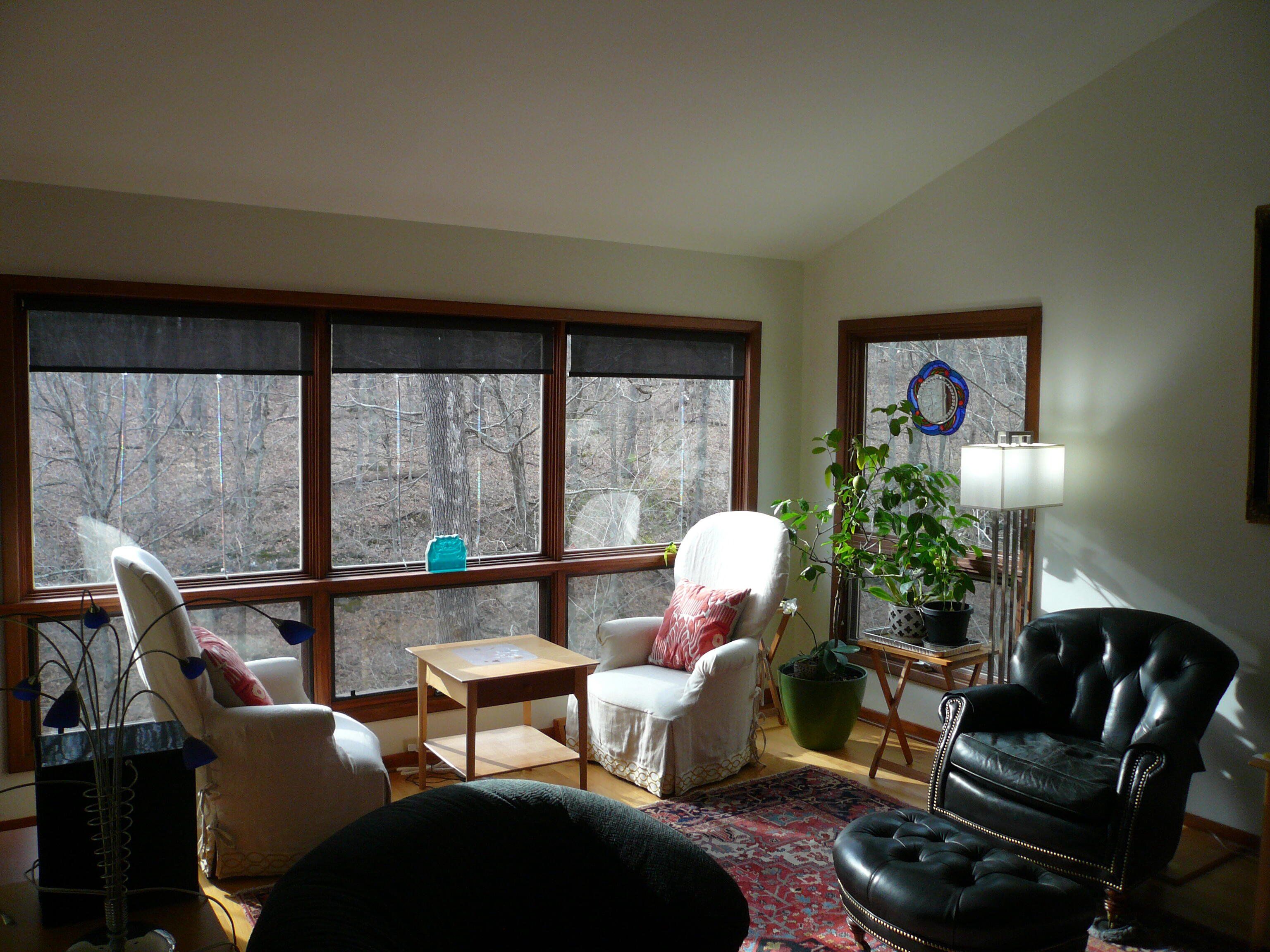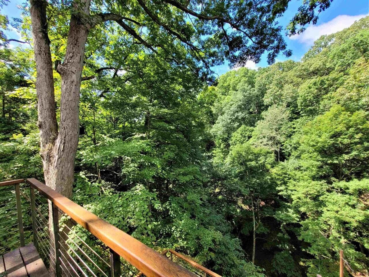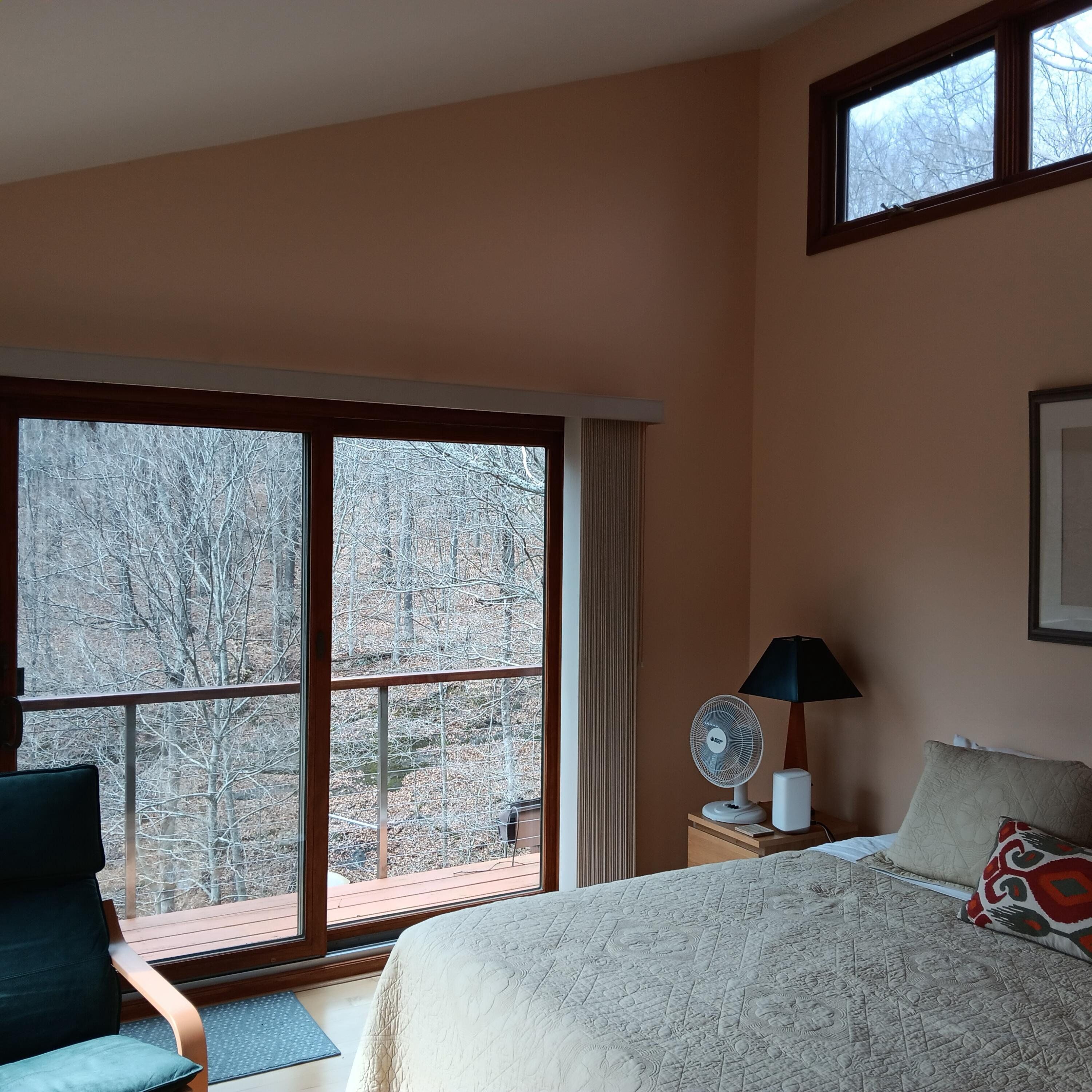 This jewel-like Mid-Century Modern on serene and scenic 1.32 acre wooded wonderland is both quiet and dramatic, yet only 7 or 8 minutes from campus, College Mall, or I.U Hospital. Only 3 miles to University Elementary, Tri-North Middle School, or Bloomington H.S. North. Huge windows look into the woods and ravine with stream below, decks on 3 levels to enjoy leisurely dining or drinks, sweeping vaulted ceilings. Designed by prominent architect Duane Odle, built by John Ingram, the home is rated highly energy efficient by Duke Energy, featuring tankless water heater, new ultra-high efficiency dual-fuel furnace and 19SEER heat pump, solar roof panels, Generac whole-house generator. All new high-end kitchen and laundry appliances. Hardwood flooring and tile throughout. Newer roof and a pylon foundation anchored to bedrock. Low Monroe County taxes. The inventory of unique and personal, architect-designed homes is small and prized--make it yours!