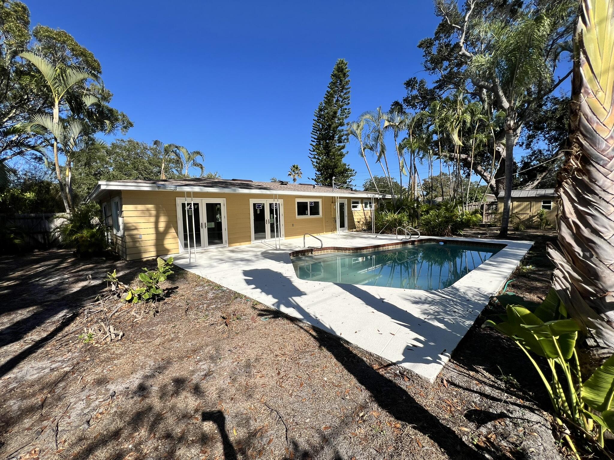FULLY RENOVATED Sarasota Gem with Pool! -- All-New Systems Including New Plumbing & Electrical -- New Windows & Doors -- New Flooring -- On Demand Hot Water Heater --Walking Distance to Pinecraft Amish Community & The Legacy Trail -- Minutes to Downtown Sarasota, St. Armands Circle, and World-Class Beaches This beautifully updated 3 bedroom, 2 bathroom pool home blends modern style with everyday comfort. Featuring new LVP flooring, brand-new Craftsman style cabinetry throughout, quartz countertops, new appliances, and all-new windows and doors, this home has been completely renovated inside and out. Major system upgrades include new plumbing (supply and waste lines), a fully updated electrical system, On-Demand Hot Water Heater, and a new motor in the pool pump, providing confidence and efficiency. The bright, open floor plan flows seamlessly between living, dining, and kitchen spaces. The well-appointed kitchen has abundant cabinetry and counter space, highlighted by a large built-in island and quartz countertops throughout. The primary bath features a stylish walk-in shower, and both bathrooms have new tile and updated vanities. An additional flex room provides generous space and versatility and can be used as a family room, home office, or private retreat. Step outside to enjoy your fully fenced backyard with privacy fencing, along with your in-ground pool. Highlights: 3 bedrooms, 2 bathrooms, plus a versatile flex room Laminate flooring throughout All-new impact windows and doors Fully renovated kitchen with custom cabinetry and new appliances New plumbing system, including supply and waste lines New electrical system throughout Expansive open-concept layout with modern, upscale finishes Private fenced backyard for entertaining In-ground pool Sought-after Sarasota location close to beaches, shopping, and dining