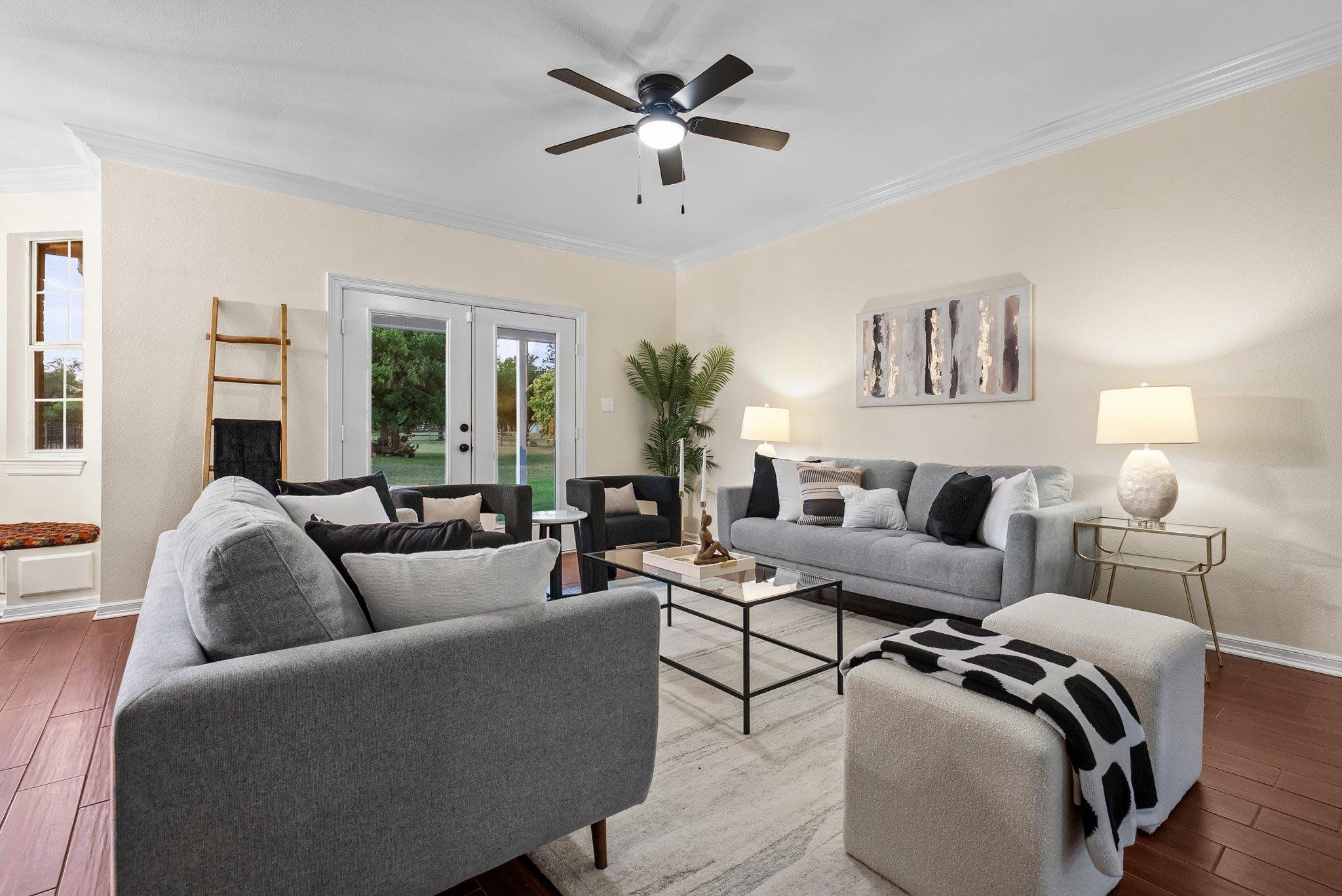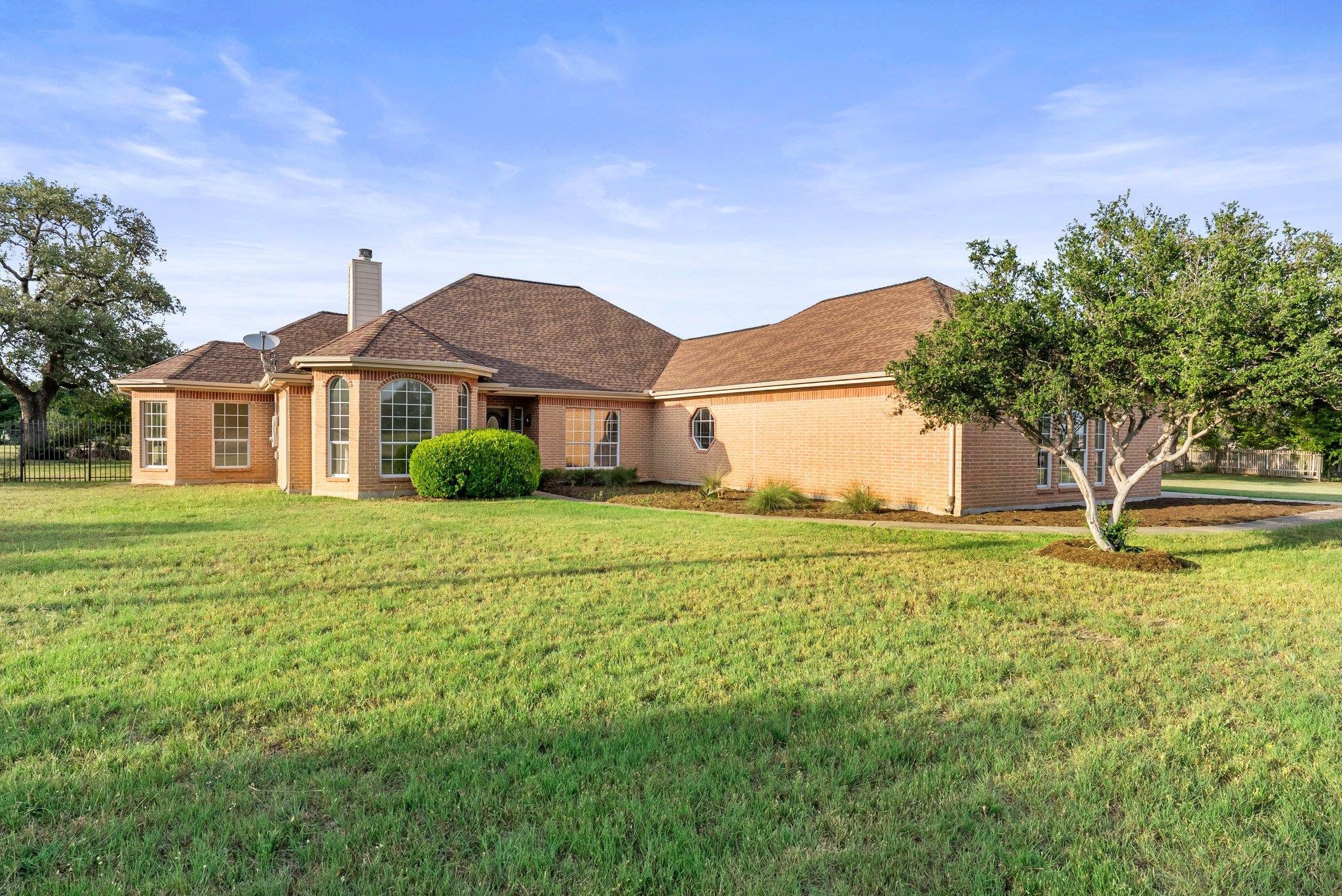 Welcome to 320 Woodland Oaks Trail, a beautifully maintained single-story home nestled on over two acres in the peaceful Oak Forest community of Buda. This 3-bedroom, 2-bathroom residence offers 2,623 square feet of inviting living space. Inside, you’ll find an open-concept layout with a cozy fireplace, hardwood flooring, and a spacious kitchen that looks out over the scenic backyard. The kitchen is the heart of the home, with ample cabinetry and a central island that flows seamlessly into the living and dining areas. The flexible game room, complete with a wet bar, offers the perfect setting for gatherings or can easily be converted to a large 4th bedroom, while a separate flex room with a built-in desk provides the space for a home office or study nook. The primary suite is a true retreat, featuring an expansive walk-in closet, its own fireplace, and a private bathroom with a dual vanity, soaking tub, and walk-in shower. Step outside to enjoy the tranquil surroundings—mature trees provide shade and privacy, while the fenced-in pool and brick fire pit create a perfect outdoor oasis for relaxing or entertaining guests. A covered patio adds year-round enjoyment to the outdoor space. Located just 10 minutes from Austin, this home offers the ideal blend of country living and city convenience. Don’t miss the opportunity to make this one-of-a-kind property your forever home. Schedule a showing today!