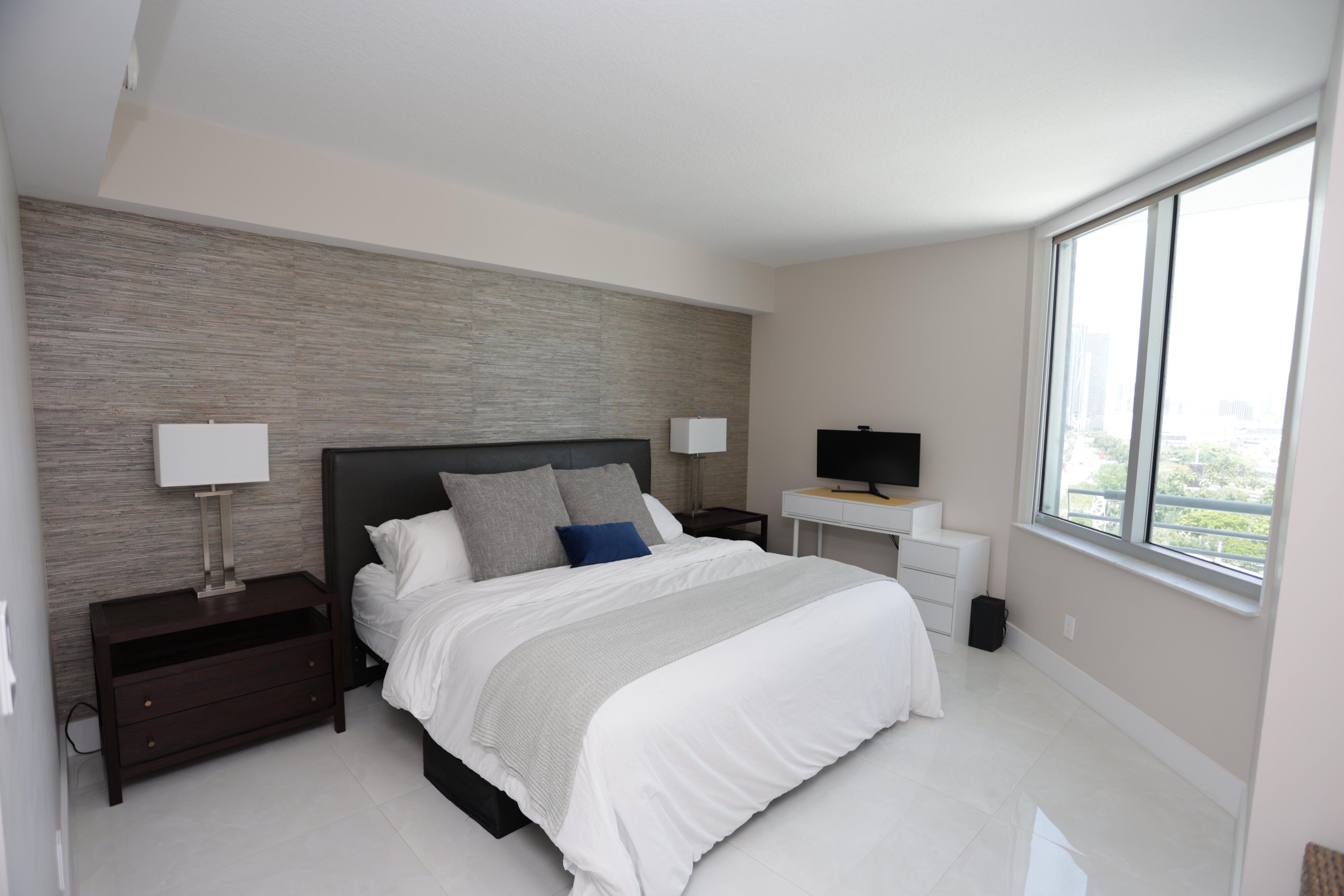 Beautifully remodeled 2BD/2BA condo on the 18th floor of One Miami with stunning views of Biscayne Bay, Bayfront Park, and the city skyline. Features include quartz countertops, updated cabinetry, stainless steel appliances, motorized blackout shades, porcelanato flooring, renovated balcony, and upgraded primary bath and closet. Recent building updates include completed special assessment (2023), pool renovations, upgraded elevator system, and new biometric security. Amenities: two pools (lap + recreational), cardio room, weight room, and two party rooms. Includes in-unit laundry, assigned parking, and valet available.