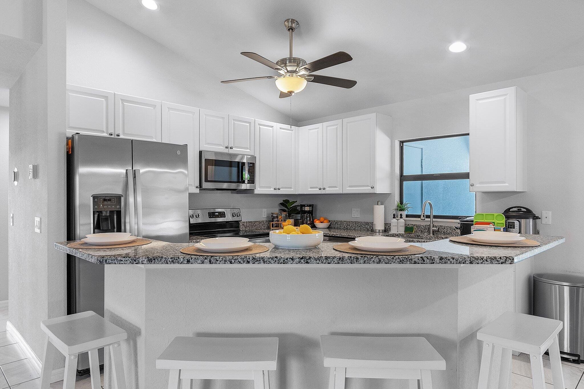 Come and see this Beautiful 4 bedroom 2 bathroom home with a heated saltwater pool and spa on a large canal in the heart of Cape Coral, being offered Turnkey! This home boasts an open floor plan and high ceilings creating a bright and light-filled ambience throughout the main living area. The contemporary and functional kitchen is perfect for entertaining with modern granite counter tops and ample seating space for everyone to gather. The spacious master bedroom features two large walk in closets, a private bathroom with a walk in shower, double vanity sinks with lots of storage and large mirror, linen closet, and private water closet. This master suite also has a sliding glass door leading out to the patio and swimming pool under the large lanai enclosure overlooking the serene canal. From the pool area you will enjoy amazing Florida sunsets thanks to the west-facing sun exposure! Also, attached to the home is a large 3 car garage. This home is located in a safe and quiet neighborhood that is also close to local attractions, restaurants, and the beach. Search no more, your beautiful forever home is right here!