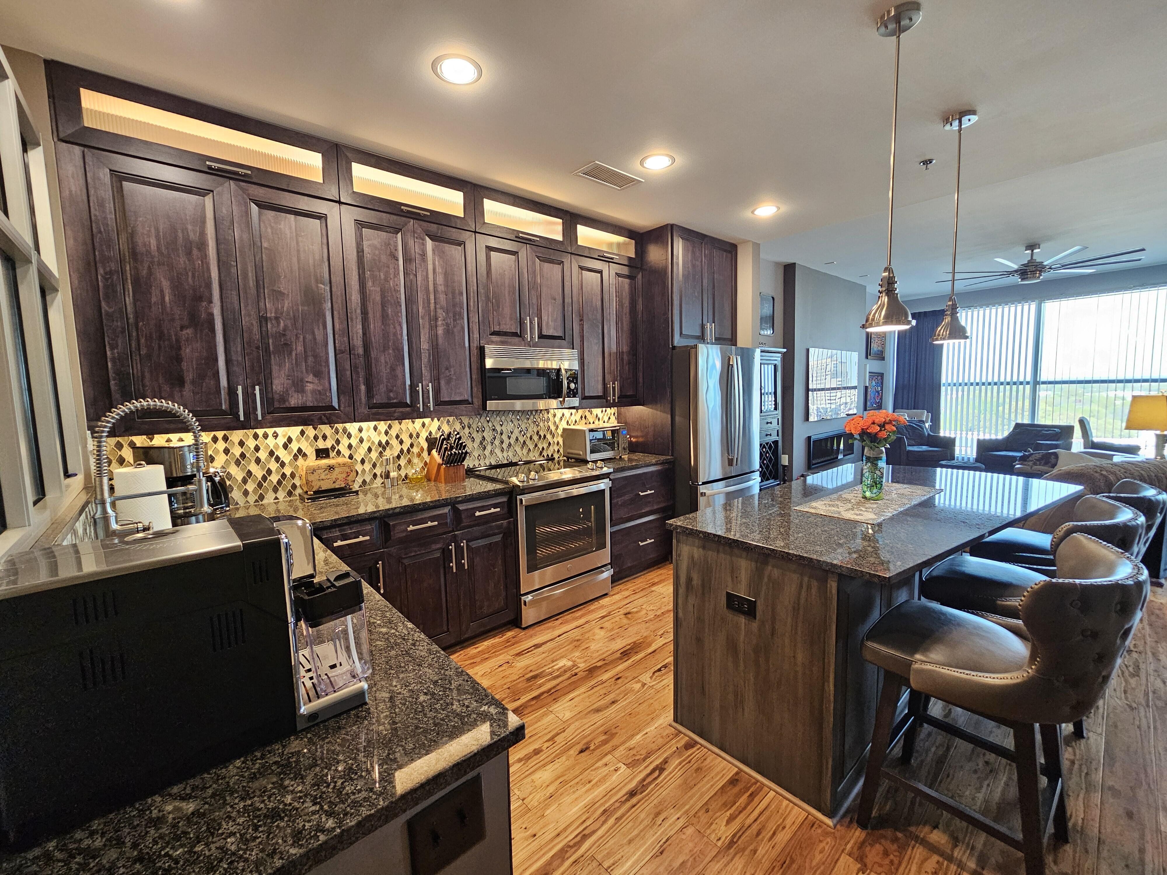 THE TRADEMARK @ 333 W. Trade Street isn’t just an address: it’s a LIFESTYLE. In the heart of Uptown Charlotte, the iconic Trademark is steps from all the City has waiting! Enter UNIT #1202: This classy 2BR/2BA overlooks Uptown and Trade Street! Well appointed kitchen w/granite, custom cabinets, large island & glass backsplash. SS oven/fridge/DW new in ‘23. Eucalyptus wood floor combines beauty w/durability in main living area. MBR w/ interior windows for a modern feel, bath w/step in shower, framed mirror and walk-in closet. 2nd BR has en-suite with shower/tub combo, framed mirror. Sleek ELECTRIC FIREPLACE for those chilly evenings or ambiance when you want it! Dining rm highlighted w/crystal chandelier. HVAC ‘25, water heater ‘24. Resort amenities: rooftop pool/sun deck with Charlotte skyline views, gas grills, clubhouse/ex room, gated parking. Amazon hub, EV stations, steps from BofA, Truist Field, light rail and fantastic dining!