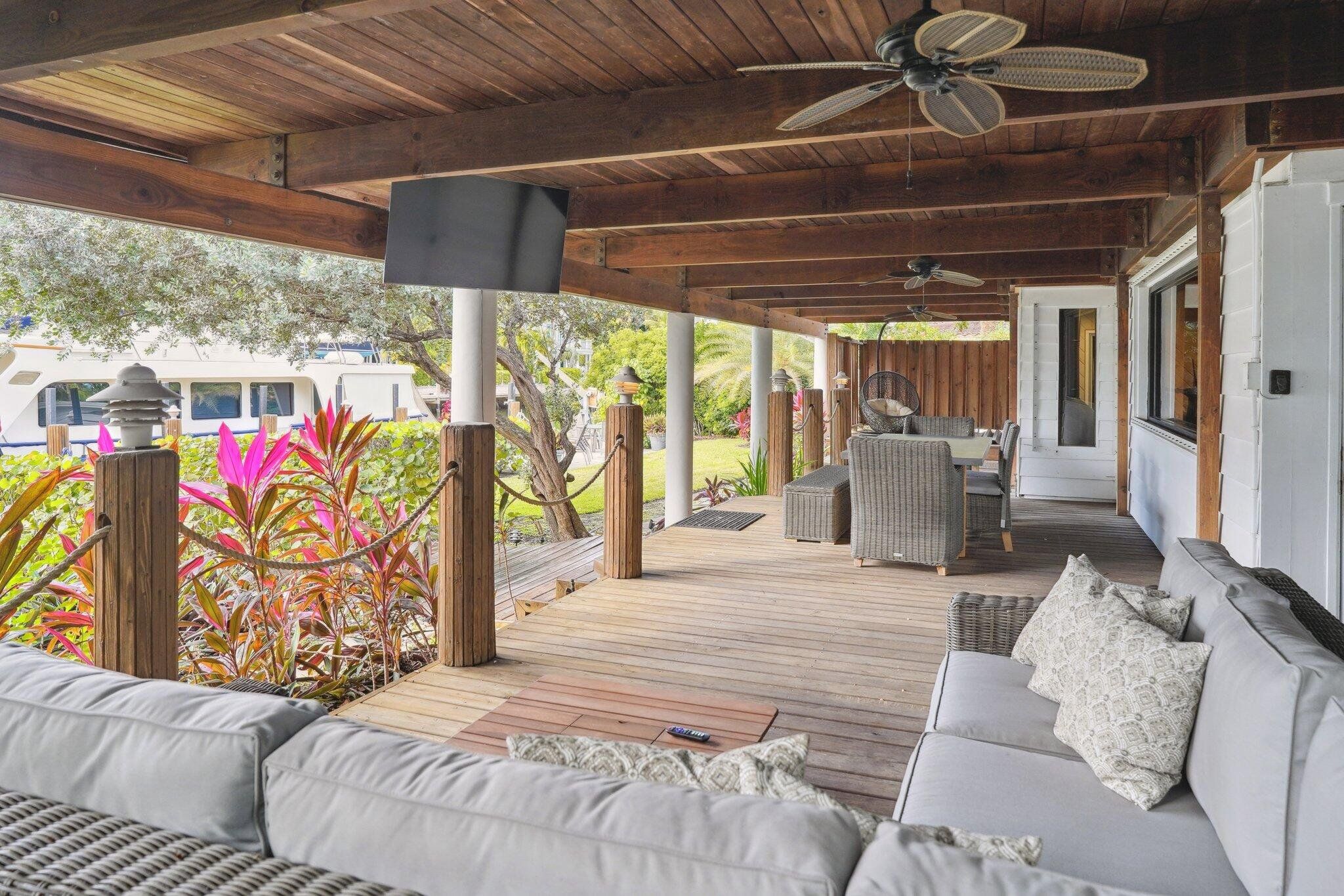Live in this renovated waterfront home in heart of the coveted Los Olas Isles. Dock your yacht on the 100ft deep water dock in a quiet hurricane hole. Open access direct to ocean - no fixed bridges. Classically renovated and a stunning outdoor covered living room with TV. Preferred West facing back yard!! ***BUILDERS!!: you can build new mansion on this lot same as one across the street on exactly same sized lot asking $16,900,000!!!***