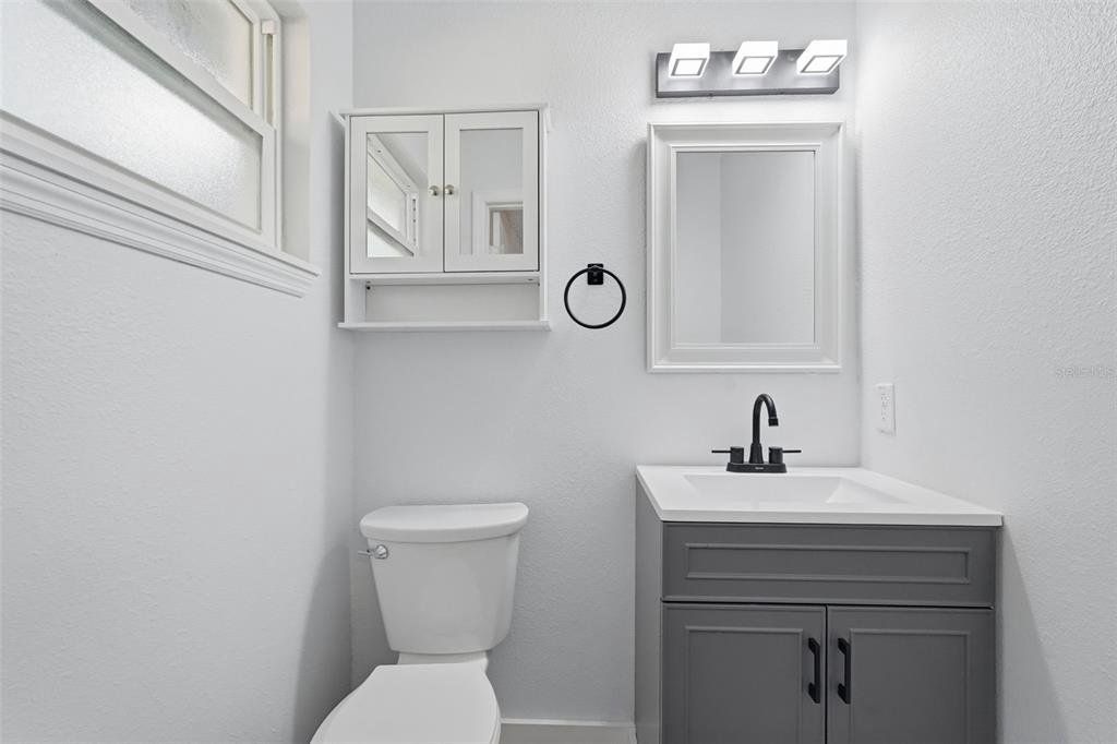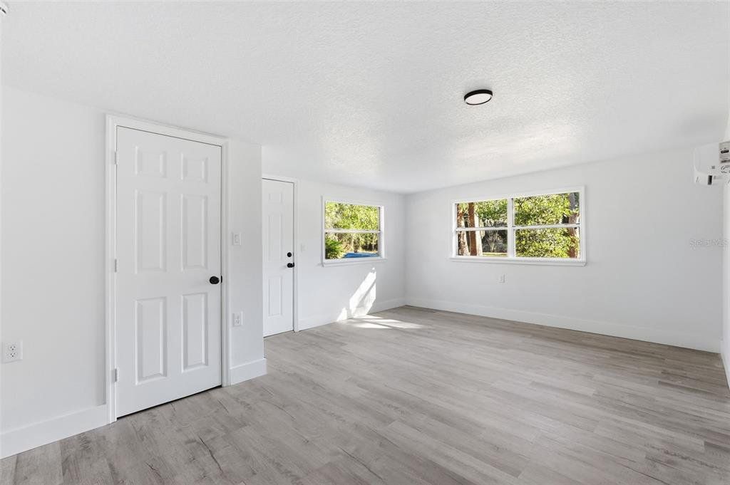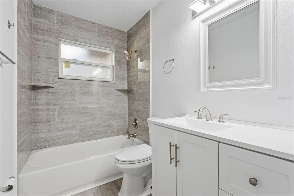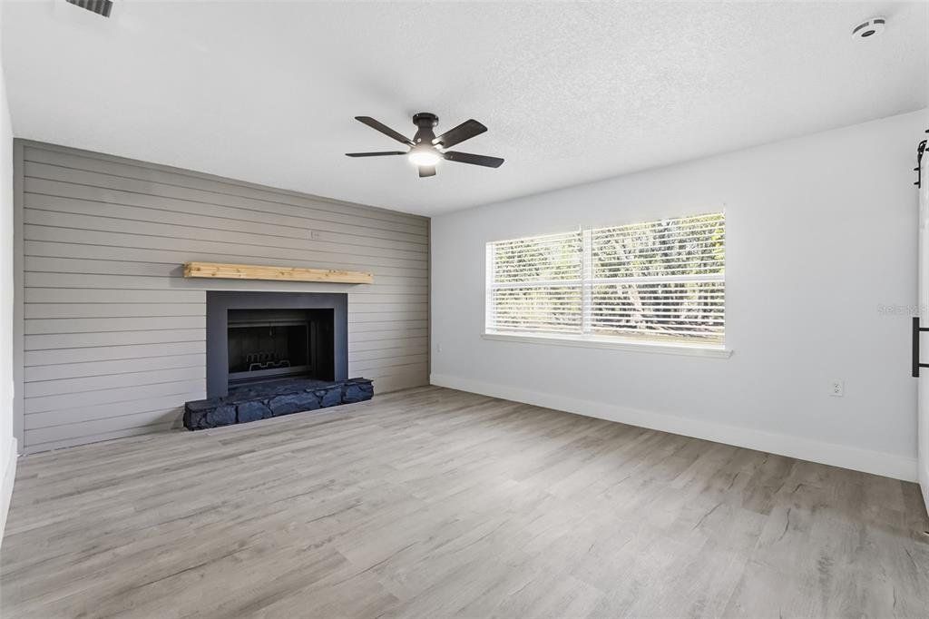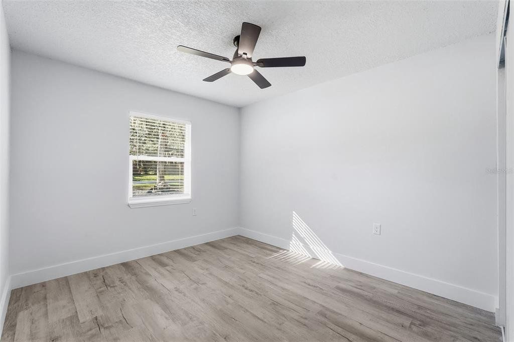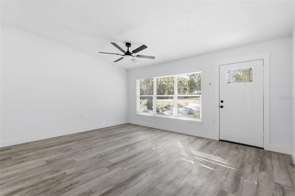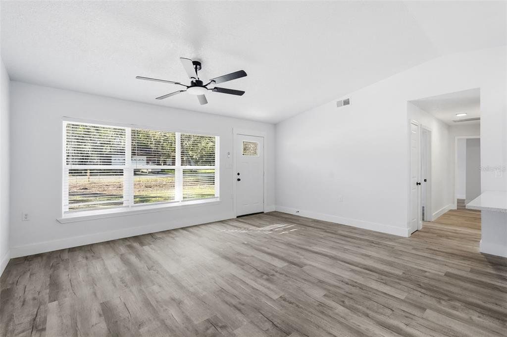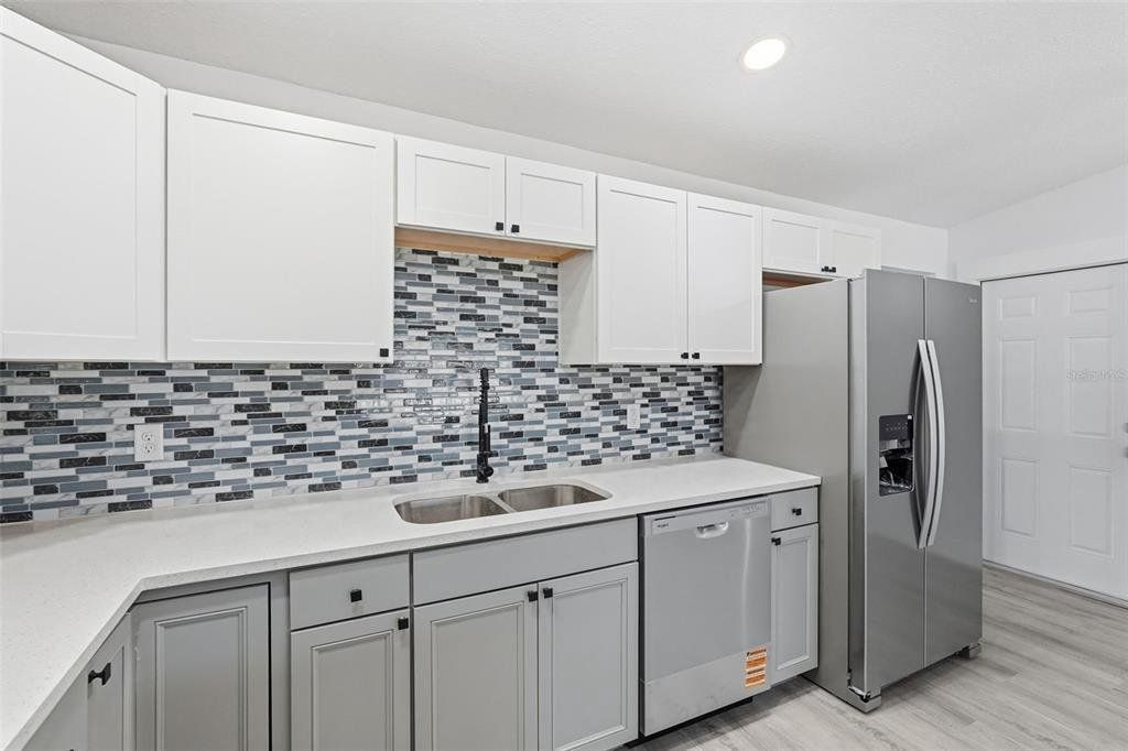One or more photo(s) has been virtually staged. Completely renovated from top to bottom inside and out, this home is truly move-in ready. Every detail has been refreshed, including modern flooring, fresh interior paint, updated lighting, and beautifully remodeled bathrooms. Open living spaces feel bright, clean, and contemporary, while the bedrooms offer both comfort and style. The fully updated kitchen features white upper cabinetry paired with contrasting gray lower cabinets, creating a crisp, modern look. A large center island with wood-accent detailing provides additional prep space, storage, and seating potential, all topped with sleek, light-colored countertops. The modern mosaic tile backsplash adds texture and visual interest, while stainless steel appliances include a side-by-side refrigerator, electric range, built-in microwave, and dishwasher. Recessed lighting and stylish pendant fixtures illuminate the space, and luxury vinyl plank flooring flows seamlessly into the surrounding living areas for a cohesive, open feel. The kitchen layout maximizes both counter space and storage, making it highly functional and visually appealing. Renovations were completed with intention, delivering a cohesive, like-new feel throughout the home. A clean, finished garage adds extra convenience and storage. Outside, the property sits on a generous lot surrounded by mature trees, offering privacy, shade, and plenty of room to enjoy the outdoors. The expansive yard provides space for entertaining, gardening, and boat or RV parking. This home offers the perfect balance of modern updates and outdoor freedom—truly turnkey, just bring your furniture and move right in.