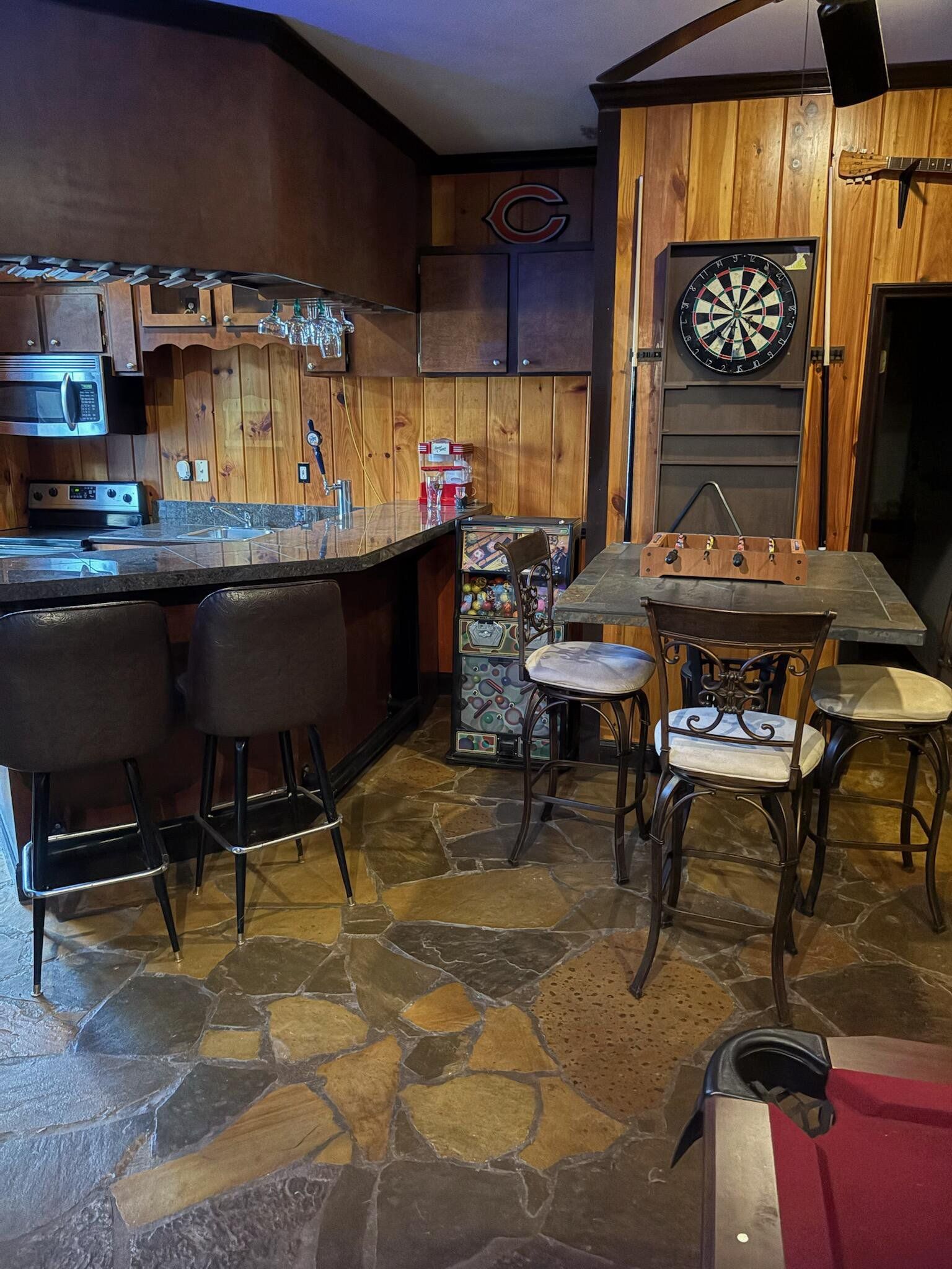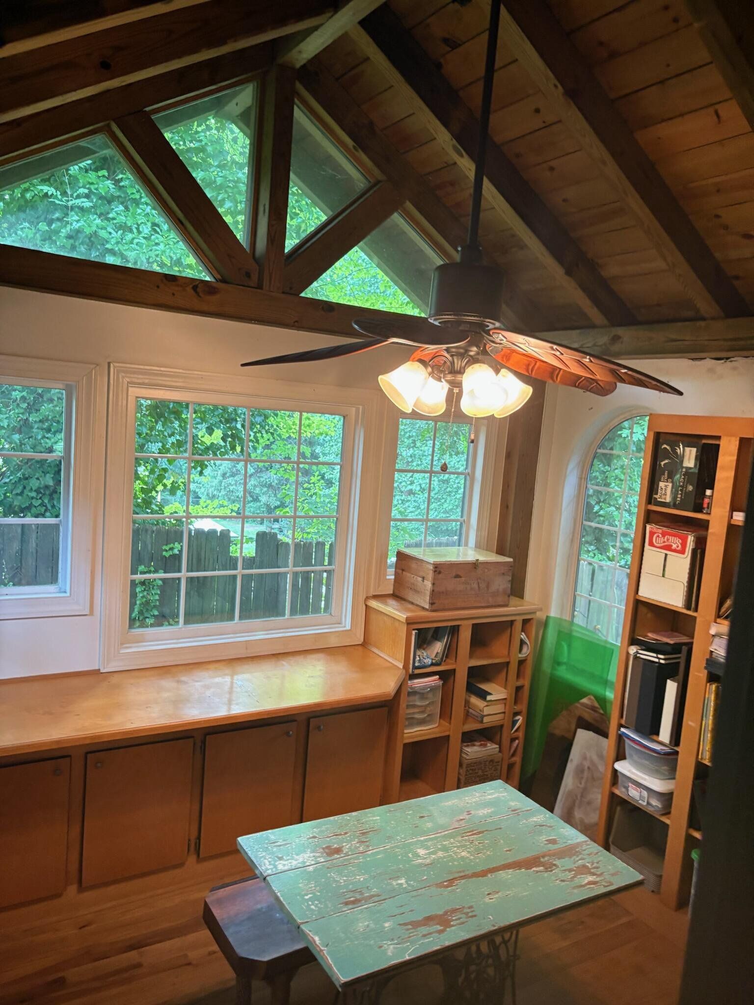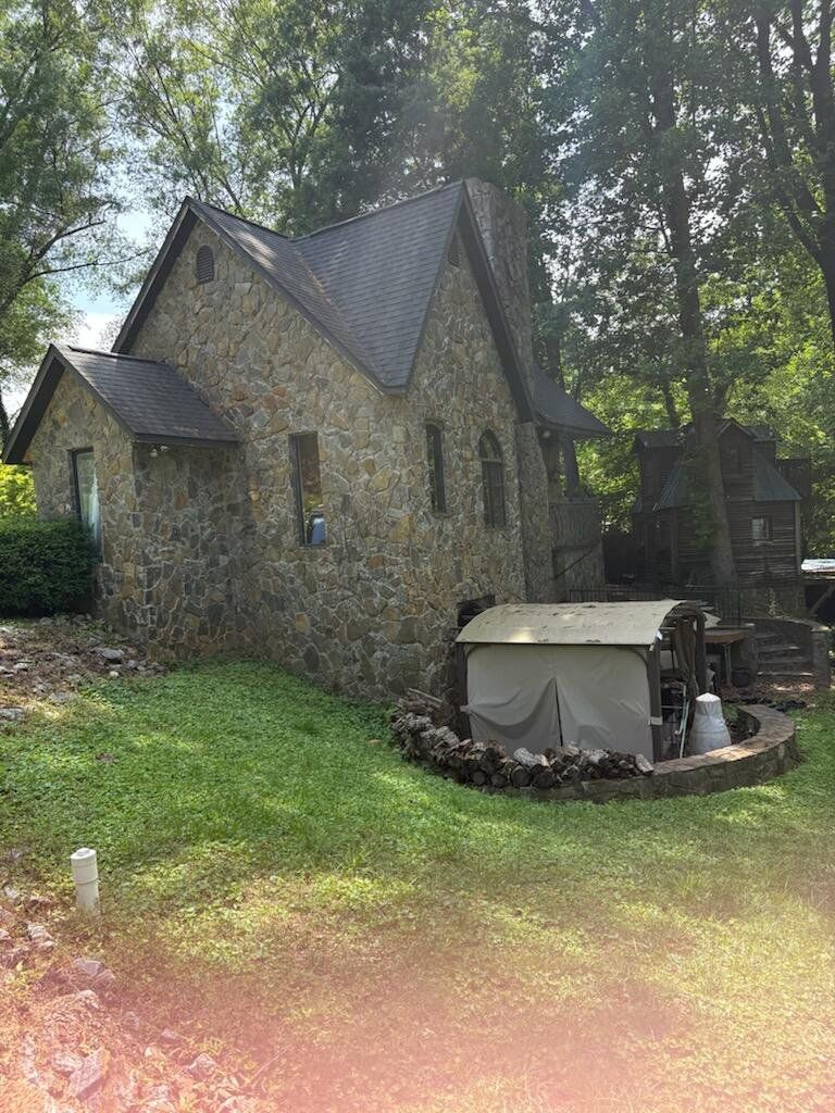 Original home built in 1951. Remodeled and entire exterior, including two story turret, rocked in 1994. Two car stone carport was built at this time as well. Owners have done improvements on castle such as two new HVACS, new hot water heater, sanding and finishing of several floors, new Luxury Vinyl Tile in the kitchen, some interior painting, outdoor hot tub renovated into a fish pond with castle fountain. Floors and ceiling in the shed have been replaced and turned into a two level cute She Shed, artist studio or workshop. Owners are using castle as two bedrooms but the two extra rooms could be converted into bedrooms. One of the extra rooms is so well lit that it would make a beautiful plant filled Florida room.