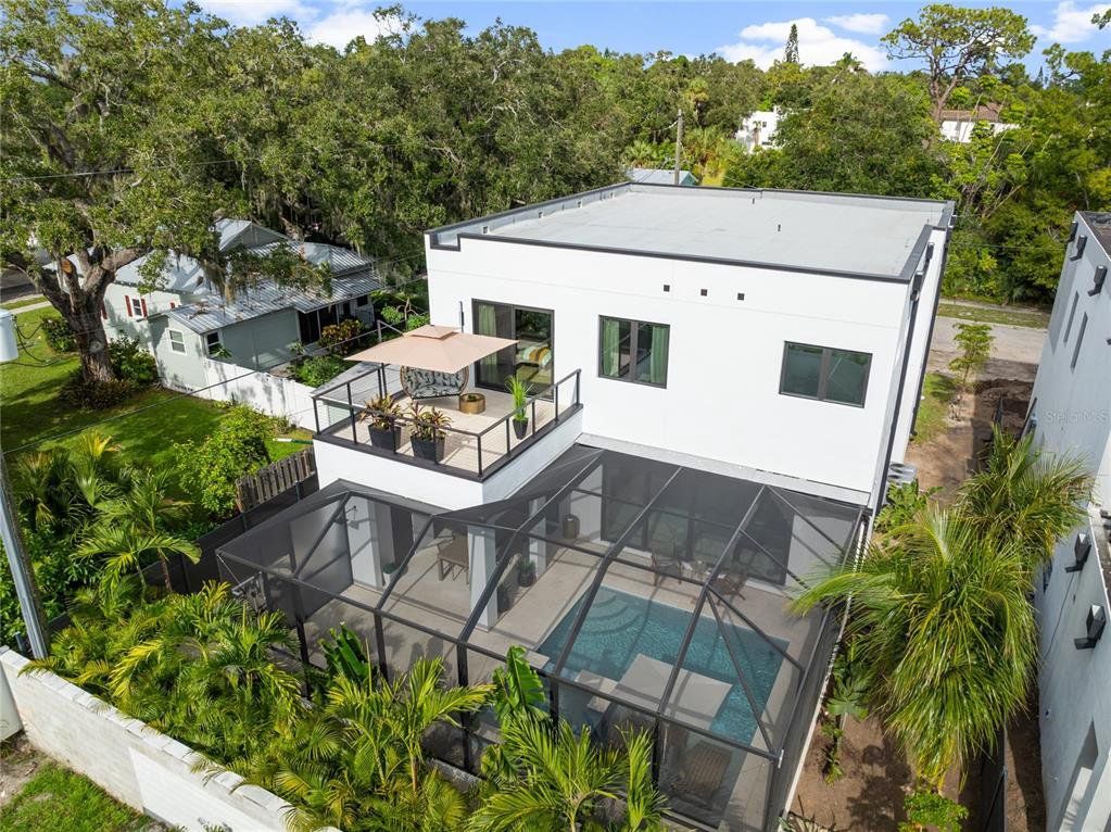 Absolutely stunning, newer lived in, new construction house in Southside school district and walking distance to Sarasota Memorial Hospital. Elevated 17 ft above sea level in X zone. Property features: 2 story masonry, solid building with elevator, 10 FT ceilings on both floors, all 4 bedrooms with own bathrooms and walk -in closets, office on main floor, gourmate kitchen with custom cabinetry, Bosch stainless steel appliances, ample of storage, walk in pantry. Laundry room with front load washer and dryer. Big format porcelain tiled floor, custom Tv build out/ accent foyer wall.Engineering hardwood floors, solid white oak staircase. Many oversized windows makes this house efficient with great East South West exposure, and sunset can be seen from balcony daily. Hurricane, heat and sound proof windows and doors including 16 ft patio door which brings outside in when opened. Salted, heated & cooled pool and jacuzzi, natural stone pavers, covered lenai, cage, outdoor kitchen including grill, hood and beverage center. Bathroom pool by the pool and outdoor shower. All with lush landscaping including different kinds of palms for the privacy. Minimal yard maintenance, irrigation system, LED lights, build in speakers, 2 A/C systems, balcony of primary bedroom, 2 car garage. Walk to SMH, Southside school, Publics , Village and local, great restaurants, short drive to Siesta Key Beach, vibrant downtown, Marina Jack, St. Armands, 20 min to SRQ airport. The craftsmanship and attention to detail is unmatchable to any properties in proximity. Do not loose the opportunity to call this house your home! Call for more details and make an appointment today!