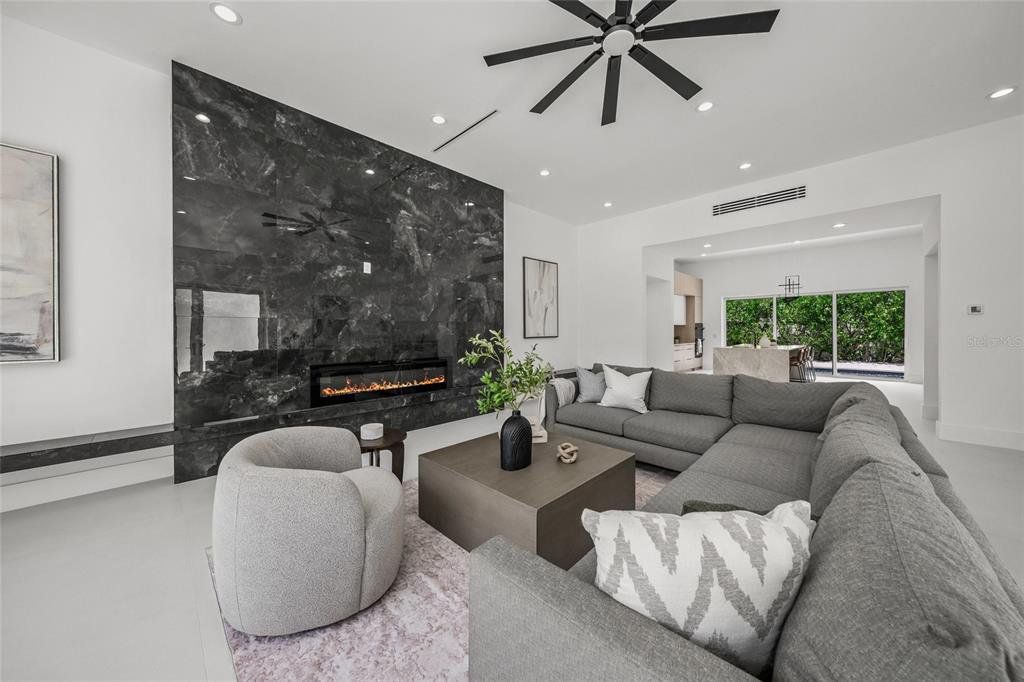 Experience Elevated Sarasota Living at 3500 Bay Shore Road This newly reimagined coastal contemporary residence embodies modern luxury and effortless sophistication. Completely redesigned and renovated in June 2025, this home feels brand-new from top to bottom. Every element was carefully curated for comfort, beauty, and functionality—offering the ideal balance between serene retreat and entertainer’s paradise. Step inside to discover a light-filled, open layout featuring soaring ceilings, expansive windows, and a striking 12-foot custom fireplace wall that creates an inviting focal point. The chef’s kitchen is a showpiece, boasting imported European white oak cabinetry, Taj Mahal quartzite countertops, and brand-new premium appliances—perfect for cooking or hosting with style. The primary suite serves as a private sanctuary with direct access to the pool terrace, custom closets, and a spa-inspired bathroom with designer finishes. Additional highlights include a central vacuum system, hurricane-impact windows, Tesla charging station, and an advanced Puronics reverse-osmosis water system delivering pristine alkaline drinking water throughout the home. Outdoors, enjoy a private oasis surrounded by lush tropical landscaping. The lap pool, cabana, and ample lounging space create the ultimate resort-style atmosphere for relaxing or entertaining. Perfectly situated minutes from downtown Sarasota, residents will love easy access to Lido Key and Siesta Key beaches, St. Armands Circle, fine dining, luxury shopping, and cultural landmarks like the Ringling Museum and Sarasota Opera House. Offered fully furnished, this exceptional home combines the best of modern design, location, and lifestyle—making it a rare opportunity to lease a piece of Sarasota’s finest coastal living.