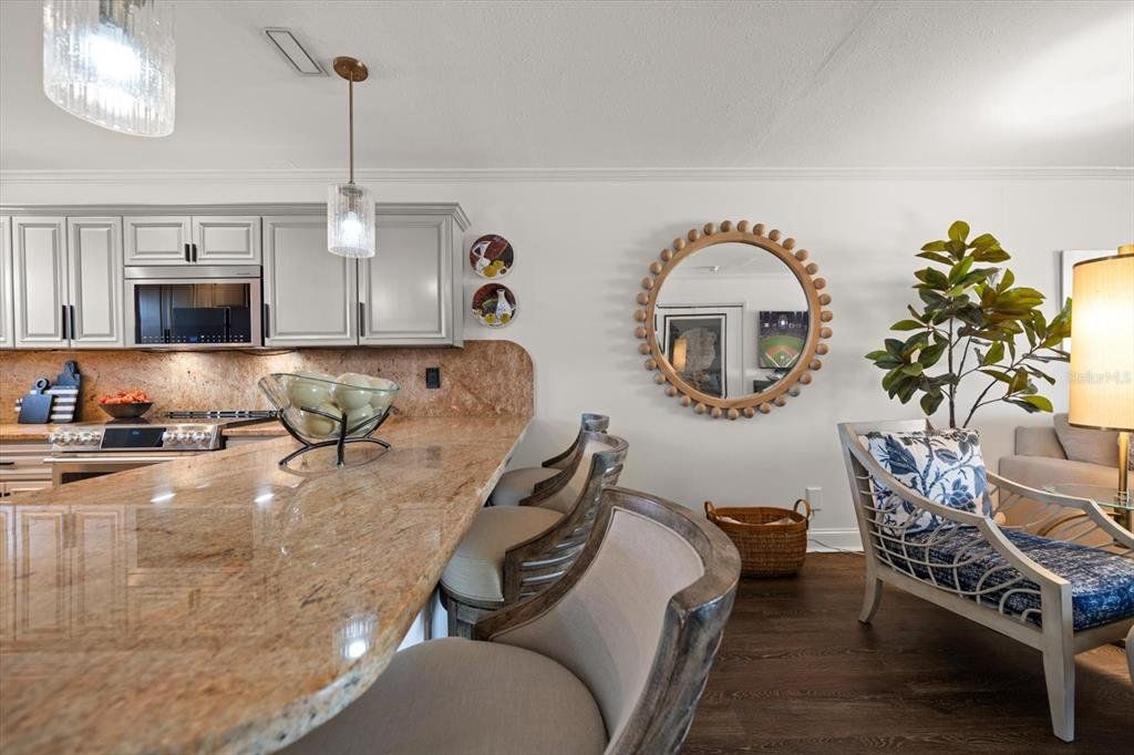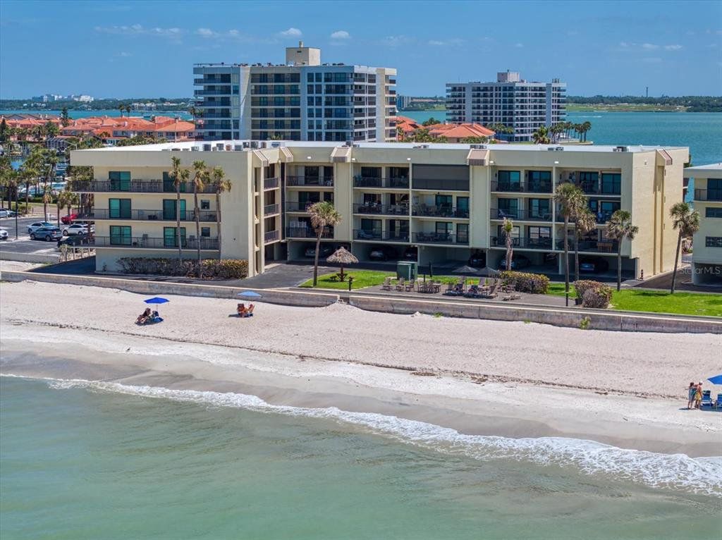 Indulge in the ultimate coastal lifestyle at this exquisitely updated residence, nestled directly on the sands of Belleair Beach—one of Tampa Bay’s most prestigious and peaceful enclaves. This rare opportunity offers effortless beachfront living, where sunrise over the Intracoastal and spectacular sunsets over the Gulf of Mexico become your daily ritual. From the moment you enter, unobstructed panoramic views of the Gulf take your breath away. Thoughtfully renovated with timeless sophistication, the gourmet kitchen showcases gleaming granite countertops, brand-new stainless steel appliances, a wine fridge, and a breakfast bar that flows seamlessly into the light-filled living space. Floor-to-ceiling sliders lead to an expansive balcony—the perfect vantage point to savor ocean breezes and the soothing sound of waves. The luxurious primary suite is a private oasis, featuring balcony access, a generous walk-in closet, and a spa-like ensuite complete with a double vanity and walk-in shower. A bright and airy second bedroom, along with a beautifully updated guest bath, ensures comfort for guests. Additional perks include under-building assigned parking and private storage, offering both convenience and peace of mind. Beyond the residence, the impeccably maintained community offers a shimmering beachfront pool and direct access to the soft, white sands of Belleair Beach—renowned for its tranquility and proximity to vibrant coastal destinations. Just minutes from the Belleair Causeway, Sand Key, boutique shopping, and award-winning dining, this is coastal living at its finest. Whether you’re seeking a serene beach escape or a sophisticated full-time residence, this is your chance to own a slice of paradise on Florida’s Gulf Coast.