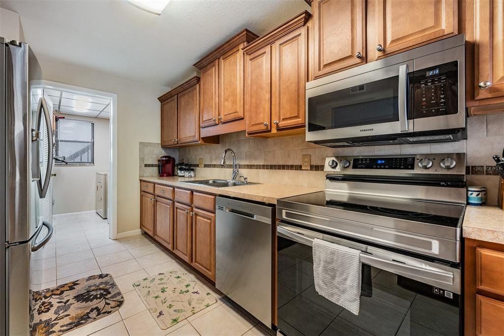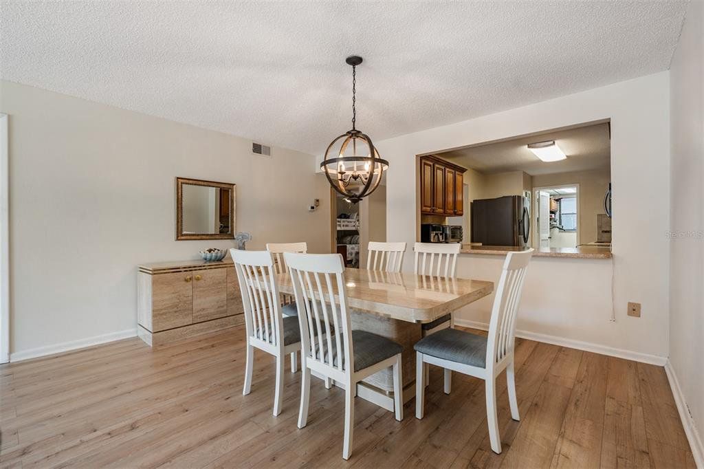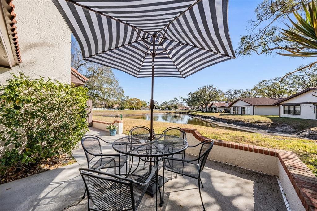 Motivated Seller! Don't miss this exceptional opportunity to own a highly sought-after GROUND FLOOR unit featuring breathtaking POND VIEWS in the desirable Tarpon Woods community. Optional to be sold fully Furnished! Beautifully updated and move-in ready, this meticulously maintained two-bedroom, two-bath residence combines modern luxury with serene waterfront living. Step inside to discover a light-filled, spacious floor plan showcasing premium updates throughout, including luxury waterproof wood-like flooring flowing seamlessly through the main living areas with elegant tile completing the sophisticated aesthetic. The kitchen features stainless steel appliances, modern cabinetry, and breakfast bar seating perfect for casual dining and entertaining, while the adjacent designated dining area accommodates guests with ease. The generous master suite serves as your private retreat, complete with an en-suite bath featuring a stylish step-in shower and walk-in closet. Your guests will appreciate the private second bedroom with ample walk-in closet space and adjacent updated bath with tub/shower combination and contemporary vanity. Convenient inside laundry with washer and dryer adds to the home's functionality. The oversized private patio extends across the entire rear of the unit, offering an expansive outdoor living space where you can relax and immerse yourself in peaceful pond views, watching the abundant wildlife and enjoying the tranquility of waterfront living from your ground floor vantage point—a rare find in this community. Tarpon Woods is a well-managed, maintenance-free community featuring a large pool, spa, and gazebo, with an HOA fee of $638/month providing exceptional value by covering building insurance, water, sewer, trash, basic cable, internet, reserve funds, exterior and grounds maintenance, and recreational facilities. Covered carport parking plus ample guest parking ensures convenience for you and your visitors. Ideally situated near John Chestnut Park with boat launch and Lake Tarpon access, the popular Pinellas Trail, and the YMCA, you'll enjoy proximity to top A-rated schools, award-winning golf courses, pristine beaches, outstanding restaurants, premier shopping, and cultural venues including the Ruth Eckerd Hall Performing Arts Center. Trendy downtown Dunedin and Safety Harbor are just minutes away, while Tampa International Airport is a convenient 20-minute drive. This property is NOT in a flood zone. Used seasonally and lovingly maintained, this home presents like new and is ready for immediate enjoyment. Whether you're seeking a year-round residence or the perfect seasonal retreat, this rare ground floor gem offers the ideal combination of luxury, location, and lifestyle.