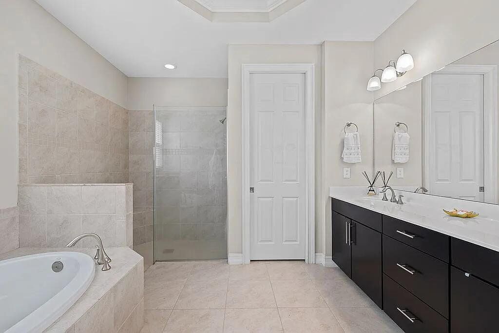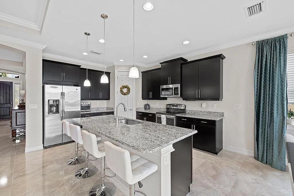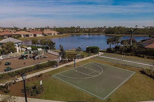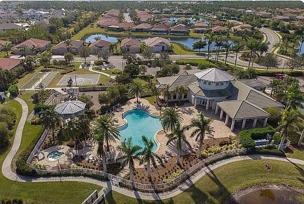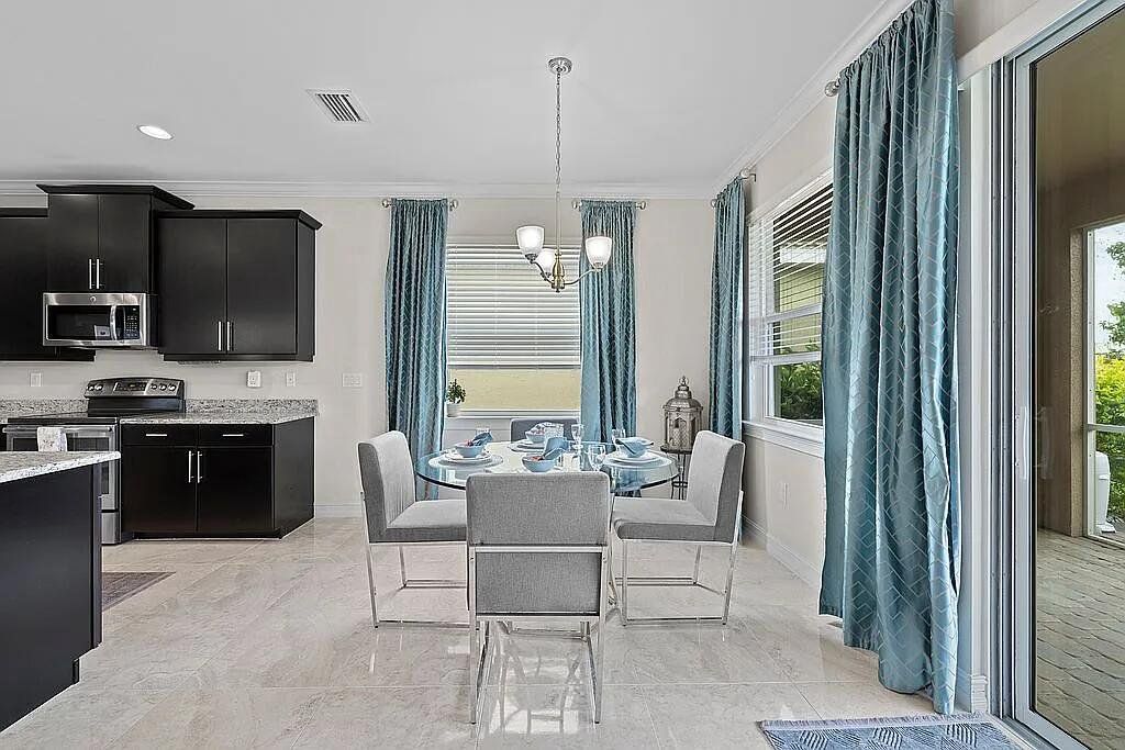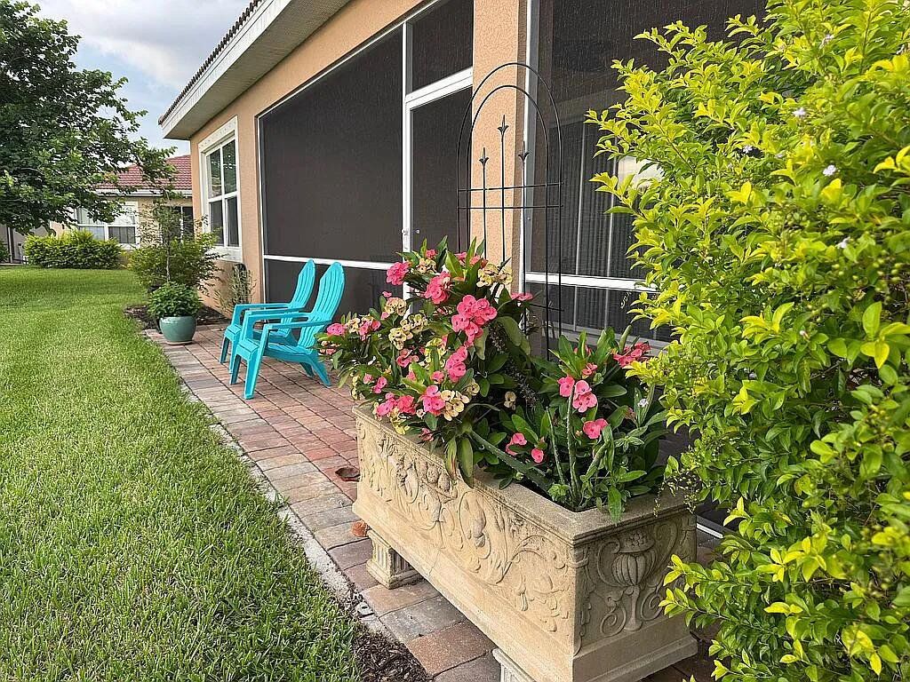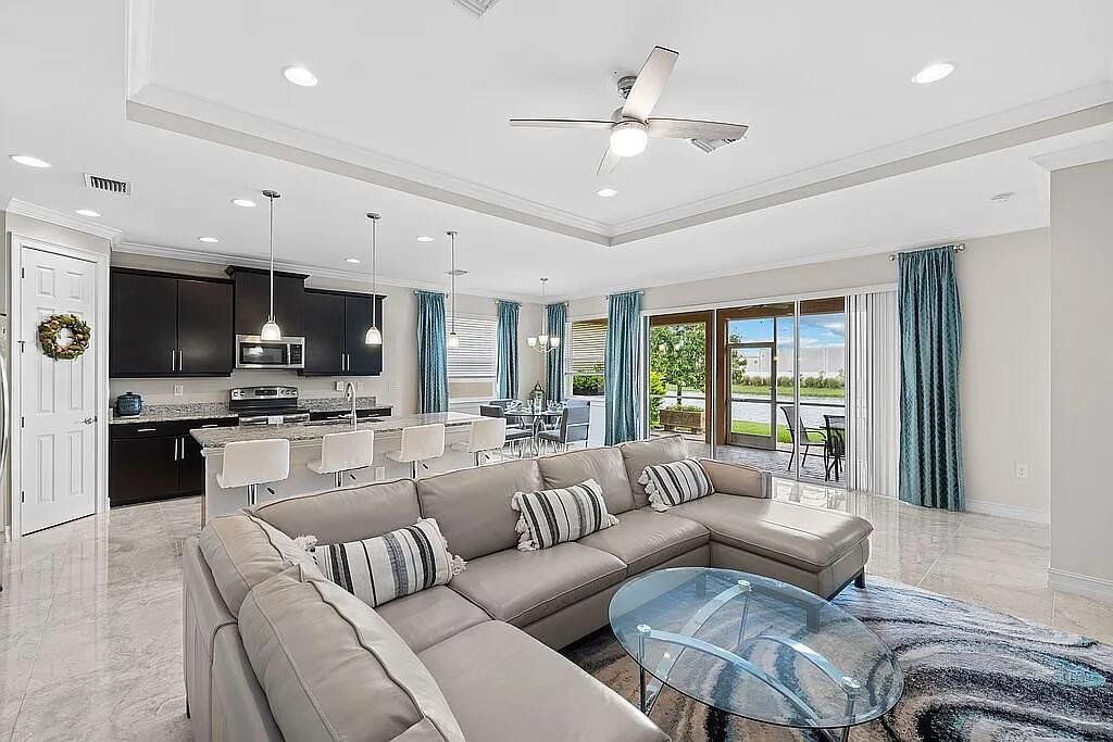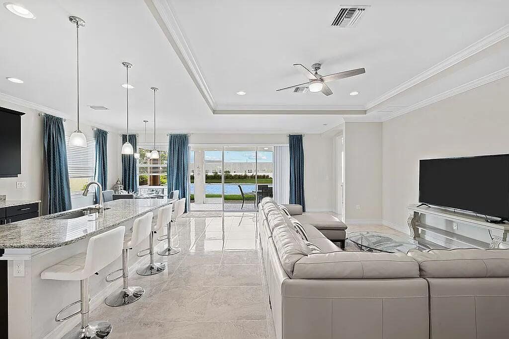 Welcome to a home that defines modern comfort and spacious living - Lindsford Gem – $100,000 in Builder/Owner Upgrades with Gorgeous Lake View. A stunning 3-bedroom plus den, this "Edison" model is sure to impress with designer touches & upgrades throughout. This residence seamlessly combines elegant design with practical functionality. Open, bright, & well-lit, under 2000 s/f of living space. Elegance Crema Porcelain Tile flows throughout the house. A large center island with granite countertops, a large walk-in pantry, and sleek-looking appliances make this the focal point of the home. High-volume ceilings, crown molding + designer interior doors create comfort & space. Outside, the screened lanai gives you great views of the lake. Concrete edging added to the front landsacpe. Also, there is ample room for a pool if desired! Plenty of extra storage in the extended garage + epoxy floor coating and built-in wood shelves. Wood shelves have been added to garage as well. Close to fine dining and shopping.