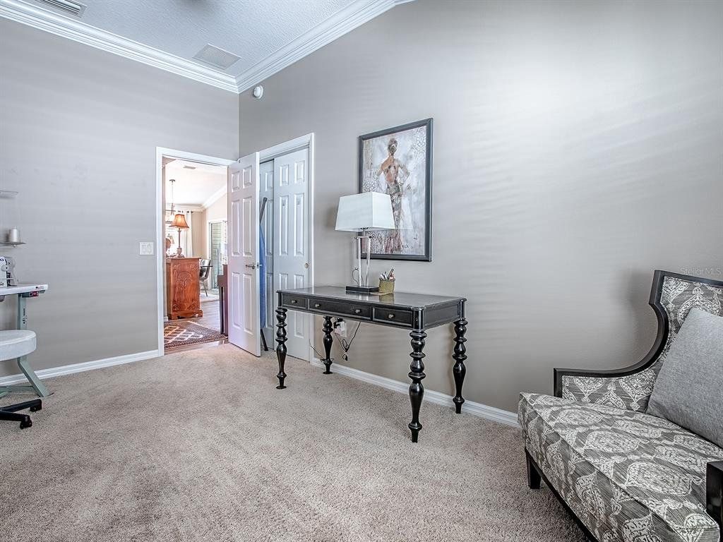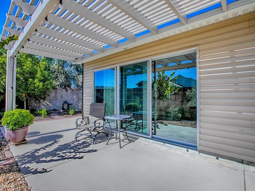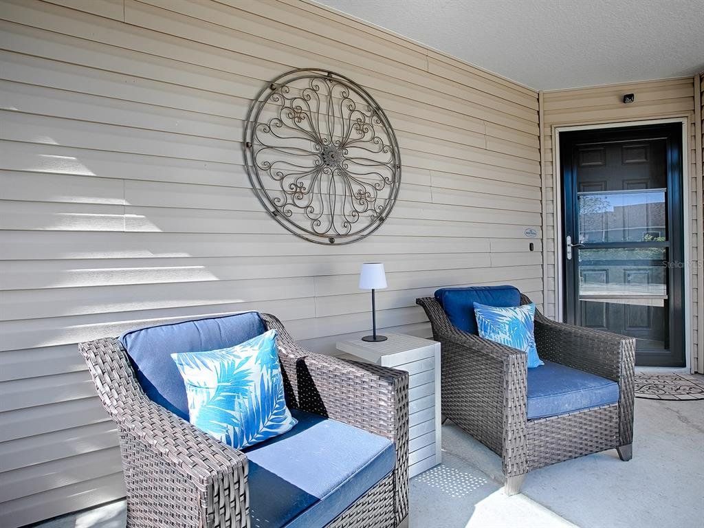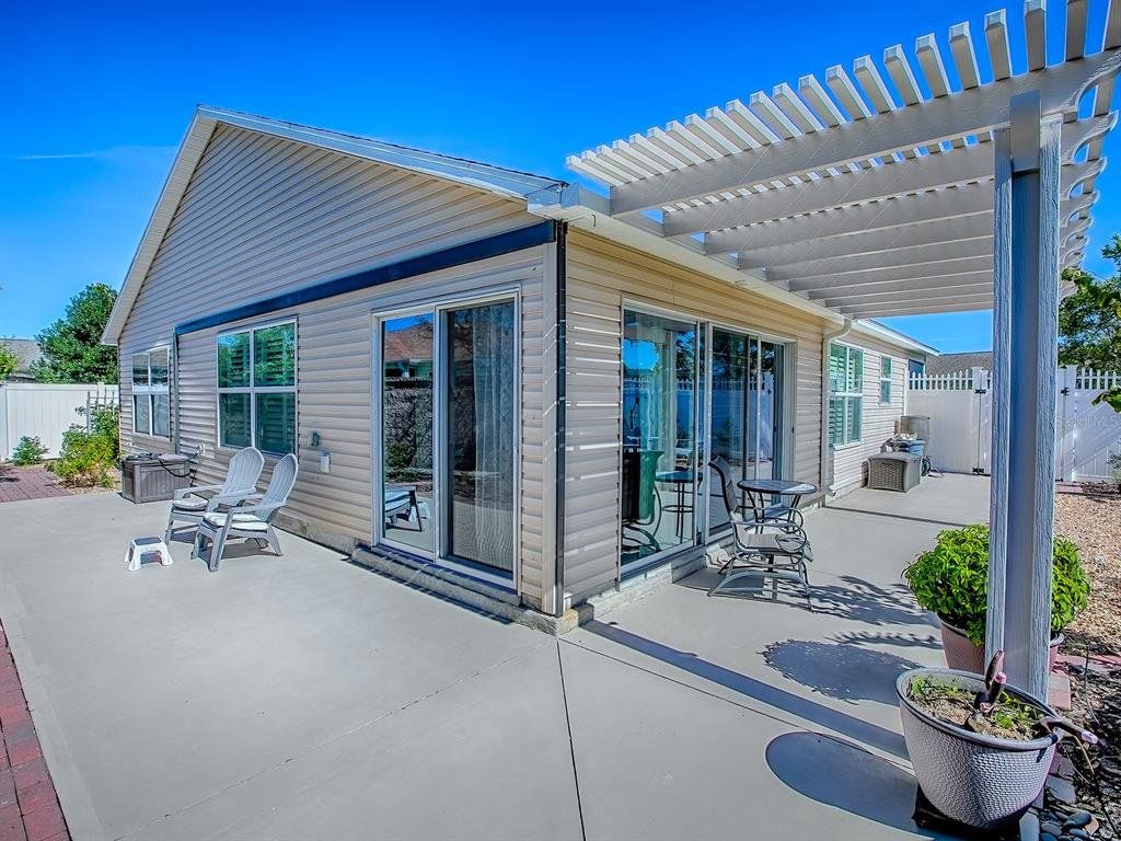 Beautifully Designed & Updated Anna Maria Courtyard Villa in the Village of Dunedin! From the moment you arrive, you will be impressed! Located on a Premium Corner Lot with Low Maintenance Floridian Landscaping, PRIVACY & Expansive Outdoor Space. There is room for a small pool OR Golf Cart Garage, if desired. This STUNNING 3-bedroom, 2-bathroom home offers approx. 1,600 square feet of beautifully designed living space, plus a GLASS ENCLOSED LANAI, perfect for entertaining or relaxing in privacy. The Main Living Area, Primary Bedroom, & Enclosed Lanai feature Wood-Look TILE Flooring. The Light & Bright OPEN CONCEPT FLOOR PLAN offers Volume Ceilings, Plantation Shutters & Crown Molding. The REMODELED KITCHEN is a Dream with Updated Soft-Close Cabinetry & Stylish Hardware, GRANITE Counters, Timeless Complementary Backsplash, Center Island and updated Stainless Steel Appliances! The Large Primary Ensuite accommodates your King-sized furniture, has Granite Counters and a Walk in Shower. The Secondary Bedrooms are located in the front of the home away from the Primary Suite, both have closets and cozy carpet. The Guest Bath has Granite topped Vanity and tub/shower combo. Additional highlights include: **NEW ROOF SCHEDULED** Brand New Washer/Dryer, Screened-in Oversized Front Porch, Powered Screen Garage Door, Pull Down Attic Ladder, a Termite Bond. HVAC 2014 with new capacitor, HWH 2020. Whether you're relaxing inside or enjoying the expansive outdoor area, this home offers the perfect setting for Florida living at its finest. The Village of Dunedin is nestled between Brownwood Paddock Square and Lake Sumter Landing. Whether it's golf, recreation, shopping or dining that you desire, it's all available! You'll enjoy quick access to either Buena Vista or Morse Boulevard too, for those days that your adventures take you beyond all the amenities you already enjoy!