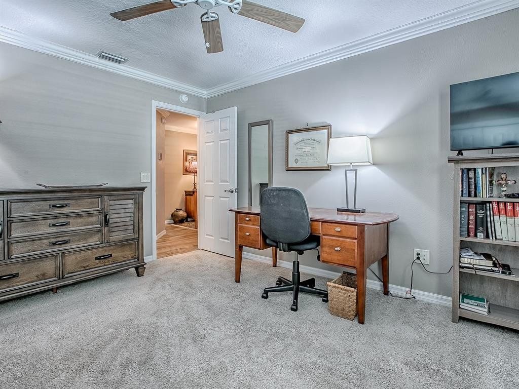 Interior Features: Ceiling Fan(S), Crown Molding, High Ceilings, Living Room/Dining Room Combo, Open Floorplan, Primary Bedroom Main Floor, Stone Counters, Walk-In Closet(S)