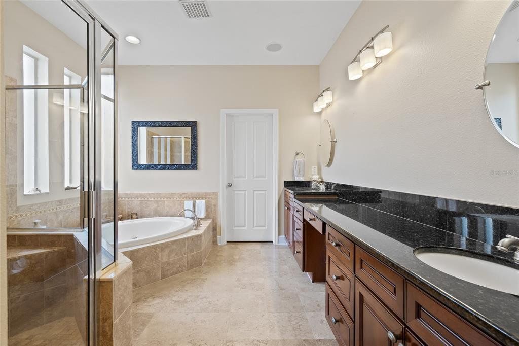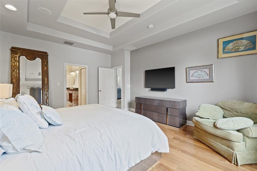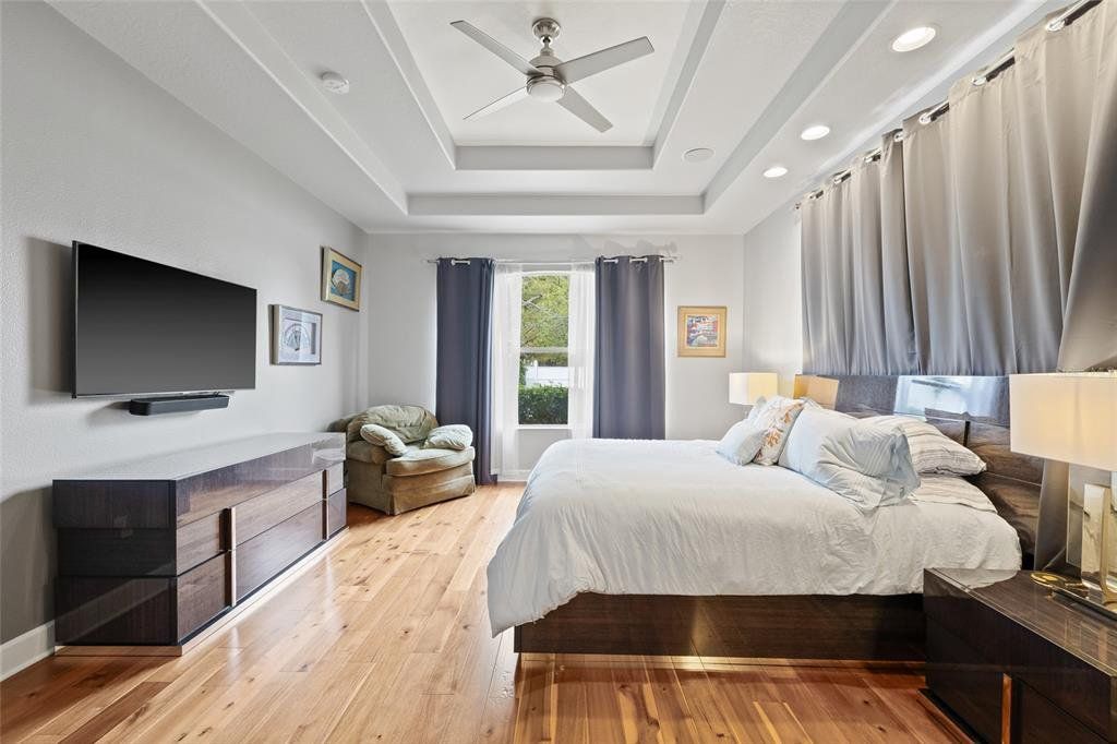 Now competitively priced to reflect current market conditions. An exceptional opportunity for buyers! Move in ready home with primary bedroom downstairs! This gorgeous South Tampa home in located in a prime location with rare downstairs primary bedroom! This stunning 3-bedroom, 2-bathroom home with a tandem 2-car garage sits on a spacious, fenced-in lot in one of South Tampa’s most desirable locations and zoned for Plant High School district. Step inside to soaring cathedral ceilings and an open-concept floor plan designed for effortless living. The chef’s kitchen features a gas stove, stainless steel appliances, granite countertops, and hardwood cabinetry. Gorgeous Brazilian hardwood and travertine flooring flow throughout the home, adding warmth and sophistication. The light-filled primary suite offers a spa-like ensuite bathroom with dual vanities, garden tub and a large glass-enclosed shower, and a generous walk-in closet outfitted with custom built-ins. There is a dedicated office, laundry room and upstairs bonus room/loft. Step out onto your covered lanai that overlooks lush, mature landscaping that is maintained by a sprinkler system. Additional highlights include an air purification system for enhanced indoor air quality, plantation shutters and a gas, tankless hot water heater. Located just minutes from Tampa International Airport, Amalie Arena, and Downtown, this home offers unparalleled convenience. Walk to nearby restaurants, shopping, and everything South Tampa has to offer!