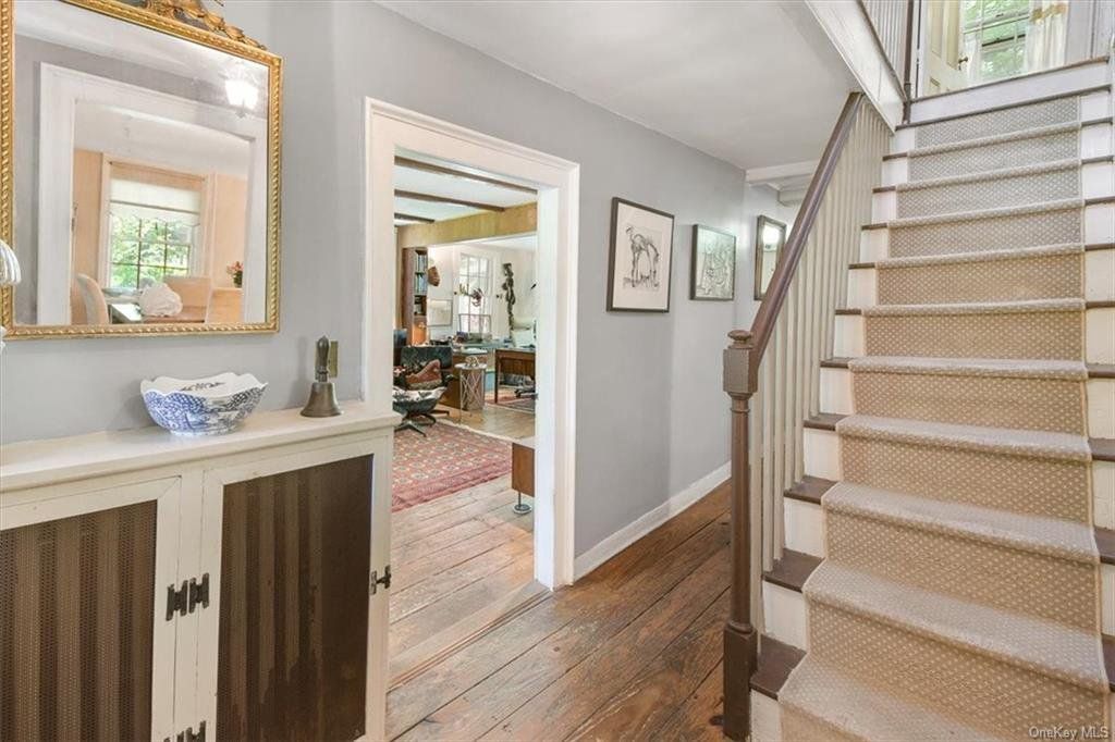 Price Reduced by Very Motivated Seller!! Perfect home for a buyer with an interest in a Historical home. Grand wrap-around porch is just one of the many special features of this Farmhouse Colonial set on 3.3 rolling acres with Irvington schools, 25 miles north of NYC. Nestled in a wooded mountainside, this 19th Century Colonial Farmhouse is surrounded by a landscape of sprawling grounds has 3 working fireplaces, 3 bedrooms, 2 full baths and a family room. Enter into the home to find stunning details including wood-burning fireplace & original wood floors in the LR, DR & galley kitchen. Head up to the second floor & notice the expansive primary bedroom w/multiple closets featuring an oversized sitting alcove w/another fireplace & lots of windows. Two additional BRs and a full hall BA. The large, fully finished walk out lower level has a wood-burning fireplace, full Bath and laundry room, lots of built-ins for storage, as well as access to another level patio, offering great space for a family room, office, workout area, etc. Original 7- & 10-inch-wide wood plank floors are a prized feature of this home. These magnificent floors are hand hewn pitch pine over wide board oak. They were harvested from old-growth trees whose tight, dense grain gave the wood a longevity that woods harvested today can't match. The interior is graced by stunning period detail, sconces, carved wood moldings, doors, and fireplaces. The most amazing views can be enjoyed from the living room, dining room and kitchen which are situated on the first floor. They feature lots of windows, a picturesque sliding door and connect to the social areas on the main level in a flexible and natural way. The seamless transition between the indoor living spaces and wraparound porch, two bluestone terraces make entertaining a dream! Oh yes...there is a golf putting green, bunny farm, outdoor fire grill on the property, presenting a unique opportunity to embrace an exclusive lifestyle unavailable anywhere else! Enjoy evenings entertaining on your expansive wrap around porch featuring a beautiful facade and lush landscaping. An oversized driveway with 4 parking spaces for all your guests. This home is in East Irvington, a neighborhood characterized & surrounded by many of the area's most valuable woodland preserves and parks. Within walking distance is the 200acre Taxter Ridge Park Preserve & nearby is the 400acre Irvington Woods, the 50acre East Irvington Nature Preserve & the Taxter Road Park - playground & athletic field. Moments to downtown Irvington's 5-star restaurants, The Old Croton Aqueduct Trail, The Irvington Boat and Beach Club, and the Irvington Metro (3 miles) with a scenic 39 minutes into GC. All this in the award-winning Irvington School District! Home was recently appraised at $1.4MM and is priced to sell. Great opportunity to restore a unique historic gem w/remarkable potential! This private Mountain Road oasis offers endless possibilities for today's modern homeowner. Owner/architect has plans included for expansion of current house a value of $20K.