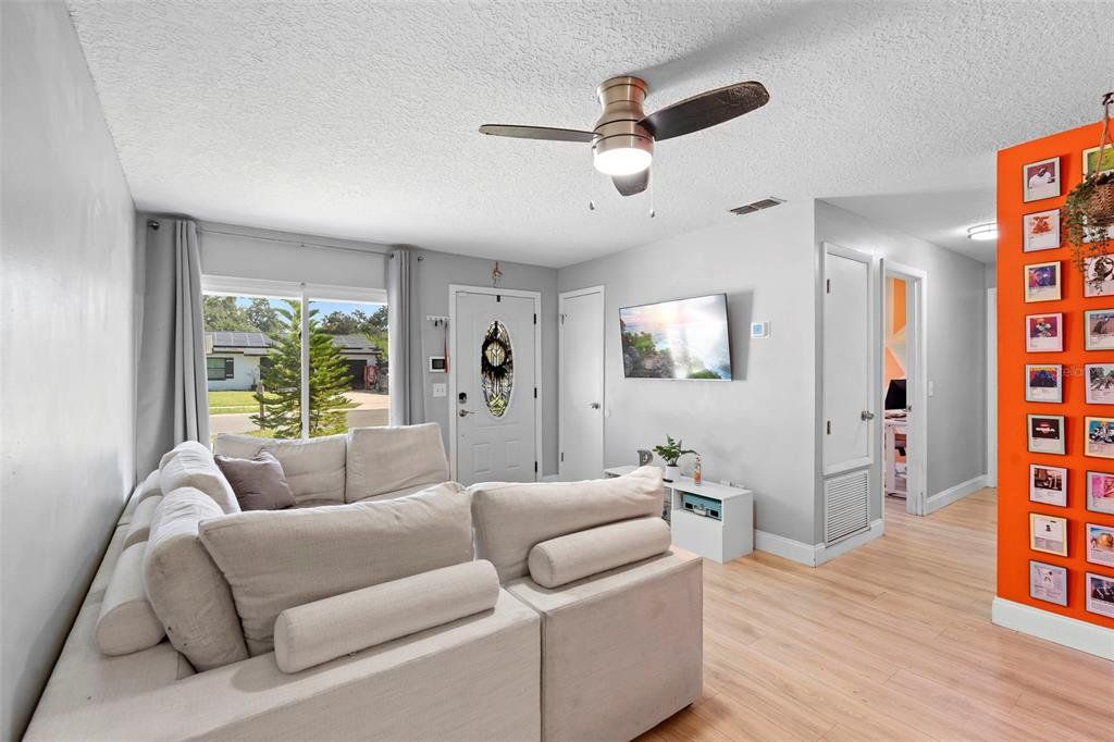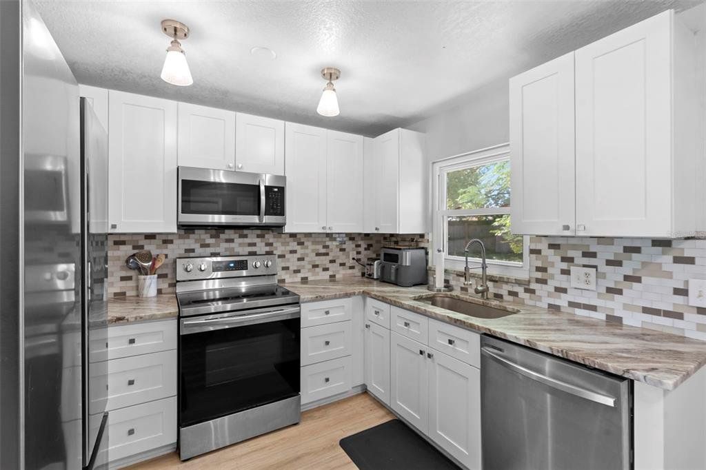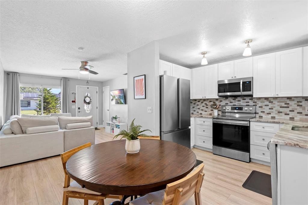 Step inside this beautifully updated, move-in ready home in the peaceful Citrus Cove community, where comfort, style, and convenience come together for easy living. The inviting beach-inspired waterproof laminate floors set the tone for a bright and modern interior you’ll love coming home to. The kitchen features elegant wood shaker cabinets with soft-close drawers, stunning granite countertops, tile backsplash, deep sink, and stainless steel appliances — all thoughtfully designed for both style and functionality. Ceiling fans throughout provide added comfort, while the bedrooms provide generous space, including a primary suite with a private half bath and natural light. Outside, enjoy a fenced yard, screened patio, and one-car garage with interior laundry. Updates include a newer roof, electrical panel, and water heater — giving you peace of mind for years to come. Tucked away in a quiet neighborhood yet minutes from shopping, dining, Genesis Sportsplex, I-4, and the 414, this home perfectly blends comfort, quality, and convenience. Schedule your showing today — homes like this don’t last long!