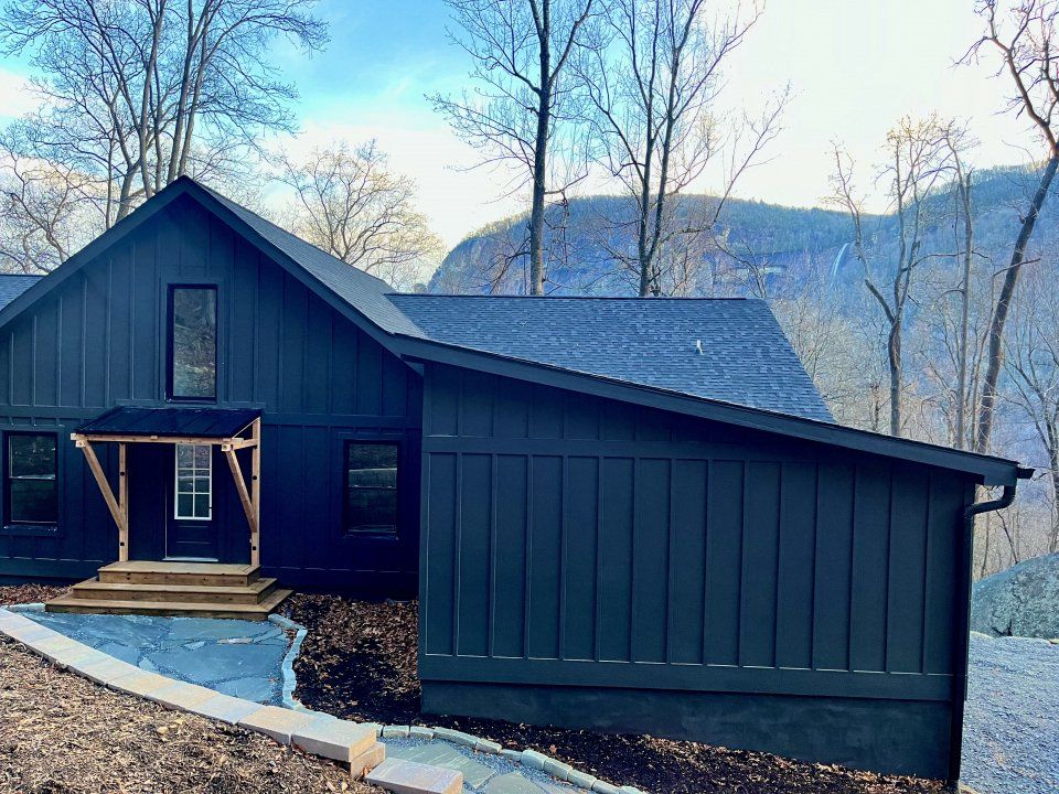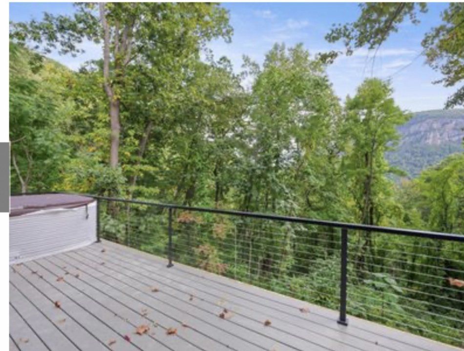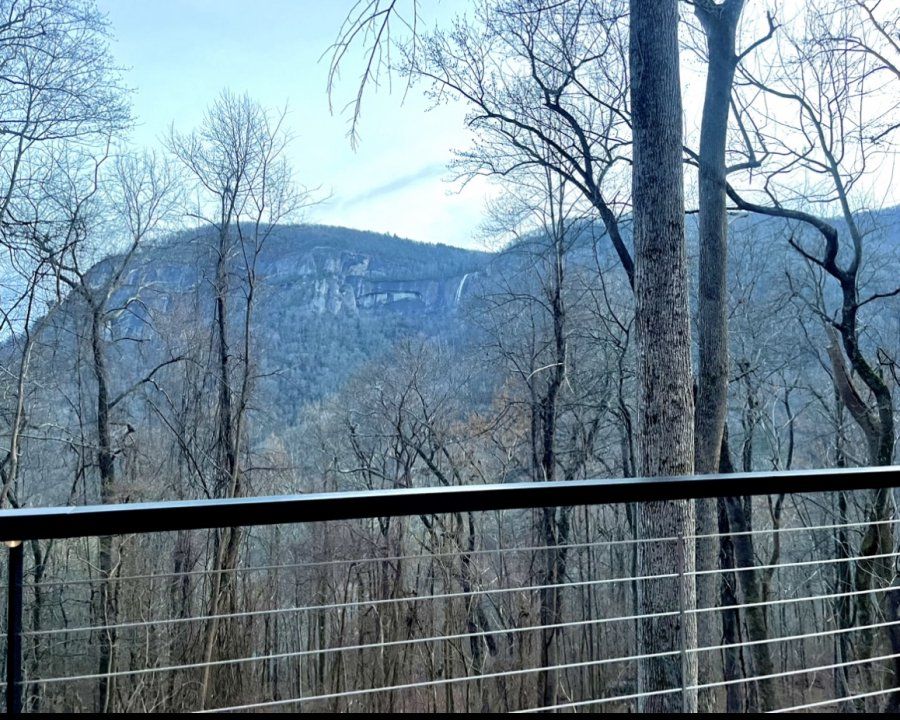 Stunning Brand new construction, modern farmhouse style ranch inside gorgeous Gated community of Cliffside at Hickory Nut sits on 2 acres. Stunning view of Chimney Rock Mountain and Hickory Nut Falls! 2700 ft.² 4 bedrooms, 3 baths, with Den and 2 car garage! Enormous Trex deck with French doors, leading out to gorgeous view, complete with hot tub! Vaulted ceilings throughout kitchen, family room and master! Beautiful fireplace with custom shelves and beams. Kitchen has giant 10 foot island w seating and wine bar area, custom cabinets, quartz countertops throughout! Master bedroom has en suite bath with walk in double headed shower and huge walk in closet! Super quiet /quaint community, only 26 lots, hike up your front yard directly into state park!