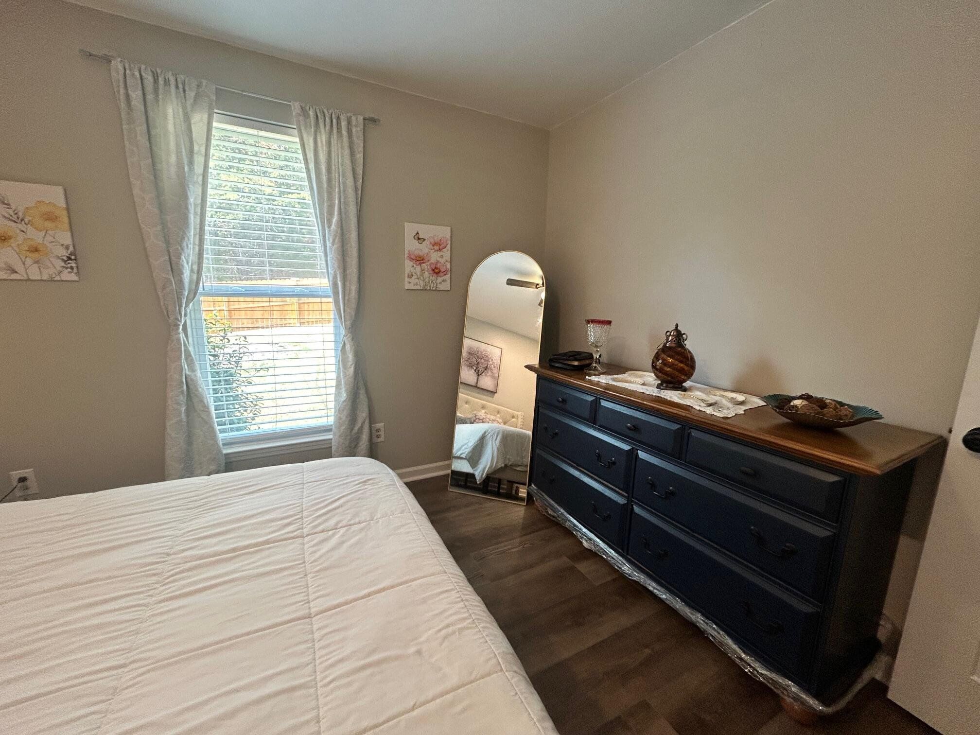 MOVE IN READY! 5 Minutes from Interstate on quiet street! Well maintained property with new architectural roof, gutters WITH gutter guards, new hot water heater, new updated garage - with app - open and close the garage from anywhere!. Freshly painted, updated maple cabinets - new QUARTZ counters with Delta faucets, stainless steel appliances, new vinyl flooring, updated shower, septic tank pumped, screened in covered back deck for additional entertaining, updated windows, and new landscaping including a CEDAR privacy fence!! Minutes from schools, Top Golf, Costco and more!