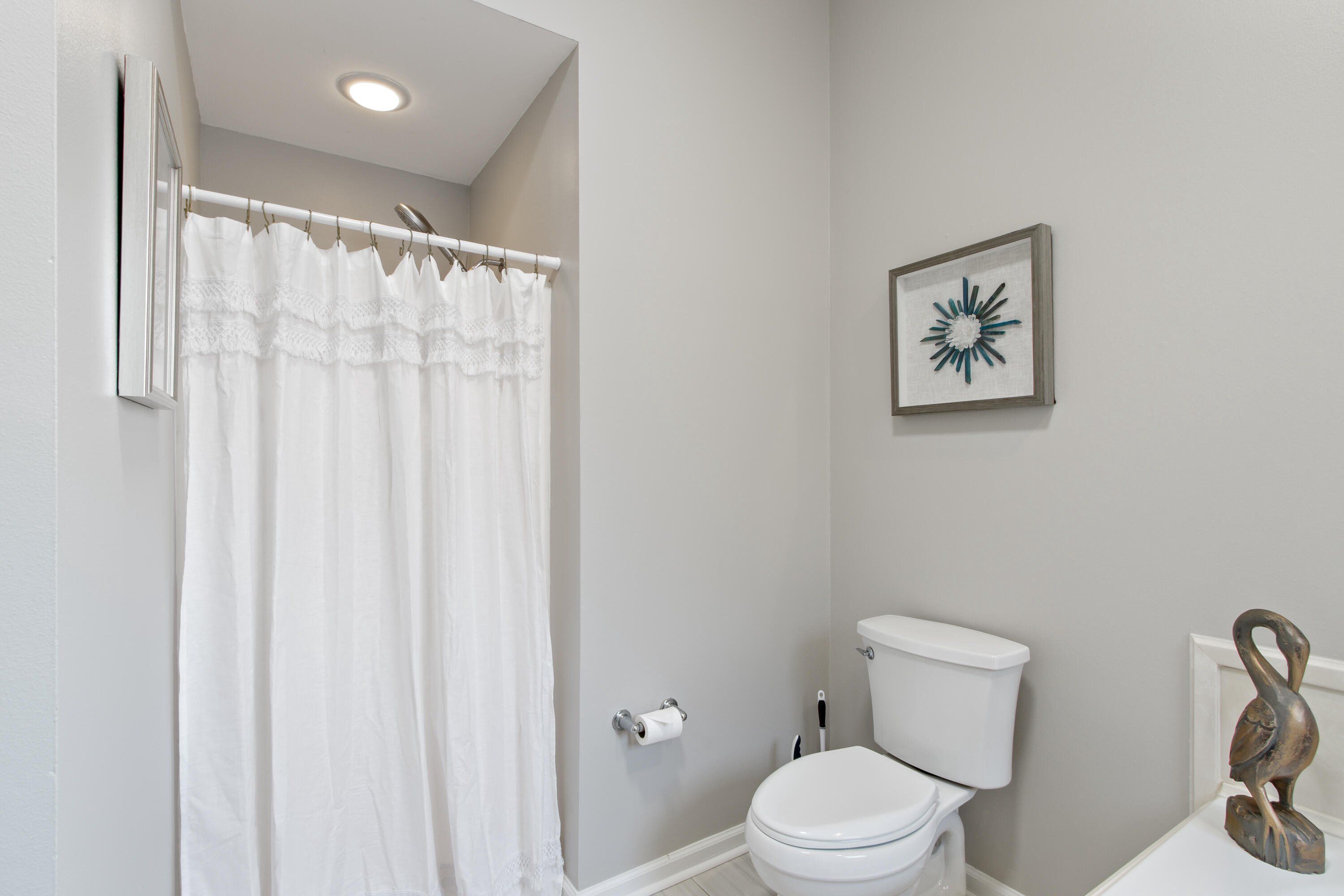 Newly renovated 3 bed 2 full bath condo w/gorgeous sunsets from the deeded pier on Mobile Bay. New HVAC, new fridge and range, new lights, fresh paint throughout, new carpet in the bedrooms, and more. This condo has an open floorplan, tile, high-end plantation shutters, 10 ft ceilings, oversized crown molding. The open kitchen has a stainless steel appliance package, soft close cabinet doors, and granite countertops. The large master suite has an upgraded jetted tub, walk in shower, and huge walk in closet as well as a balcony with nature views. Hurricane shutters provide extra protection. The oversized garage that could hold 3 vehicles with room for water toys, kayaks, bikes, and/or fishing gear. Minutes from I-10, and amenities include a pool/hot tub, BBQ Pavilion, stocked fishing pond, and private pier on Mobile Bay. D’Olive boat launch and boat storage are just outside the gate, as well as The Waterfront restaurant, which has dining and live music while overlooking the bay. Rental restrictions. Buyer/buyer's agent to verify all info.