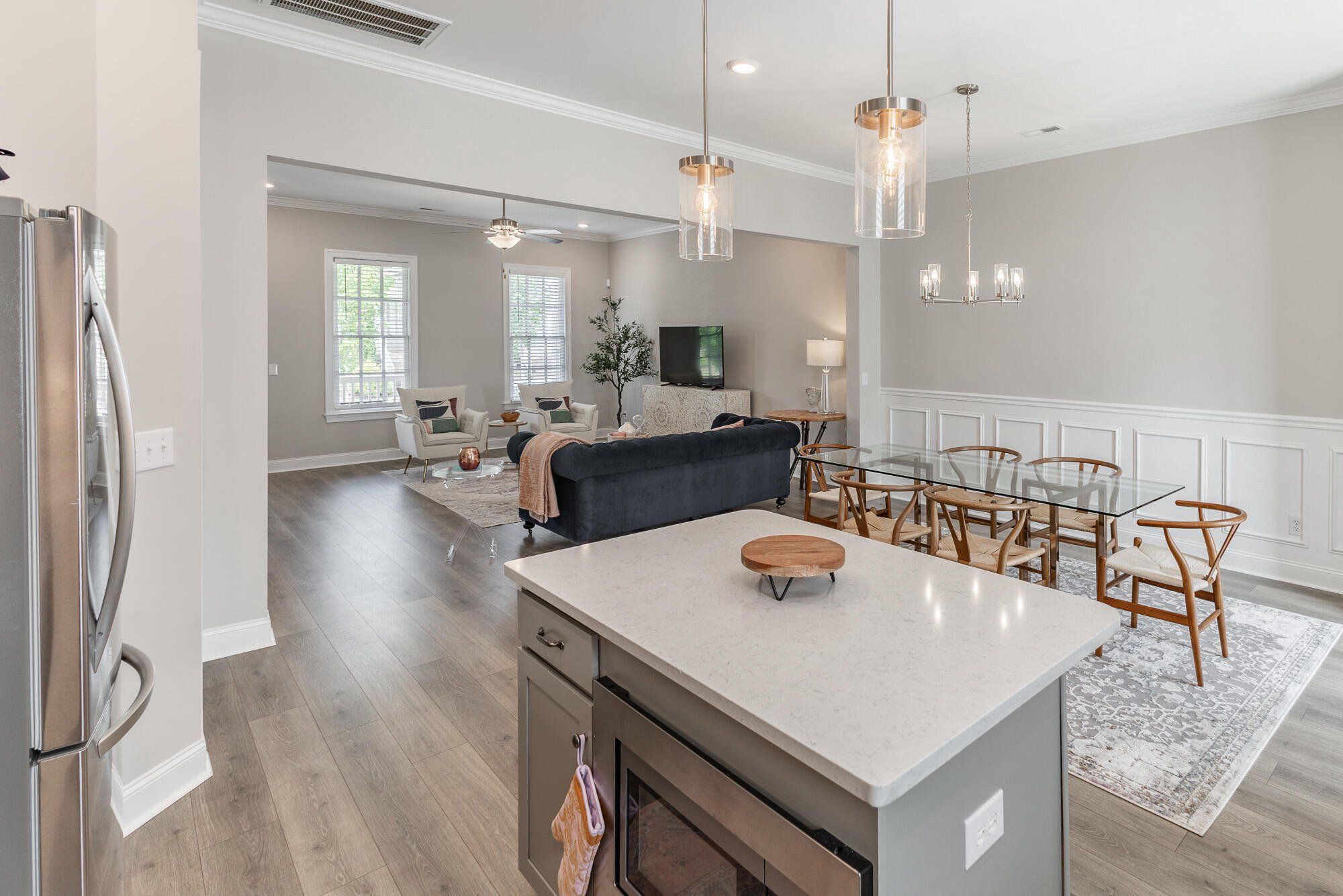 Built in 2021, this amazing townhome nestled in the beautiful Village of Providence features a spacious front porch, backyard space & 2 private carport spaces. This 2-bedroom open concept design is great for livability and entertaining. Amenities include traditional mill work, quartz counter tops throughout the spacious kitchen and all bathrooms, grand 10-foot ceilings, and more! Primary Suite is complete with large closet, tile shower, and additional bedroom with a walk-in closet and private bathroom with tub. Enjoy this perfect location on the Creekside of the Village, just a short walk to the heart of the Village of Providence's Town Center. Included in your tenancy are all the Village of Providence amenities with the brand-new Community Center equipped with large pool, fitness center, and cozy clubhouse just steps away from your front porch. Owner pays for HOA which includes access to all community facilities as well as landscaping services, internet, and cable TV. Should you have a pet, the owner must approve and the tenant must make a non-refundable pet deposit of $500. 6 mo, 12 mo, or 18 mo lease length available.