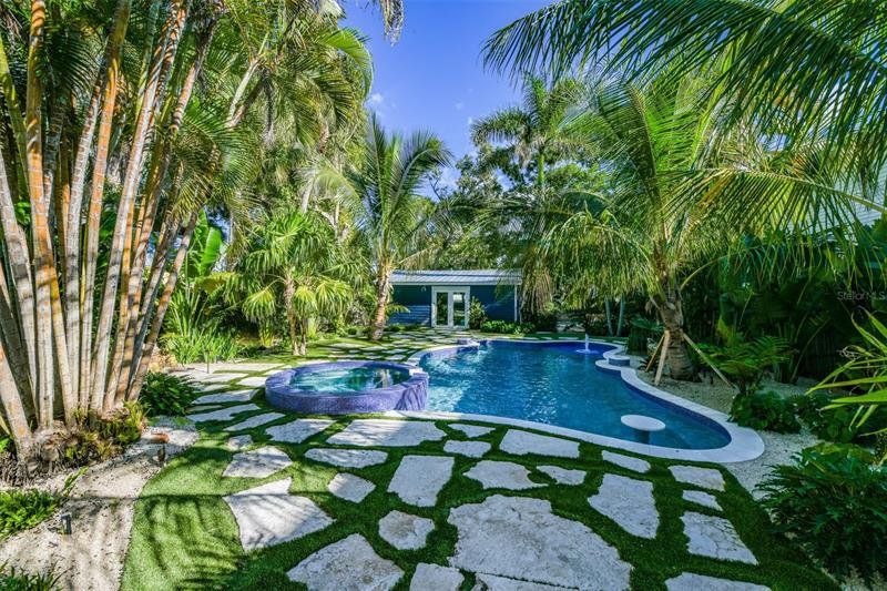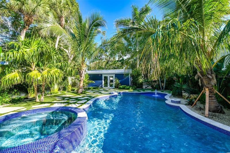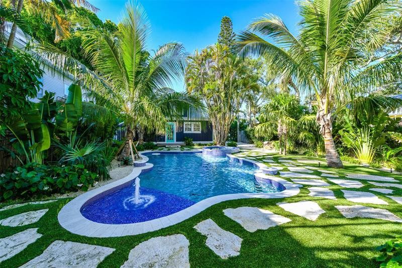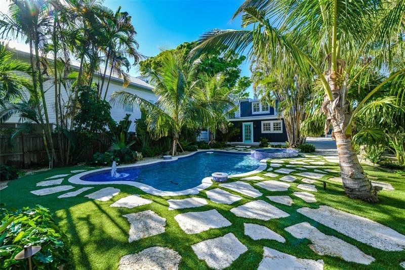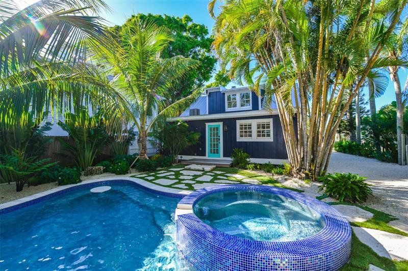 This beautifully renovated 4-bedroom, 3-bathroom cottage was built in 1935 but offers all the amenities of a newly built cottage. It boasts an incredible backyard oasis with a heated pool and spa plus a separate mother-in-law suite, with lots of historic charm and modern updates throughout. The Master Bedroom is located upstairs as a loft space with a beautiful new bathroom with claw foot tub. This home features 2 bedrooms off the main living space with a shared bathroom. Located by the pool is the mother-in-law suite and ensuite bathroom with a walk-in shower. The main Great room features a full kitchen, a spacious living room with plenty of seating. The brand-new kitchen has a gas stove and plenty of counter space for the most discerning chef. There is a private deck off both of the ground floor bedrooms, which is the perfect spot for coffee in the morning. The outdoor space is very private and one of the most beautiful back yards on the island. It features all-new landscaping, artificial grass with inlaid limestone steppingstones. The heated spa and pool are the perfect retreat for a little rest and relaxation. The location is just as great as the home. You are a 1-minute walk to Pine Avenue where you will find local boutiques for shopping, restaurants, ice cream shops and art galleries. Bayfront Park is also nearby. Anna Maria Island Beach is about a 6–7-minute walk from the home or a 2-minute bike ride.